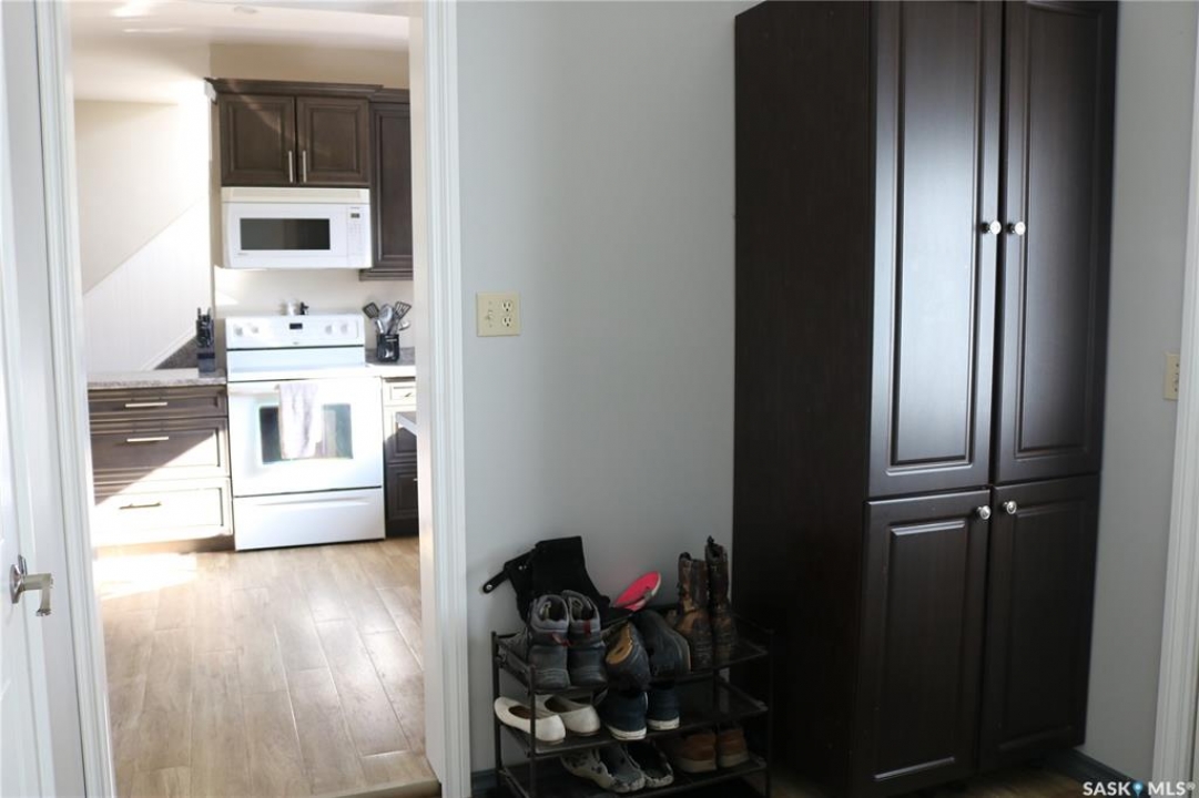 This acreage defines home sweet home! It's a quiet retreat where you can get away from it all, but still be just a couple minutes from everything you need. Located 1 mile north of Moosomin on the newly paved #8 highway and just a short drive down the lane. The 1923 home was relocated here in 1980 onto a new concrete foundation. Extensive renovations were done, including updated electrical. Then in 2017/2018 it was modernized to its current state. Windows, flooring, kitchen, bathrooms, furnace, water heater, central air, vinyl siding and metal shingles just to name a few. The home is incredibly bright with beautiful, big windows. Come in the back door to the large porch with a closet and handy 2 pc bath. Next is the kitchen with beautiful cabinetry and lots of counter space. The open concept feel flows into the dining room and living room. There is a great home office space with hardwood floor and access out the front door to a composite deck, offering the ultimate privacy to sit and enjoy your morning coffee. Up the stairs to three great sized bedrooms. The 4 piece bath is accessible from the hallway or directly from the primary bedroom. The large laundry room is so convenient on this floor. A cute nook is at the bottom of the stairs to the third floor, the finished attic. The attic is any teenager's dream, offering lots of space to hang out, and a 3 pc bath as well. The basement is partially finished with a huge family room, and another 2 pc bath. Outside, you'll love the private yard with your own forest of mature trees. Wildlife is often seen in the yard. A single detached garage with power and RV outlets is just west of the house. Your dream space just might be the 40 x 60 heated shop. Framed for an overhead door, but was used previously as a home business space. With its modern updates and amazing location, be sure to contact your agent to check it out!