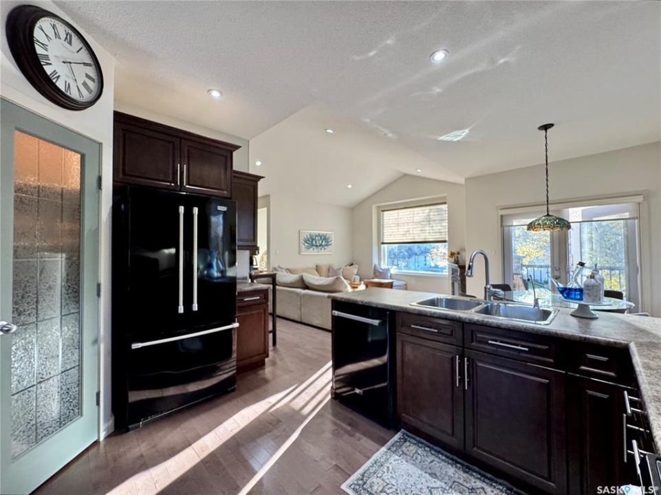 Built in 2013, this home stands as a testament to craftsmanship and vision. From the street, its presence has turned heads for years—not because it fits the expected mold, but because it surpasses it in all the right ways. Every choice in its construction was intentional, blending comfort, efficiency, and elegance into one seamless package. Step inside at grade level, greeted by the warmth of in-floor heating throughout the main floor—including the garage, porches, and bathrooms. Gone are the concerns of dark or damp basements; this slab-on-grade design offers a bright, open environment where every square foot feels usable and inviting. Spanning 2,155 sq ft, the home offers three bedrooms and three bathrooms, thoughtfully arranged to balance family life with opportunities for entertaining. The main living space is crowned by soaring vaulted ceilings and cascades of natural light through expansive windows. Hardwood floors add warmth as the kitchen, dining, and living areas flow together, making it easy to host everything from casual coffee to full family gatherings. Three decks extend your living space outdoors—two balconies capture both sunrises in the east and sunsets in the west. The primary suite is a retreat with a walk-in closet and five-piece ensuite featuring a jet tub, separate shower, and double sinks—designed with equal parts function and indulgence. The lower den offers a cozy spot for family movie nights, while the private backyard completes the experience. A maintenance-free PVC fence encloses a firepit area, storage sheds, and a double swing gate for camper or boat storage. This is a home not just built, but curated—every feature chosen with intention, every detail adding up to something greater than the sum of its parts. If you've been waiting for a property that blends luxury, practicality, and timeless design, 203 Fifth Avenue N delivers.