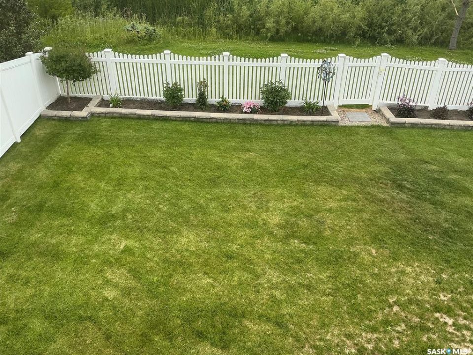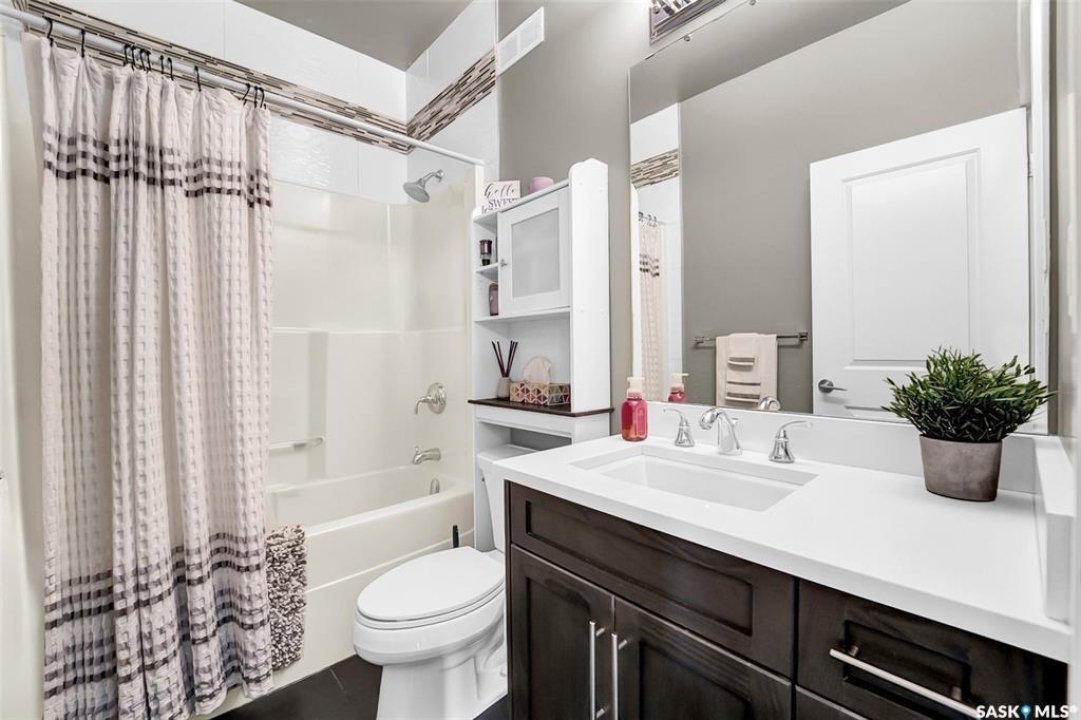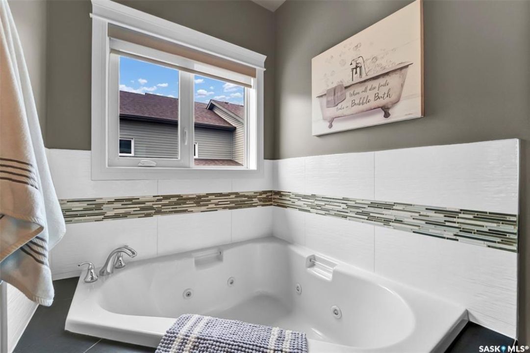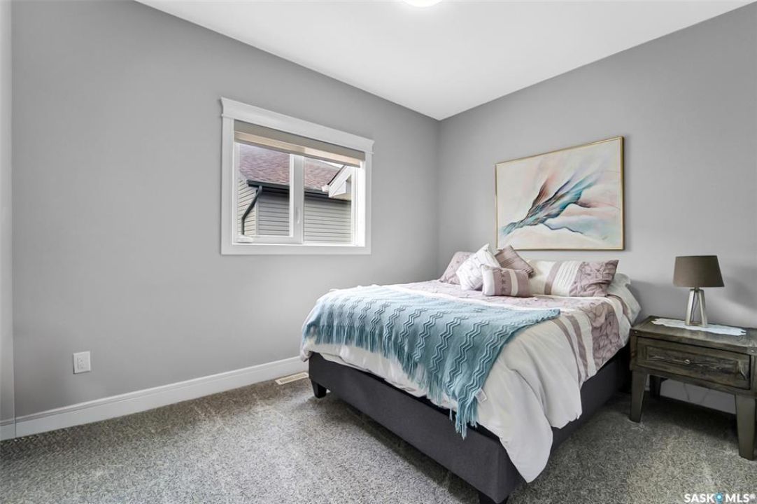 Welcome to this stunning walkout bungalow backing onto the park in Warman, where over $60,000 in recent upgrades have elevated this home into something truly special. From the moment you step inside, you'll be impressed by the spacious layout, elegant finishes, and natural light throughout. The main floor features a grand front entrance, a high-end kitchen with an oversized island, and a warm, inviting living room with a gas fireplace. The large primary bedroom includes a luxurious five-piece ensuite, while a second bedroom, dedicated office space, main floor laundry, and a breathtaking deck overlooking the park complete the level. The walkout basement offers a spacious family room, games area with a bar, two generous bedrooms, and a full bathroom. The beautifully landscaped backyard includes a lower patio, stonework, and two storage sheds. A heated double garage with 10-foot ceilings adds practicality to the home's charm. Upgrades include luxury vinyl plank flooring in the basement, new upgraded carpet on the main floor, solar-block tinted windows in the main floor living room,right side patio door as well as the basement family room right side, a custom front door, refreshed master bath with new taps and paint, front and lower decks, brick flowerbeds, and custom blinds in the basement. With its thoughtful design, serene park views, and turn-key updates, this home is the perfect blend of comfort and elegance ready for you to enjoy. This beautiful home is close to the schools, Warman community centre, and all other amenities.