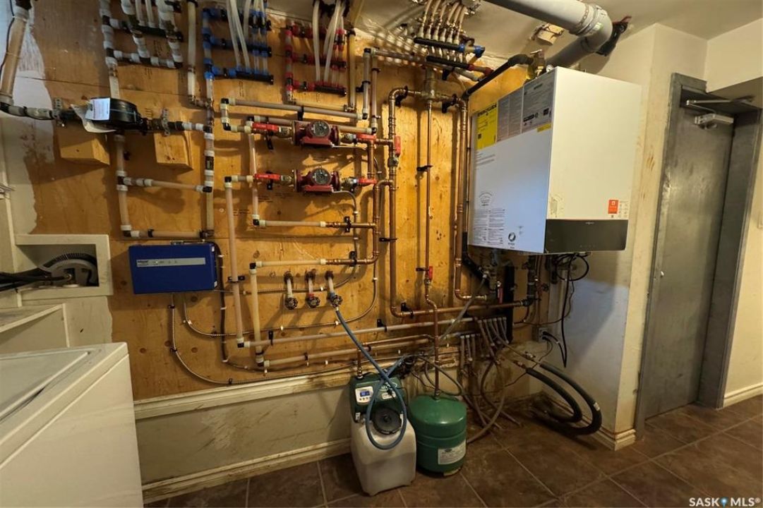 Step into fantastic investment opportunity in Regina's highly desirable Glencairn community with self contained regulation basement suite, in-floor heat in both units and solar panels to save on that electric bill. The well-appointed upper unit features an open concept living area with generous sized living room connected to the kitchen and dining area. Two good sized bedrooms, 1.5 bathrooms up and a spacious laundry/storage room complete the main floor. The self-contained basement suite boasts a separate entrance and large windows, featuring one bedroom with walk-in closet, one bathroom, laundry/mechanical room and a substantial open concept living space,. The back yard features a gazebo and two large electrified storage sheds. One of the standout features of this property is its low utility costs, attributed to the installed solar PV modules and a thoughtfully designed mechanical system. This not only enhances the appeal for potential tenants but also positions the property as a sustainable and economically attractive feature as a personal residence and/or rental property. Shingles updated in 2020 and new boiler system in 2022. Don't miss this rare opportunity to invest in a property that combines modern amenities with energy efficiency in a sought-after neighborhood.