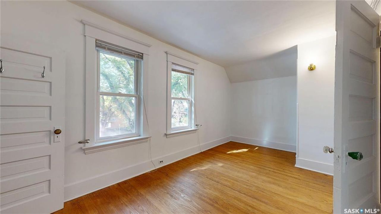 Location, Location, Location! Welcome to this charming character home in Regina's highly desirable Cathedral neighborhood. Known for its vibrant community and incredible walkability, this area boasts one of the best walk scores in the city. Enjoy tree-lined strolls to nearby coffee shops, restaurants, grocery stores, schools, and entertainment. Both Downtown Regina and Wascana Park are just a short walk away. Built to last, this home retains its original charm while showcasing thoughtful updates that enhance its timeless appeal. Beautiful hardwood flooring runs throughout, accented by freshly refinished doors and window frames. The spacious kitchen features a gas range, built-in dishwasher, and plenty of storage — ideal for both everyday cooking and entertaining. Vaulted ceilings in the main living spaces create an airy, open feel. Recent updates include fresh paint throughout, new faucets and lighting fixtures, and shingles replaced within the last 6 years. Upstairs you'll find three generous bedrooms, including a primary suite with a walk-in closet. Another large bedroom offers the opportunity to add a door leading to a potential balcony overlooking the tree-lined street. Step outside to your private backyard oasis, perfect for entertaining or relaxing. A large deck overlooks the lawn, outdoor fireplace, raised garden beds, and mature cherry and apple trees alongside blooming yellow roses. This rare Cathedral gem blends historic character with modern updates — all in a location that's second to none. Don't miss your chance to make it yours!