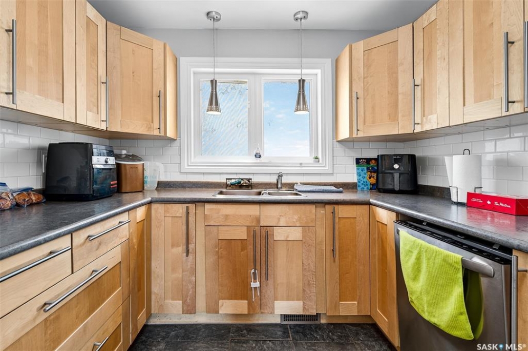Excellent revenue property ready for you to add to your portfolio! This 2 suited property has been well maintained and updated and features over 1000 sq ft, an attached oversized single garage, on a large corner lot. Each suite has its own laundry and separate entrance, but this home could easily be used as a single family home if desired. Enter in the main floor and find a beautiful, large living room with hardwood floors, and large windows throughout, letting in lots of natural light. You have a designated dining area, and a beautifully updated kitchen with tons of storage, subway-tile backsplash, hood fan, and plenty of counterspace. Down the hall you will find 3 good-sized bedrooms, an updated 4-pc bathroom, and laundry. In the lower suite, you have a spacious family room and large bedroom. You also have a separate kitchen/dining area, another updated 4-pc bathroom, and updated laundry room! This property hosts 2 large side yards, with one side featuring an attached deck off the main floor suite. There is a large garage with a single door, but a second door could be added to make it a double. The furnace and AC were both replaced in 2024! This property has so much to offer! Book your showing today!