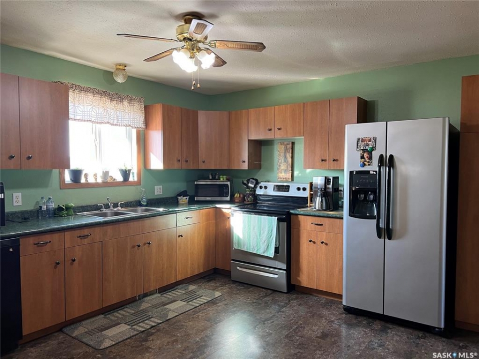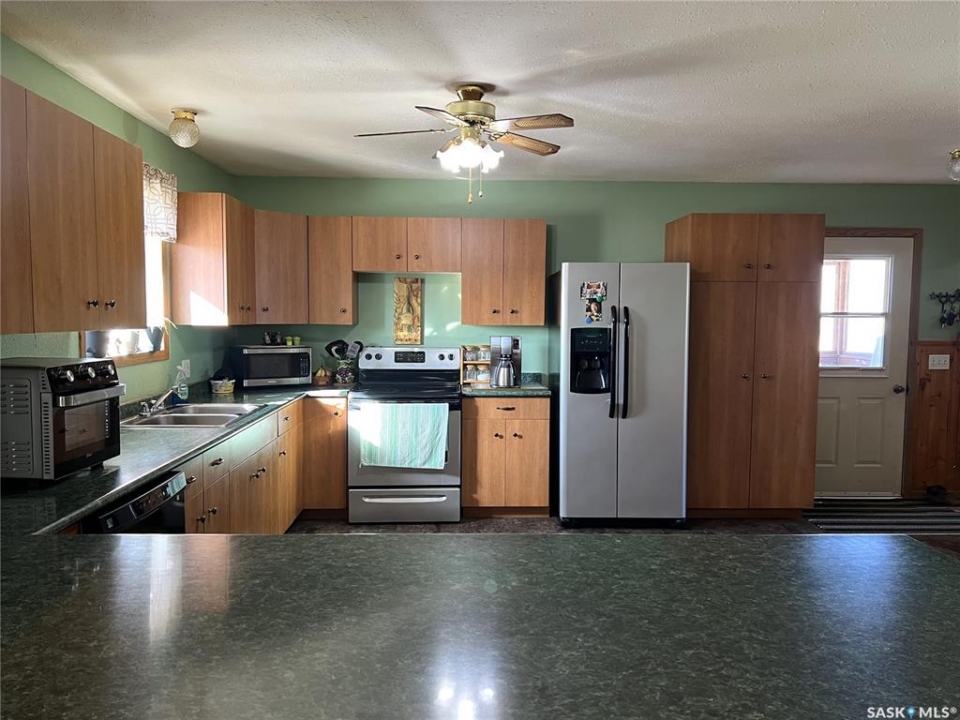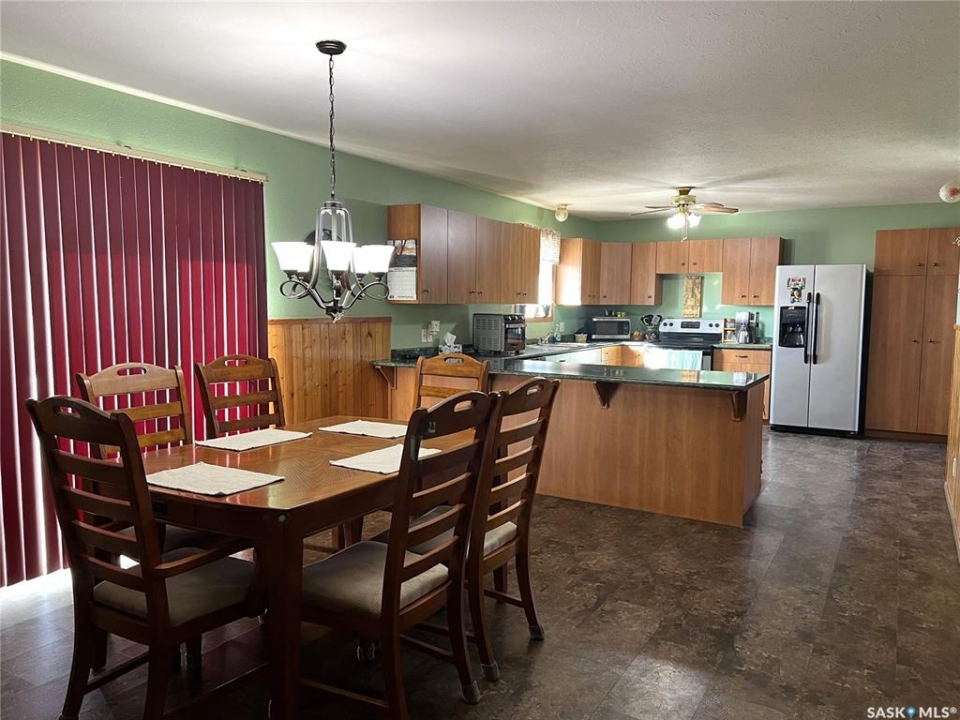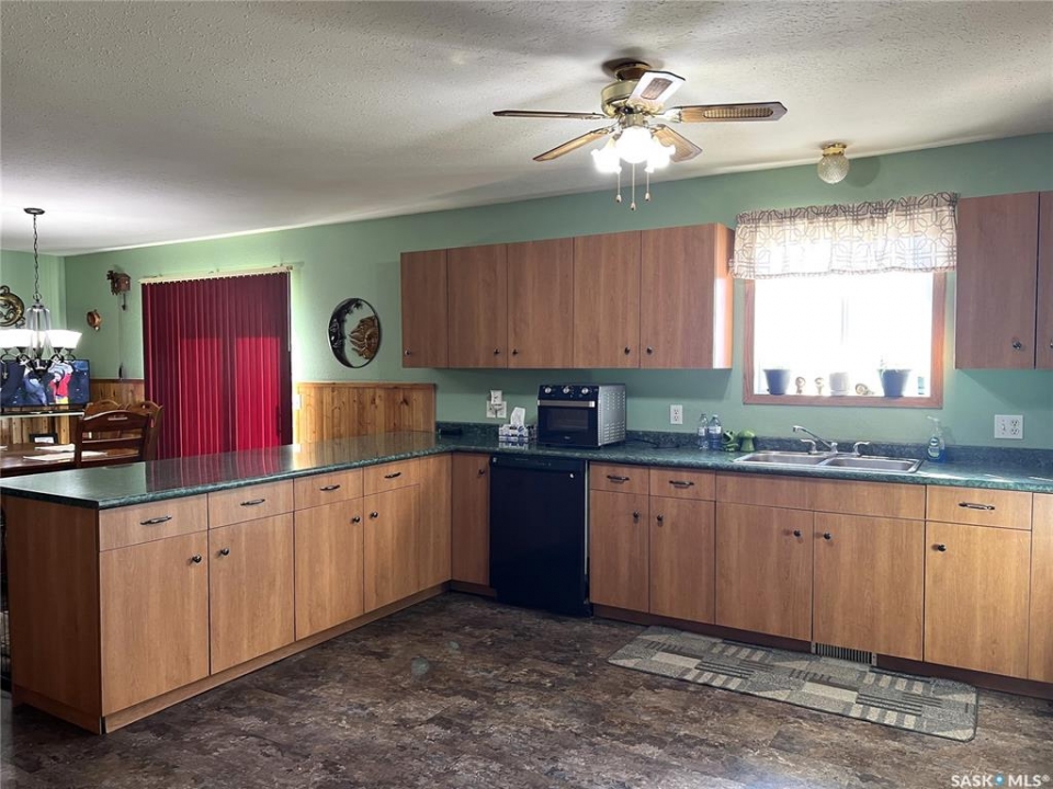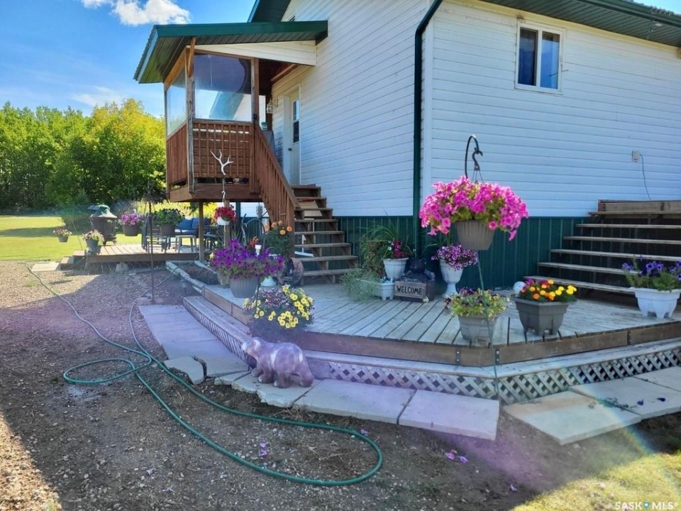 This 2006 bungalow is 2,220 sq ft with a 30'x50' shop on 10 acres in the RM of Loon Lake and would make an excellent family home. Main level features large kitchen with lots of counter space, dining area with access to a west facing deck, living room, primary bedroom with 4pc ensuite, 2nd bedroom, 2pc bathroom/laundry, mudroom plus a one bedroom fully self-contained nanny suite on main level. Suite has its own laundry and south facing covered deck. The basement hosts a large family room, 2 more bedrooms, 4pc bathroom, utility room, cold storage room, large storage room and another small storage room. You also have access to the back yard from the basement. New propane furnace in 2015 and basement has hot water infloor heat. New water treatment system in 2021, pressure tank and septic tank pump 2022. Metal walled/roofed shop built in 2008 has 16' walls set on concrete foundation, two sliding doors, 220 volt plug, loft/storage area and air compressor. Yard is beautifully landscaped with lots of shrubs, fruit trees, garden area and 2 sheds. Located 9km West of Makwa.