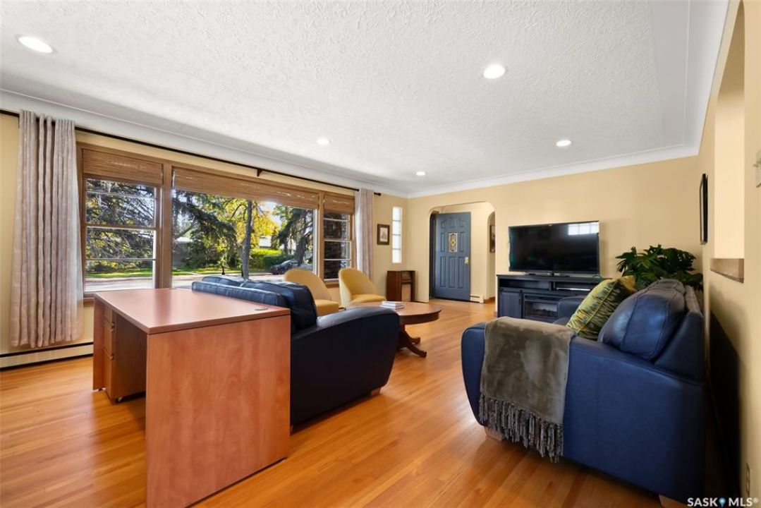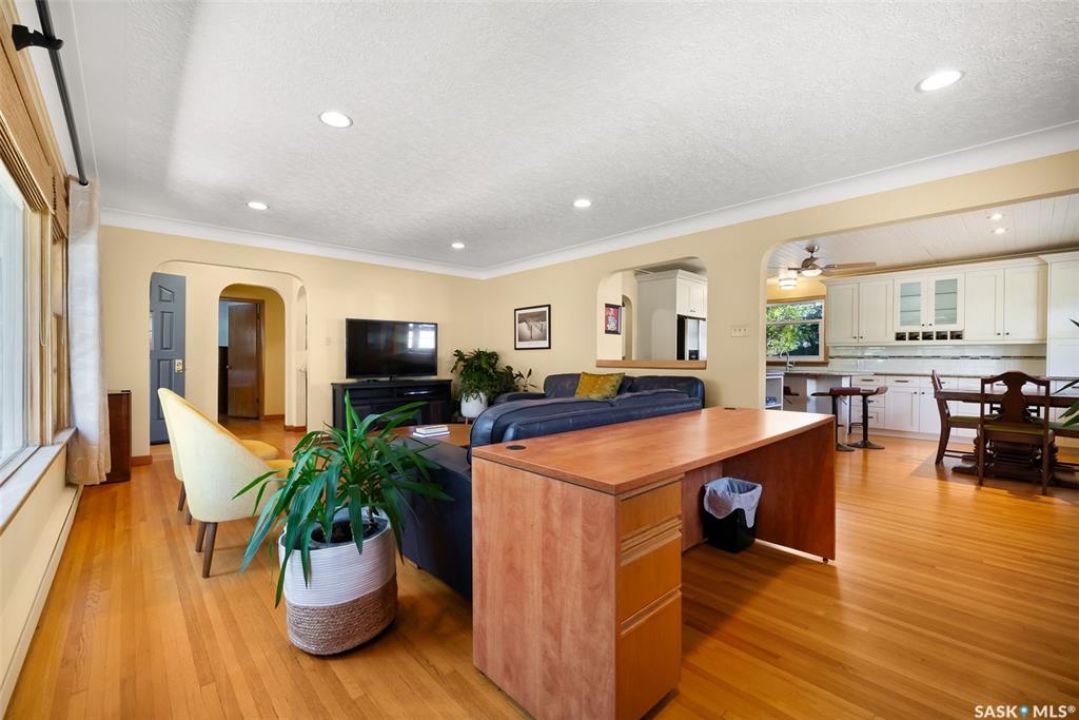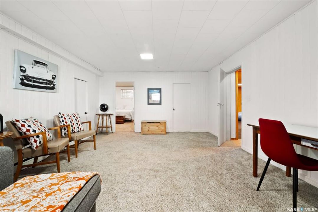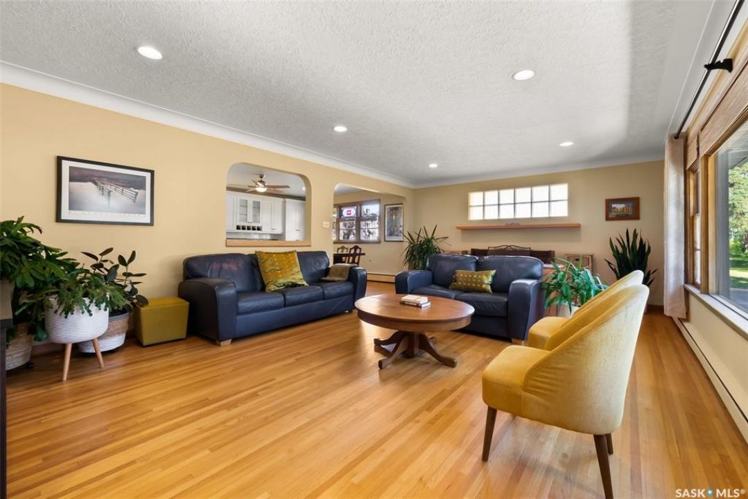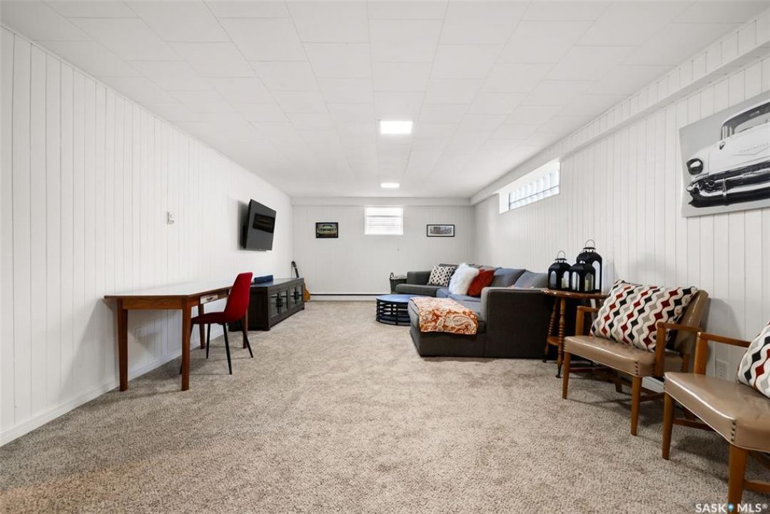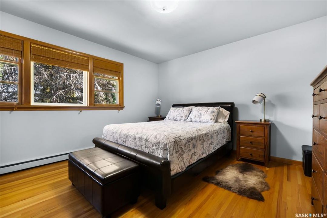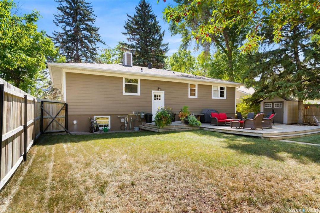 Welcome to 3402 Westgate Avenue, a beautifully updated 1,488 sq ft bungalow located in Lakeview, one of Regina's most sought after neighbourhoods. Situated on a mature, tree lined corner lot, this home offers the perfect blend of character, charm, and modern updates and is located just minutes from Wascana Lake, downtown, and all south end amenities. Step inside to an inviting open concept main floor featuring large windows and great sight-lines throughout the living, dining, and kitchen spaces. Original hardwood floors, original wood doors, and trim reflect the home's timeless character, while tasteful upgrades bring a fresh, modern feel. The white kitchen is a showstopper, boasting quartz countertops, a centre island, stainless steel appliances, high end cabinetry with built-in spice rack and appliance garage—all designed for functionality and style. The dining area comfortably fits a large table, making it ideal for hosting family and friends. Down the hall, you'll find three spacious main floor bedrooms with ample closet space and a 4 piece bathroom to complete the level. The fully finished basement offers even more living space with a large, bright family room, fourth bedroom, 3 piece bathroom, dedicated workout room, cold storage, laundry, and additional storage area. Making this home a perfect choice for growing families. Outside you can enjoy your private backyard space with a large low profile deck, fire pit area, large storage shed, and great fenced yard. The double detached garage is heated and insulated, with new garage doors and lane access. Additional exterior highlights include new Hardieboard siding and stone features, new shingles, upgraded electrical panel, new driveway, and newer fencing. The all reflecting true pride of ownership. Located in a friendly, walkable neighbourhood with access to top rated schools, parks, and local amenities, this home reflex true pride in ownership, and is move in ready for its next family.