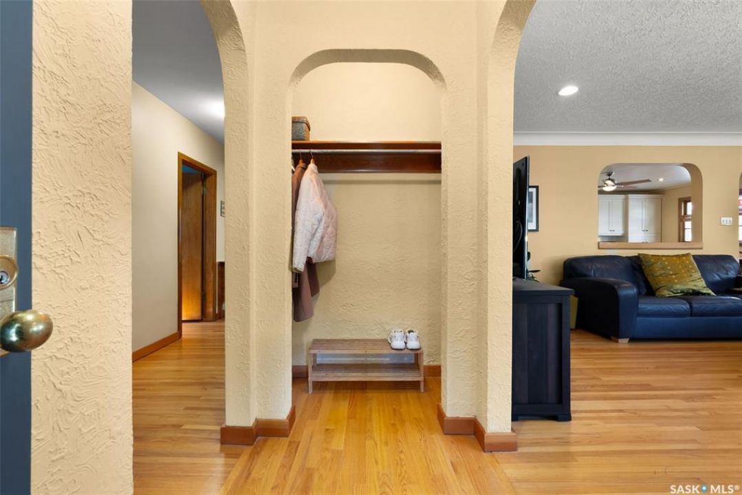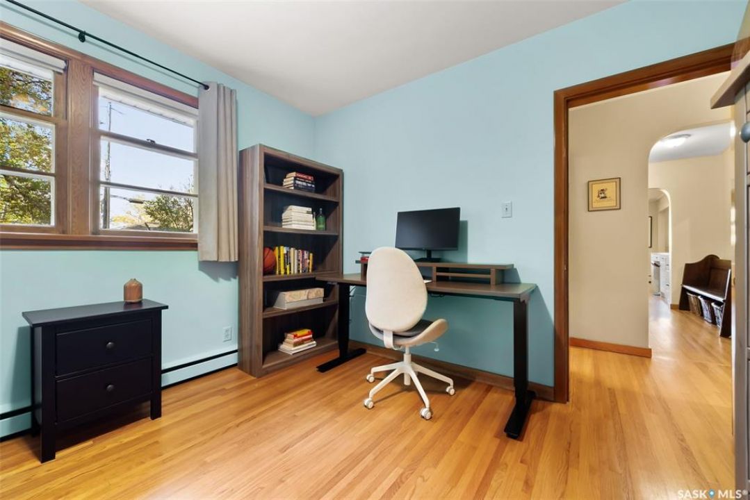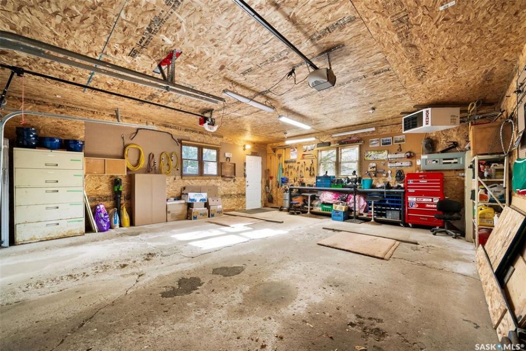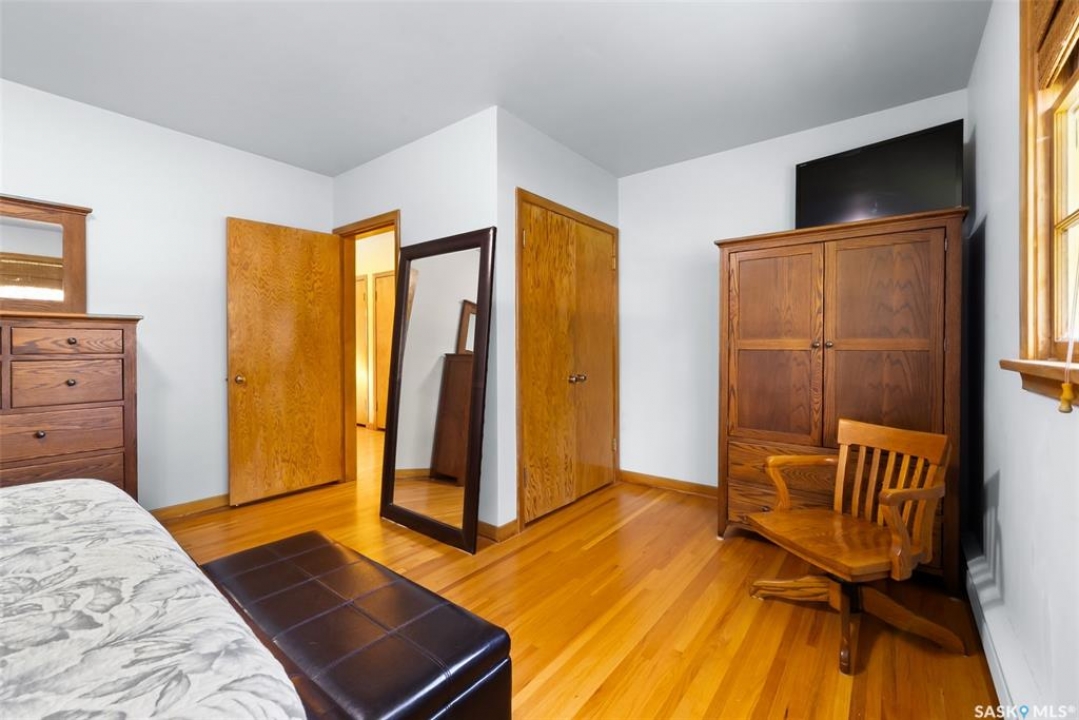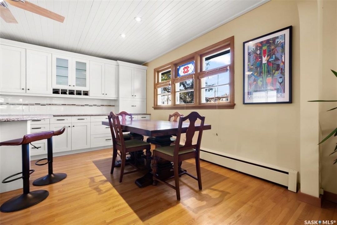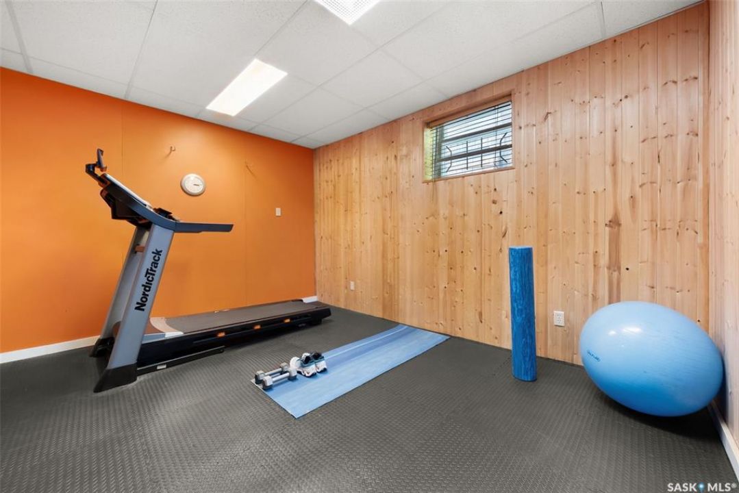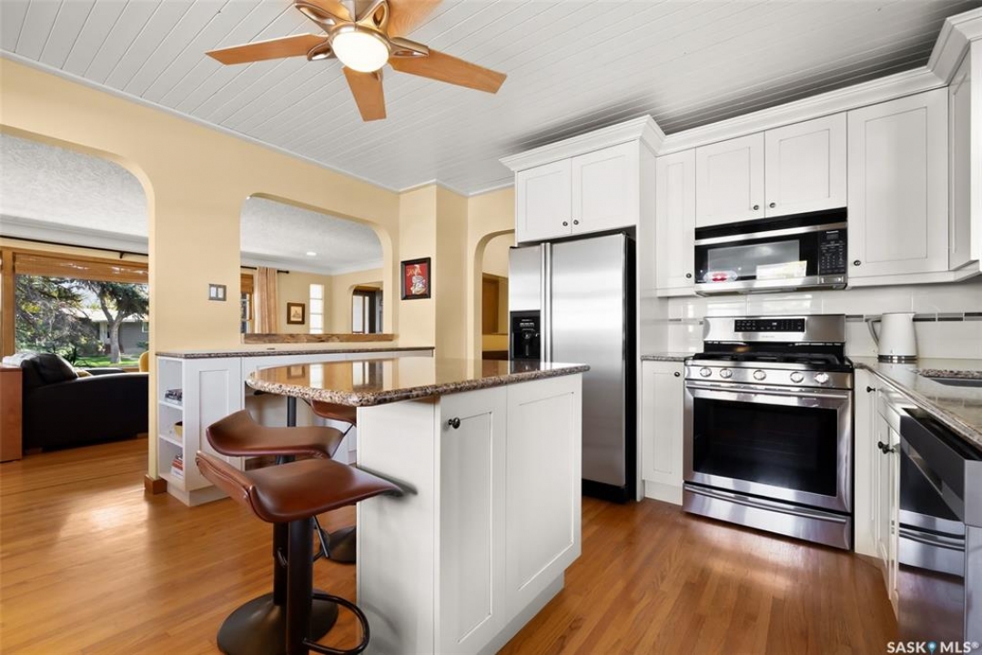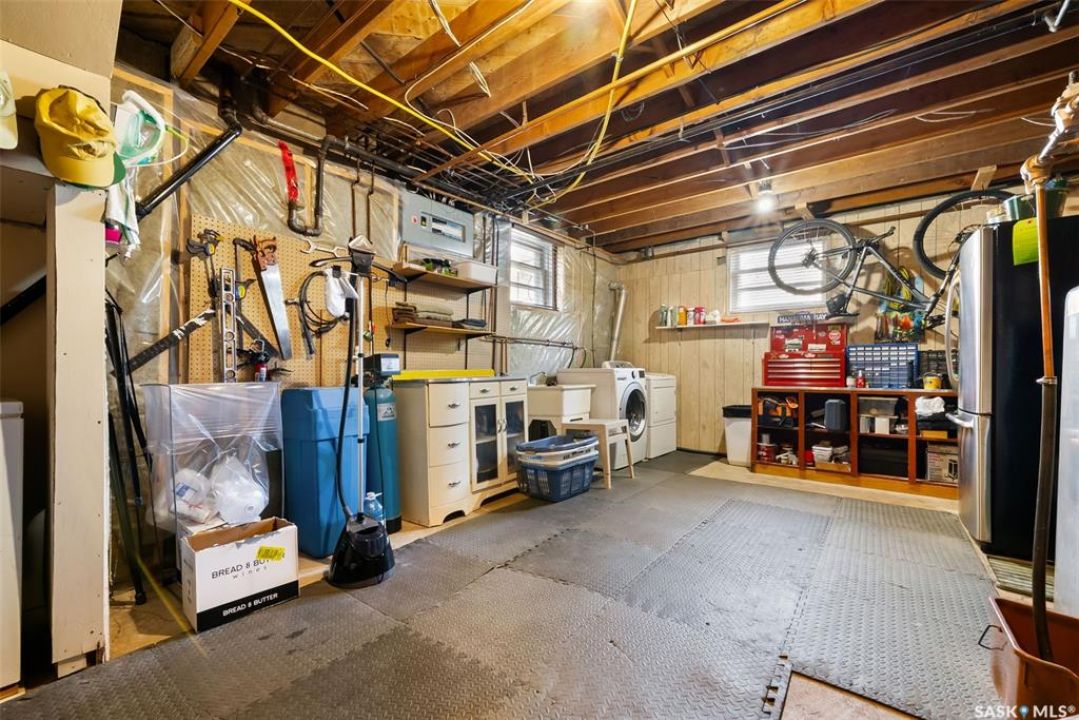 Welcome to 3402 Westgate Avenue, a beautifully updated 1,488 sq ft bungalow located in Lakeview, one of Regina's most sought after neighbourhoods. Situated on a mature, tree lined corner lot, this home offers the perfect blend of character, charm, and modern updates and is located just minutes from Wascana Lake, downtown, and all south end amenities. Step inside to an inviting open concept main floor featuring large windows and great sight-lines throughout the living, dining, and kitchen spaces. Original hardwood floors, original wood doors, and trim reflect the home's timeless character, while tasteful upgrades bring a fresh, modern feel. The white kitchen is a showstopper, boasting quartz countertops, a centre island, stainless steel appliances, high end cabinetry with built-in spice rack and appliance garage—all designed for functionality and style. The dining area comfortably fits a large table, making it ideal for hosting family and friends. Down the hall, you'll find three spacious main floor bedrooms with ample closet space and a 4 piece bathroom to complete the level. The fully finished basement offers even more living space with a large, bright family room, fourth bedroom, 3 piece bathroom, dedicated workout room, cold storage, laundry, and additional storage area. Making this home a perfect choice for growing families. Outside you can enjoy your private backyard space with a large low profile deck, fire pit area, large storage shed, and great fenced yard. The double detached garage is heated and insulated, with new garage doors and lane access. Additional exterior highlights include new Hardieboard siding and stone features, new shingles, upgraded electrical panel, new driveway, and newer fencing. The all reflecting true pride of ownership. Located in a friendly, walkable neighbourhood with access to top rated schools, parks, and local amenities, this home reflex true pride in ownership, and is move in ready for its next family.
