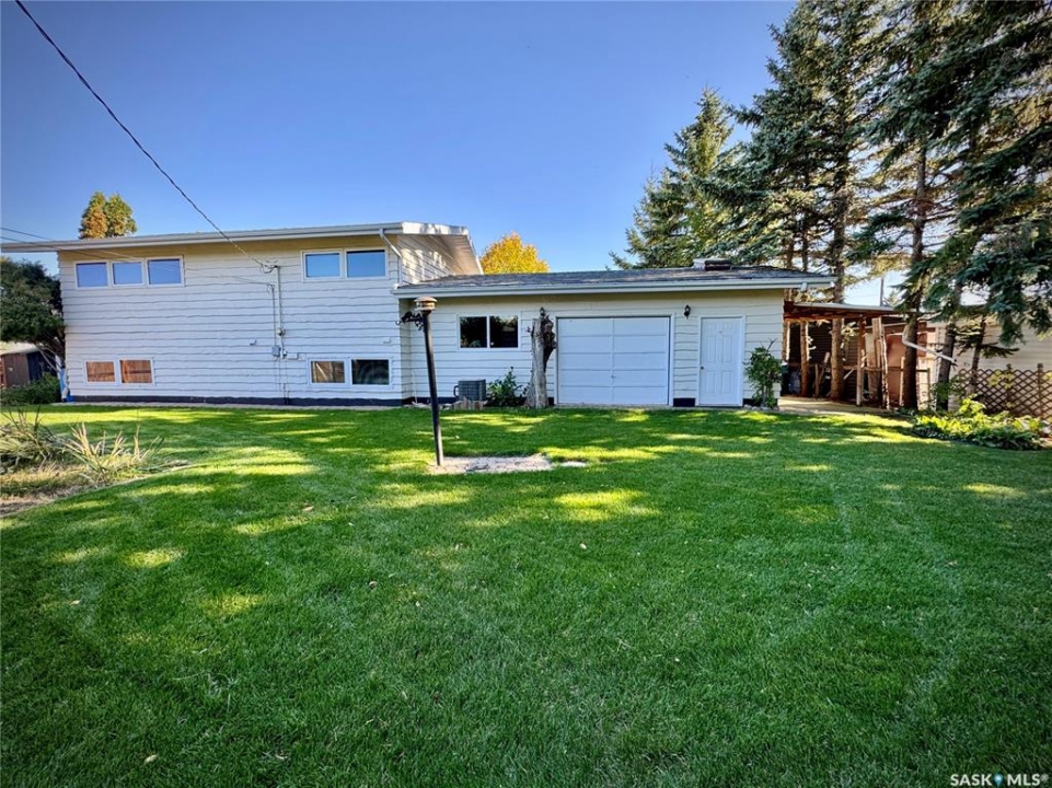 A home with history, heart, and room for your next chapter. Built in 1966 and lovingly held by the same family since the first shovel hit the ground, this property has been a place of life and laughter for nearly 60 years. Now, for the first time, it's ready to welcome new owners to continue the story. Tucked into a quiet bay, this lot backs both greenspace and the park. It's the kind of yard that's hard to come by — offering privacy, room for kids to explore, and the comfort of being steps from community amenities. To the east, a private sun deck catches the morning light for gardens, while the west side provides natural shade for summer evenings. The oversized heated double garage will grab your attention with two newer front doors and a third at the rear for easy pull-through access. Inside, a large entryway ties the home together, connecting both front and back doors. The living room is warm and inviting, anchored by a wood-burning fireplace and a corner window that delivers mid-century style and floods the space with natural light. The dining area is perfectly suited for family gatherings, while the split-level layout keeps kids close but gives them their own space in the basement. Tucked modestly apart is the bedroom wing with two children's rooms and a primary suite overlooking the greenspace. The Jack-and-Jill bathroom is generously sized with double sinks, storage, and direct access from the master. This home is both a time capsule and a canvas — cherished for decades and now waiting for its next family to make it their own. Whether it's the park-side location, the unique lot, or the character-filled design, 208 Hillside Bay is ready for new memories to be made.