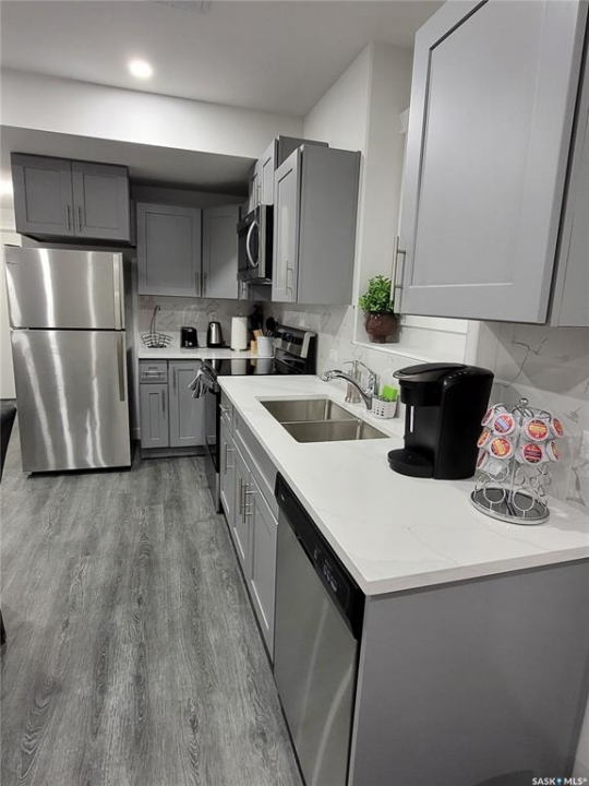 Beautiful modified bi-level on one of Kensington's largest lots at 539 Ells Crescent, featuring vaulted ceilings, a sun-drenched dining area, luxury vinyl plank, quartz counters, and upgraded appliances with a gas stove; the main home offers three generous bedrooms and three baths, plus a fully finished legal two-bedroom suite with matching high-end finishes for instant rental income. Outside you'll find a concrete driveway, thoughtfully landscaped front yard, and a northwest-facing deck perfect for long summer evenings, dramatic sunsets, and possible northern lights—an exceptional blend of space, style, and income potential.