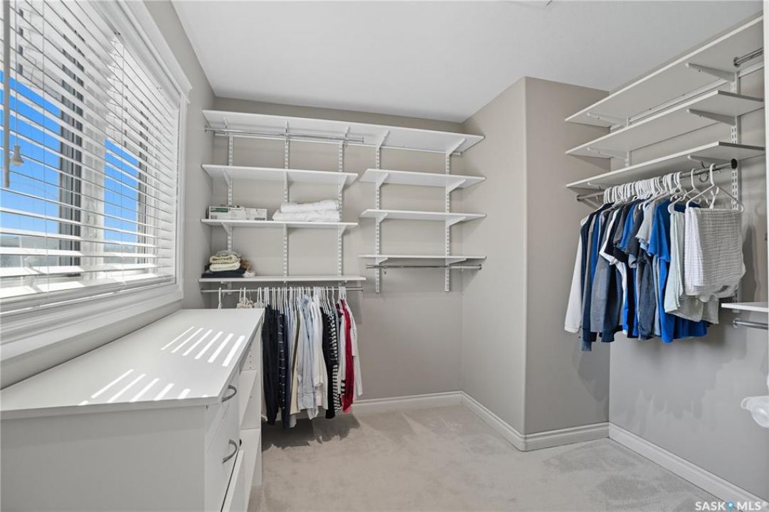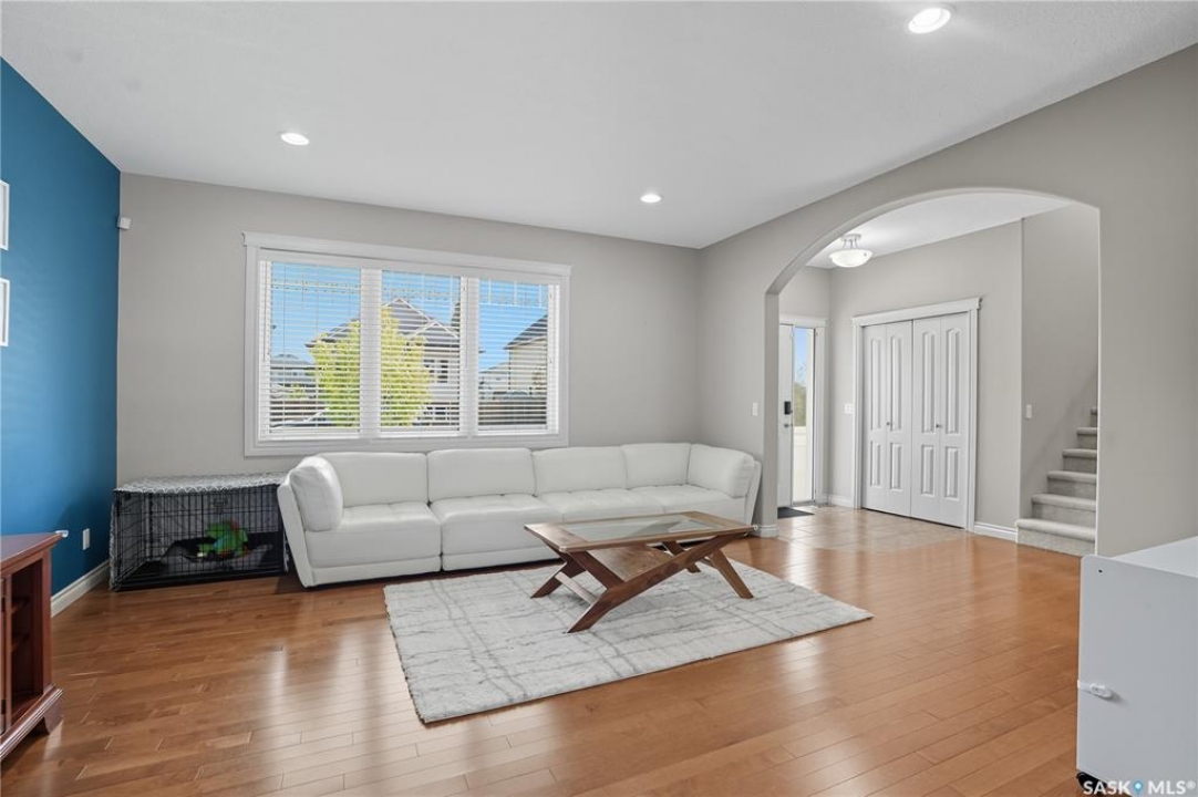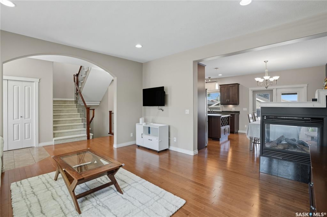 Tucked away on a quiet street near the back of Willowgrove is a 4 bedroom, 4 bathroom two storey that could be just what you've been waiting for! From the covered front porch you'll step inside & notice a spacious foyer that makes way to an inviting floor plan with plenty of windows to flood the home with natural light. A kitchen for the cooking enthusiasts with ample storage & counter space, as well as a natural gas stove. The spacious dining area is has a gas fireplace providing ambiance & distinct seperation from the adjoining living room. The main level features a functional layout with direct access to the backyard deck from both the dining area and the laundry/boot room, which leads to a 3 piece bathroom—ideal for entry from working or playing in the yard or garage. Upstairs are 3 generous sized bedrooms. The primary includes a walk in closet and a sizeable 5 piece ensuite featuring a jetted tub & stand alone shower. A 4 piece bathroom rounds out the second level. Downstairs you'll discover a welcoming, fully developed basement, designed for both relaxation and entertaining, featuring a dry bar, large family room, bedroom, 4-piece bathroom, and a versatile den/storage. Outside, the backyard has everything you need to enjoy the outdoors comfortably including two natural gas hook ups. The yard is landscaped with garden boxes and underground sprinklers. Off the back lane is a heated double detached garage providing ample space for working and parking, as well as a third parking spot beside. All carpet was replaced in 2022 as well as newer systems over the past 3 years; furnace (23), hot water heater (25), HRV (23), water softener (22), sump pump (24). With close proximity to elementary schools, shopping, dining, and commuter routes, this home combines everyday comfort with an unbeatable location. A fantastic opportunity for those looking to settle in one of Saskatoon's most desirable neighbourhoods. Contact your Realtor � to view today!