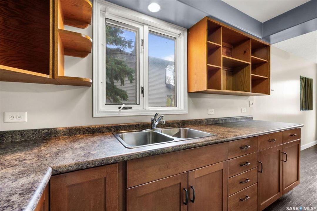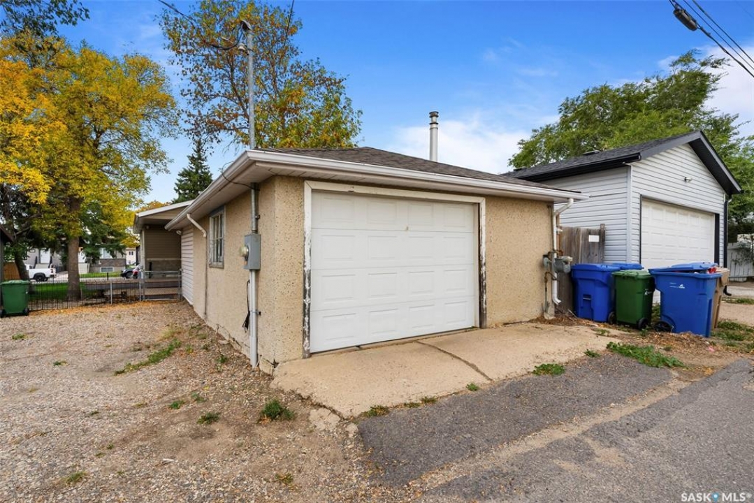 This well-maintained bungalow offers a rare opportunity with its double lot and two separate designations, providing flexibility and potential for future development. The home itself is thoughtfully updated, featuring newer PVC windows, refreshed flooring, counters, cupboards, and fixtures throughout the main level. A spacious principal bedroom and an upgraded main bathroom add comfort and style. The 144-square-foot addition built in 2010 is ideal for a home office, complete with spray foam insulation and a polly'd crawl space beneath for added efficiency. Downstairs, you'll find a non-regulation suite with a generous rec room, 4 pce bath and a bedroom, though the window may not meet current egress standards. The suite shares laundry space and would require framing for private entrances . Utility has a 100 amp panel, updated sewer line to the basement bathroom with a back flow valve. Outdoors to a two tiered deck and a well-built garden shed that adds to the storage, while the 18x20 detached mechanics garage is fully insulated, heated, and powered by its own 100 amp panel. The exterior boasts newer siding, stack stone accents, a recently installed A/C unit, and newer shingles, making this property move-in ready and full of potential.