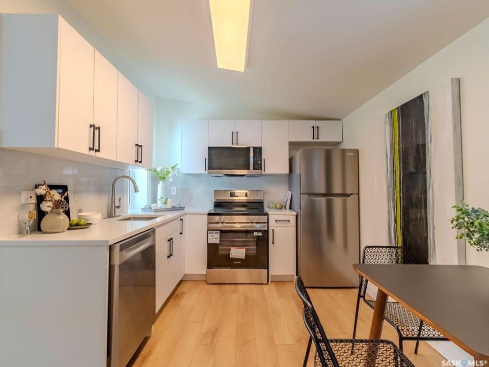 Welcome to 1423 6th Ave N, a cozy renovated home on a desirable corner lot. This property features 2 bedrooms, 1 full bathroom, and a bright, sun-filled living space with large bay windows. The modern kitchen with new appliances adds both style and functionality. Located in a well-established neighborhood, this home offers excellent access to downtown, Circle Drive, the industrial area. Elementary schools, and the river—within walking distance. The mature backyard is a true highlight, with apple and cherry trees, grape vines, birdhouses, a deck with a built-in bench (partially enclosed), and plenty of room for outdoor enjoyment. With two-street access and a spacious yard, there's strong potential for a future garden suite or additional development check with city permits. This charming home is perfect for first-time buyers, investors, or anyone looking for a centrally located property with great possibilities. presentation offers on Oct 5 @ 3: 00pm