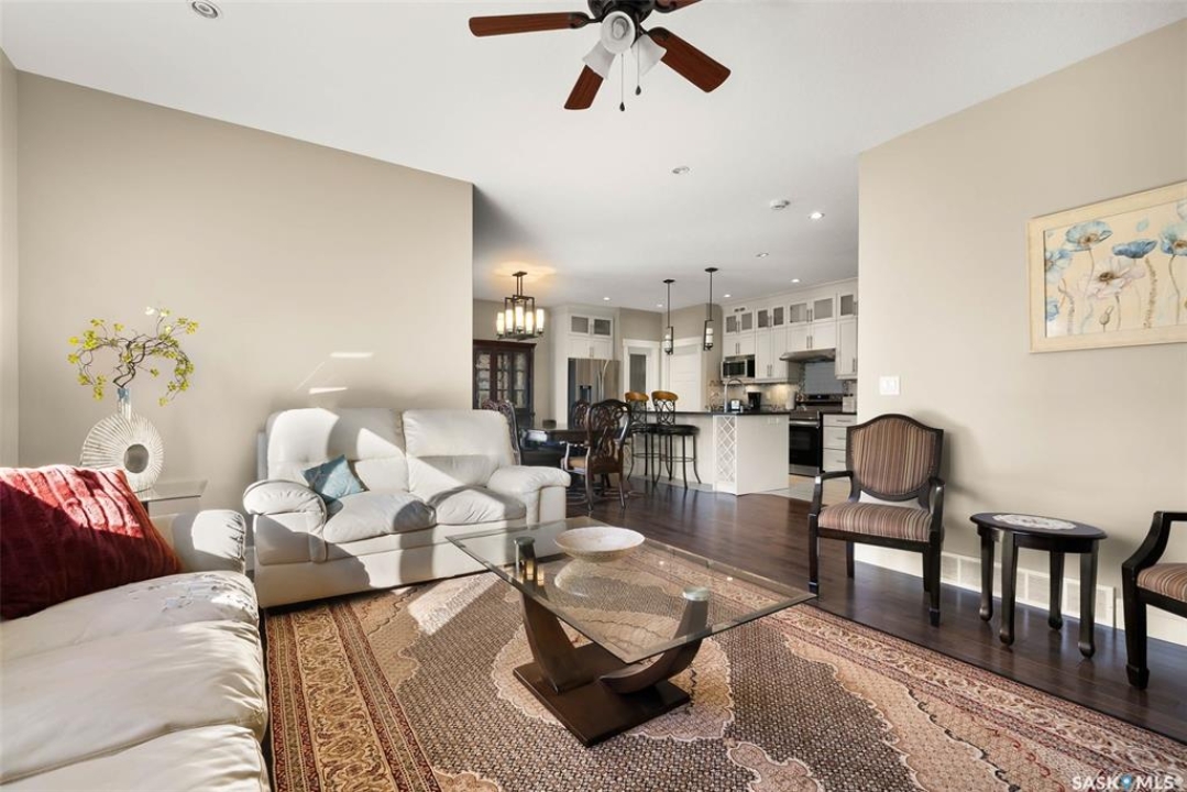 Welcome to 5221 Canuck Crescent, a beautifully maintained two-storey home in the family-friendly neighbourhood of Harbour Landing. Built in 2013, this 2,150 sq. ft. property offers a thoughtful layout, quality finishes, and a fully developed basement with a separate entry—providing excellent suite potential. The main floor features a bright living room with hardwood flooring and a cozy gas fireplace, an open dining area with access to the backyard deck, and a chef's kitchen complete with stainless steel appliances, granite counters, tile backsplash, a pantry, and a central island with wine storage. A convenient office/den and a 2-pc bathroom complete the main level. Upstairs, the spacious primary suite includes a walk-in closet and a luxurious 5-pc ensuite with dual sinks, soaker tub, and separate shower. Two additional bedrooms, a 4-pc bath, a second-floor laundry room, and a large bonus room provide plenty of space for family living. The fully finished basement offers a non-regulation suite with its own kitchen, living room, two bedrooms, a 4-pc bath, and separate laundry—ideal for extended family, guests, or rental income. Outside, enjoy a landscaped and fenced yard with deck, trees, and shrubs. The double attached garage is insulated, heated, and provides direct entry to the home, along with ample driveway parking. Located close to schools, parks, walking paths, shopping, and all Harbour Landing amenities, this home is move-in ready and offers exceptional value.