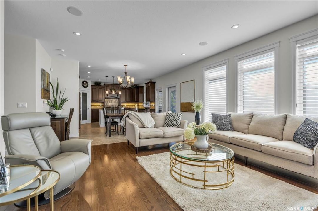 Discover the perfect blend of comfort, style, and convenience in this exceptional property, ideally situated in a highly sought-after cul-de-sac. Just a short stroll from the promenade in the new Parkridge extension and the vibrant Blairmore shopping center, you'll find all your essential amenities right at your fingertips. Enjoy charming walking paths, pocket parks, and close proximity to schools, making this neighborhood not only safe but peaceful and ideal for families. This custom-built, one-of-a-kind residence is nestled on a sprawling pie-shaped lot, featuring a stunning backyard oasis that's perfect for relaxation and entertainment. Dive into your very own sparkling, permanent above-ground heated pool, measuring an impressive 18x33, where you can bask in the sun on warm summer days. The backyard is beautifully landscaped with mature trees, lush shrubs, and vibrant perennials, creating a serene outdoor retreat. Step inside to find a thoughtfully designed interior that exudes warmth and charm. The open great room concept features 9ft ceilings, gas fireplace, and hardwood flooring. The chef's kitchen is a culinary delight, with custom features, island, walk in pantry, under-counter lighting illuminates the stunning marble tile backsplash that beautifully accentuates the granite countertops throughout the home, combining style with functionality. The main floor also features a den & 2pc bath. This home features 4 spacious bedrooms and 4 bathrooms, including a luxurious ensuite with a tiled shower equipped with four shower heads and his-and-her sinks. The master bedroom offers a walk-in closet. Comfort is paramount in this residence, with heated floors in the garage and basement, as well as tiled sections throughout the other levels. The basement serves as a perfect retreat, featuring spray-foamed exterior walls and a delightful wet bar. Embrace the outdoor enjoyment and tranquility of living in a family-friendly neighborhood. Your dream home awaits