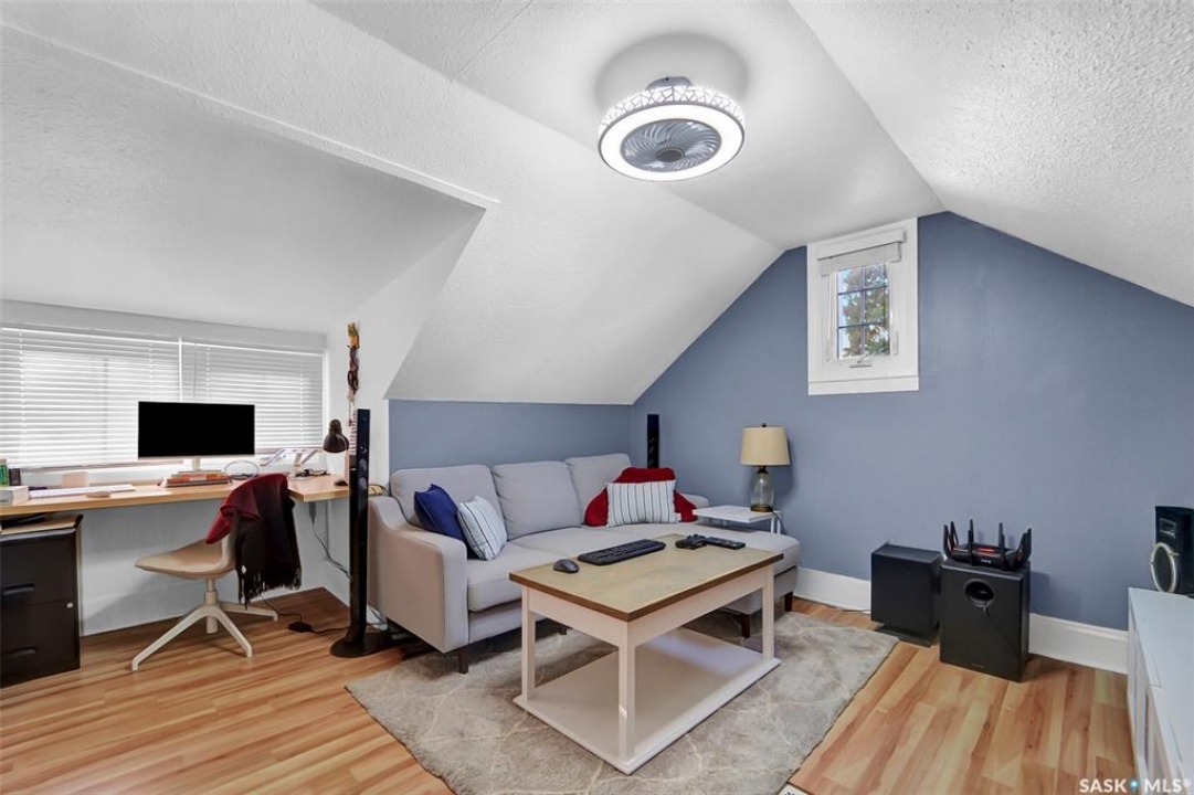 Welcoming investors and home ownership to this beautifully updated 1 � story home in Buena Vista! From the moment you step inside, you'll feel the perfect balance of modern updates and original character.Charming details such as arched doorways, original moldings, and ceiling accents set the tone, while the bright living room with its gorgeous original fireplace opens seamlessly into the spacious dining room, complete with built-in cabinets and serving area. The galley-style kitchen is both stylish and functional, featuring stainless steel appliances, white cabinetry, and a unique backsplash design. A large main-floor bedroom offers comfort and convenience. Practicality shines with the generous mudroom, complete with locker-style storage, and a laundry room located off the back entry with plenty of space for sorting and folding. Upstairs, you'll find two spacious bright bedrooms with charming sloped ceilings. The basement offers an LEGAL Suite , including a cozy family room, two additional large bedrooms, and a 3-piece bath. Step outside to enjoy the private backyard—perfect for relaxing, BBQs, or entertaining—with both deck and patio spaces, garage, 2 parking spots for both tenants and owner and one in the front for easy convenience. Located in one of Saskatoon's most desirable areas, you'll be within walking distance to Broadway, the river, and downtown. This home truly has it all—character, updates, and an unbeatable location!