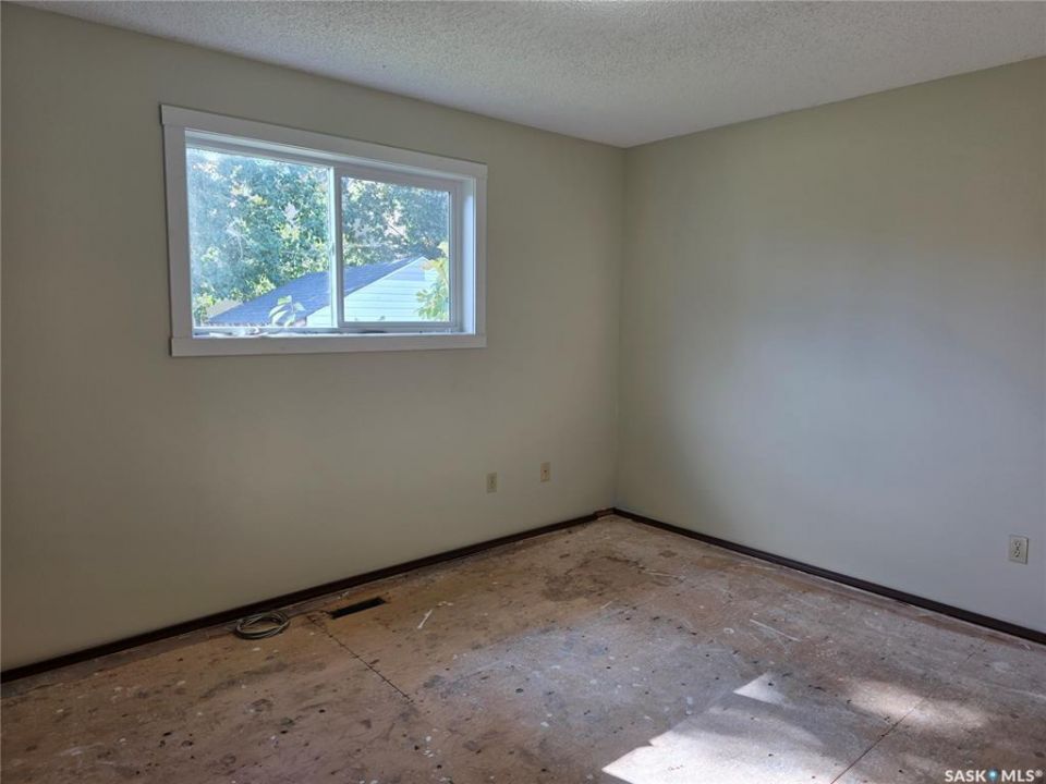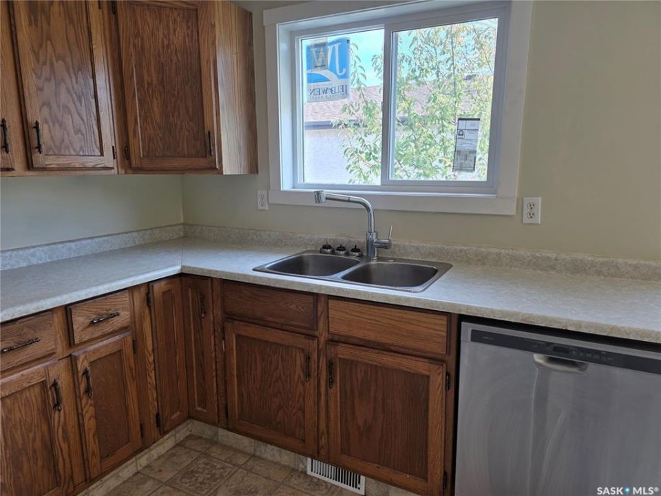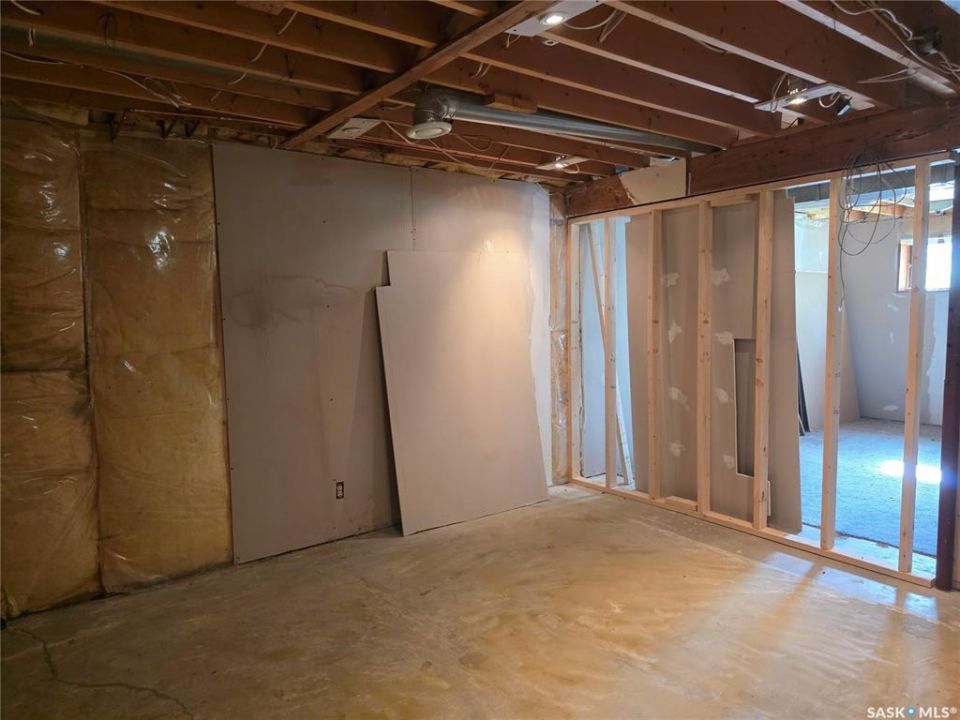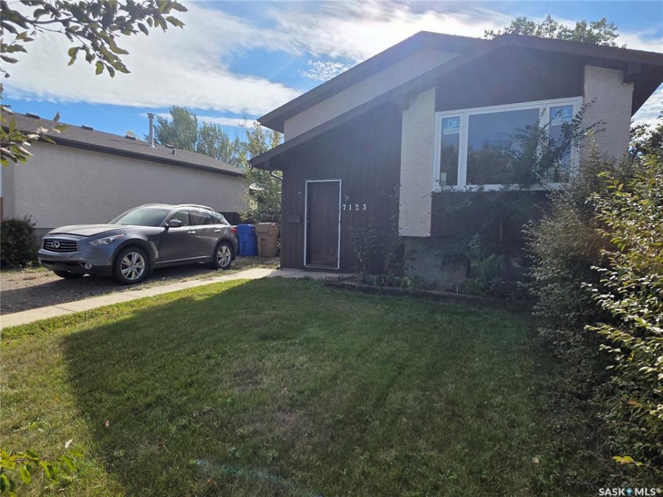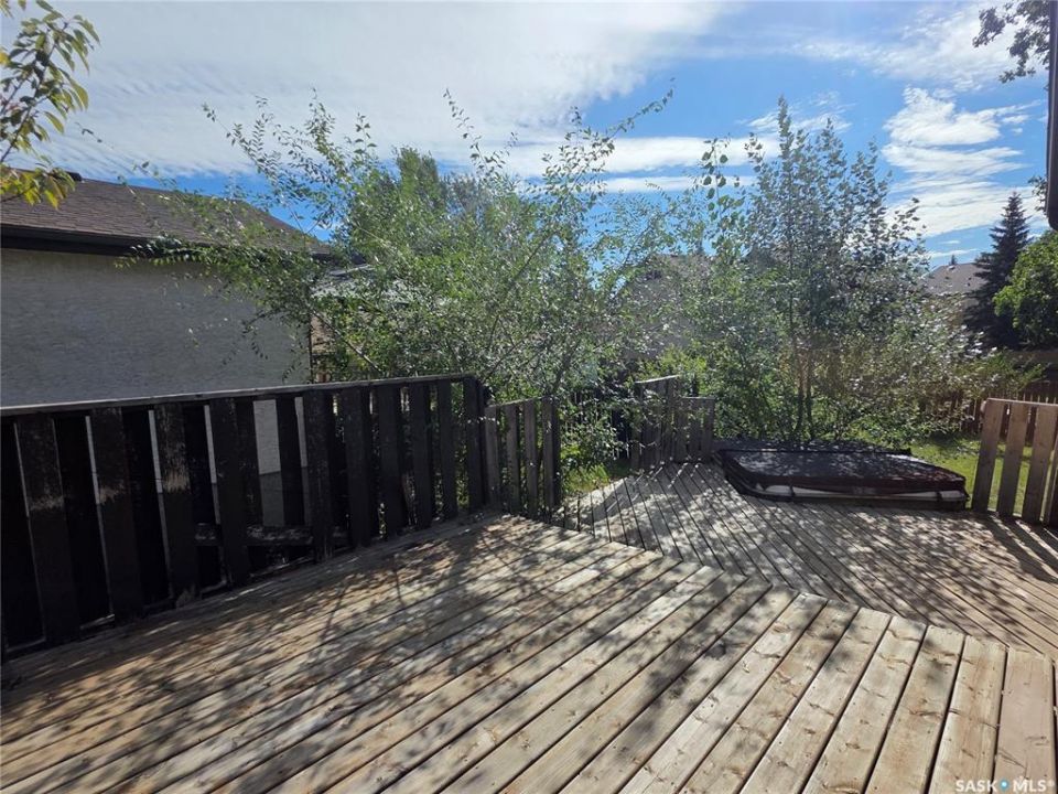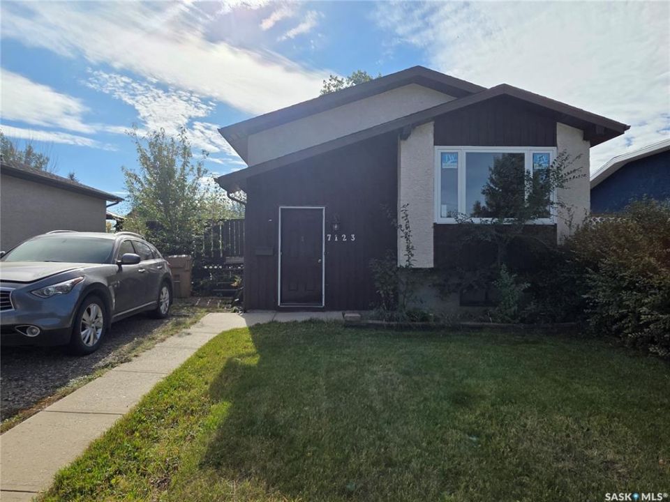 Starter home with major glow-up potential—your Pinterest board called, time to bring your ideas to life! This 2 bedroom, 1 bathroom bi-level offers 899 sqft of potential and is ready for a new family to make it their own. With a little paint, new flooring, and your personal touch, this house can easily become your home. The bright front-facing living room is filled with natural light and flows into the kitchen and eat-in dining space. Patio doors lead to a double-tiered side deck—perfect for BBQ nights and watching the kids play. The kitchen comes complete with fridge, stove, and dishwasher. Two bedrooms and a full bath finish off the main floor. The basement is already framed for a future rec room, den, bathroom, and utility/laundry area, giving you a head start on creating extra living space. Practical updates include newer shingles, updated windows on the main level, and central A/C for summer comfort. Step outside to a fully fenced backyard where kids and pets can play safely, plus enjoy cherry and plum trees right in your own yard! A front gravel driveway provides plenty of off-street parking for you and your guests. All of this is located in the family-friendly neighborhood of Rochdale Park in NW Regina, walking distance to the NW Leisure Centre, Doug Wickenheiser Arena, parks, and tons of nearby amenities.