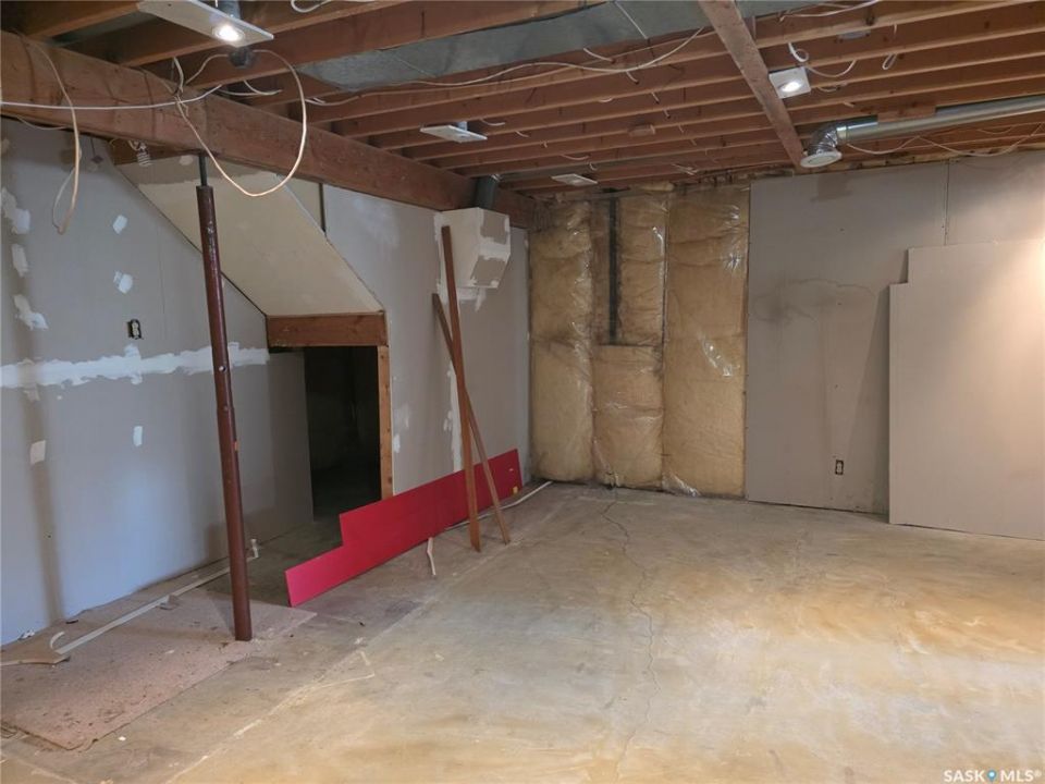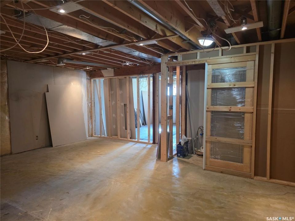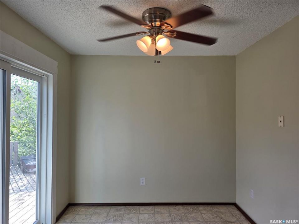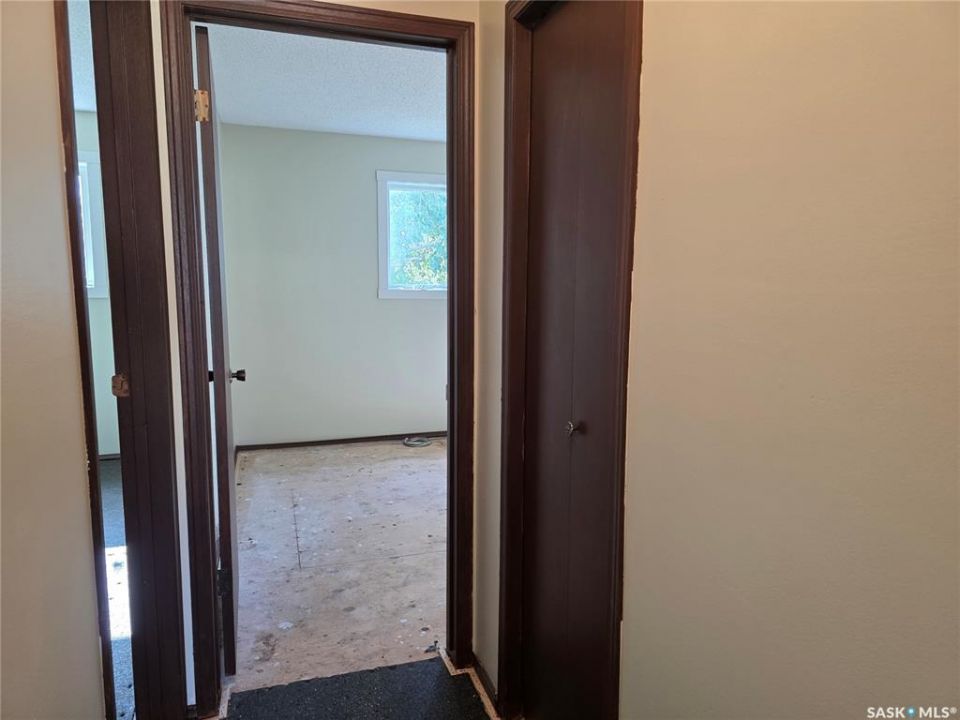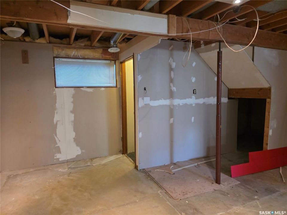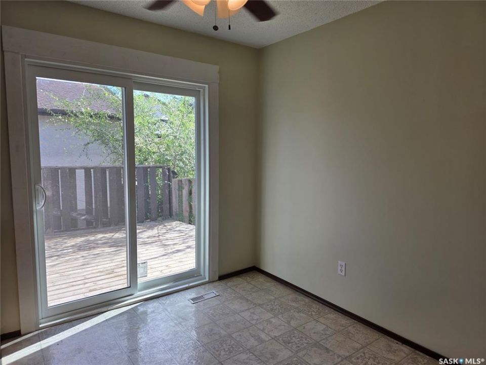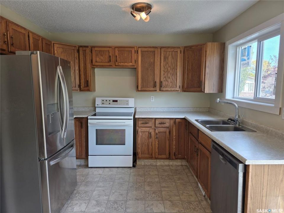 Starter home with major glow-up potential—your Pinterest board called, time to bring your ideas to life! This 2 bedroom, 1 bathroom bi-level offers 899 sqft of potential and is ready for a new family to make it their own. With a little paint, new flooring, and your personal touch, this house can easily become your home. The bright front-facing living room is filled with natural light and flows into the kitchen and eat-in dining space. Patio doors lead to a double-tiered side deck—perfect for BBQ nights and watching the kids play. The kitchen comes complete with fridge, stove, and dishwasher. Two bedrooms and a full bath finish off the main floor. The basement is already framed for a future rec room, den, bathroom, and utility/laundry area, giving you a head start on creating extra living space. Practical updates include newer shingles, updated windows on the main level, and central A/C for summer comfort. Step outside to a fully fenced backyard where kids and pets can play safely, plus enjoy cherry and plum trees right in your own yard! A front gravel driveway provides plenty of off-street parking for you and your guests. All of this is located in the family-friendly neighborhood of Rochdale Park in NW Regina, walking distance to the NW Leisure Centre, Doug Wickenheiser Arena, parks, and tons of nearby amenities.