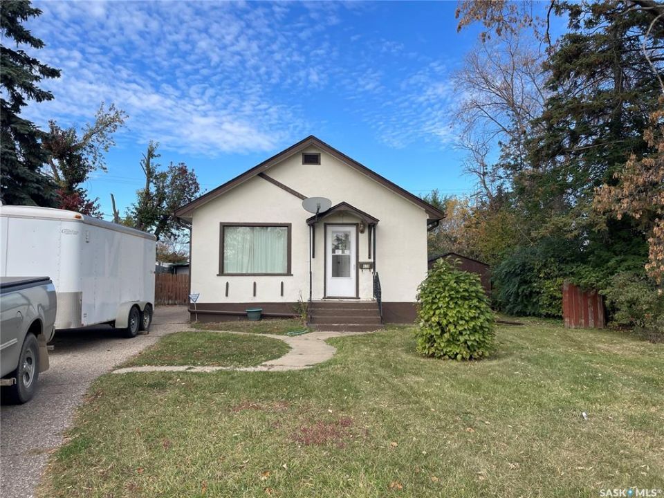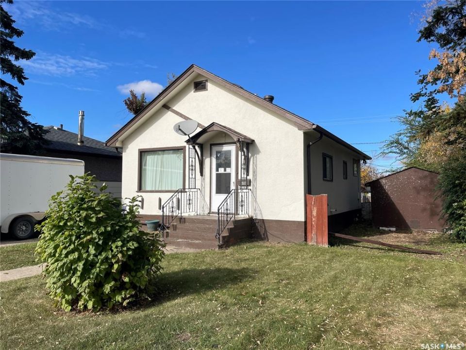 Charming 660 sq ft bungalow in East Flat, complete with a single detached garage and stucco exterior for lasting curb appeal. Inside you'll find a welcoming living and dining area, a functional kitchen with quality oak cabinets, and 2 bedrooms along with a three-piece bathroom featuring a Bathfitter shower. The basement offers a cozy family room, plenty of storage, laundry, and utility space. Features include central vac, a high-efficiency furnace, updated shingles, and appliances included. The backyard provides a spacious outdoor retreat to enjoy. Garage was built in 1983 according to city assessment.