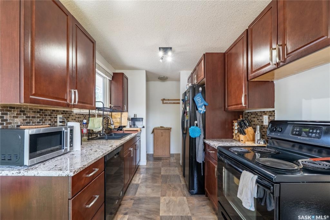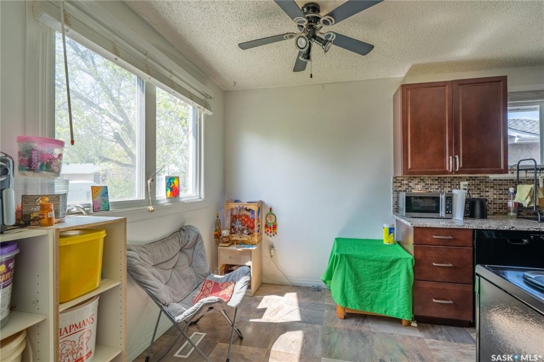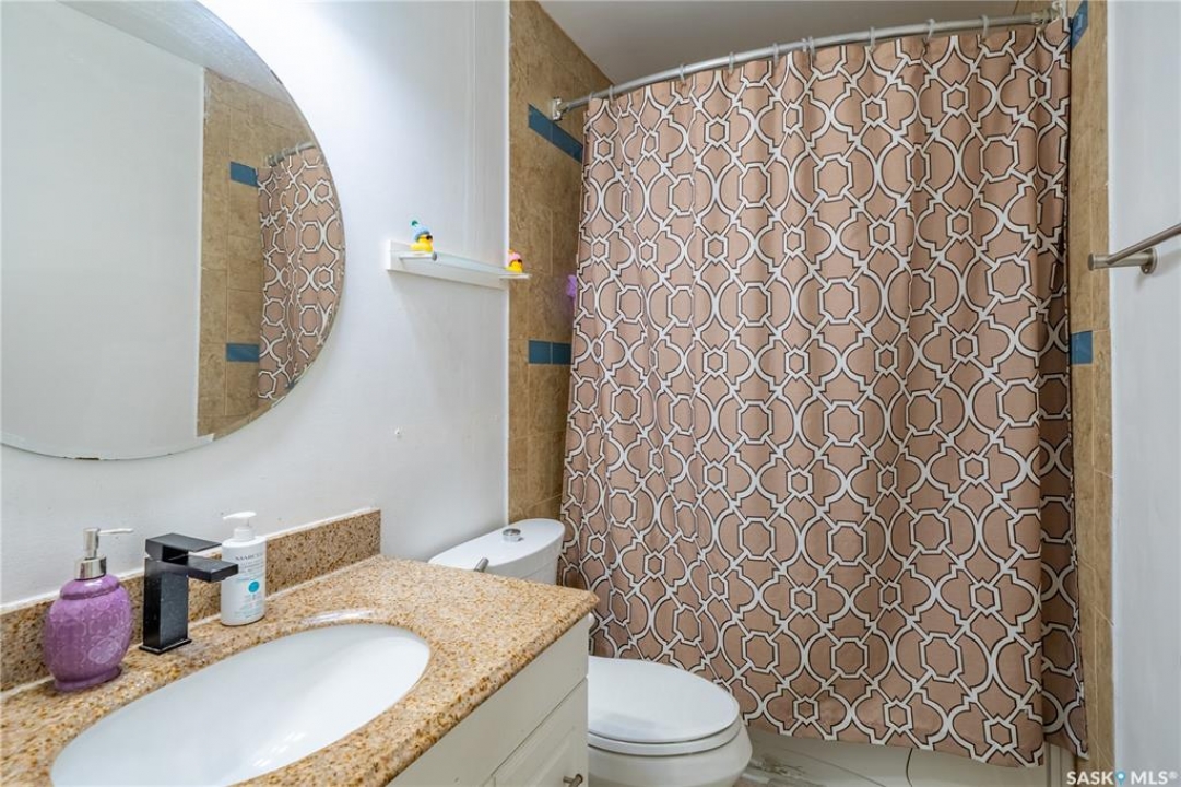 Welcome to 198 Thomson Avenue, a well maintained bungalow located in the quiet, family-friendly neighborhood of Glencairn Village. This charming corner unit is within walking distance to elementary and high schools, parks, walking paths, and convenient southeast Regina amenities. Tastefully decorated in neutral tones, it features 3 main-floor bedrooms and 2 full bathrooms, including a jet tub on the main and a jacuzzi tub in the basement. The bright living and dining area flows into an updated kitchen with modern cabinetry, granite countertops, and a designer sink. The fully finished basement offers a spacious family room, a versatile den (ideal as a guest room or office), a full bathroom, and a laundry/utility room with storage. Recent updates includes a new furnace (2022), a tankless water heater (2022), new washer (2020), newer dishwasher (2019), central A/C, and a composite deck leading to a fully fenced backyard—perfect for relaxing or entertaining. The basement is braced to engineer's specs, and the report is available. This move-in-ready home blends comfort, style, and location—book your private viewing today!