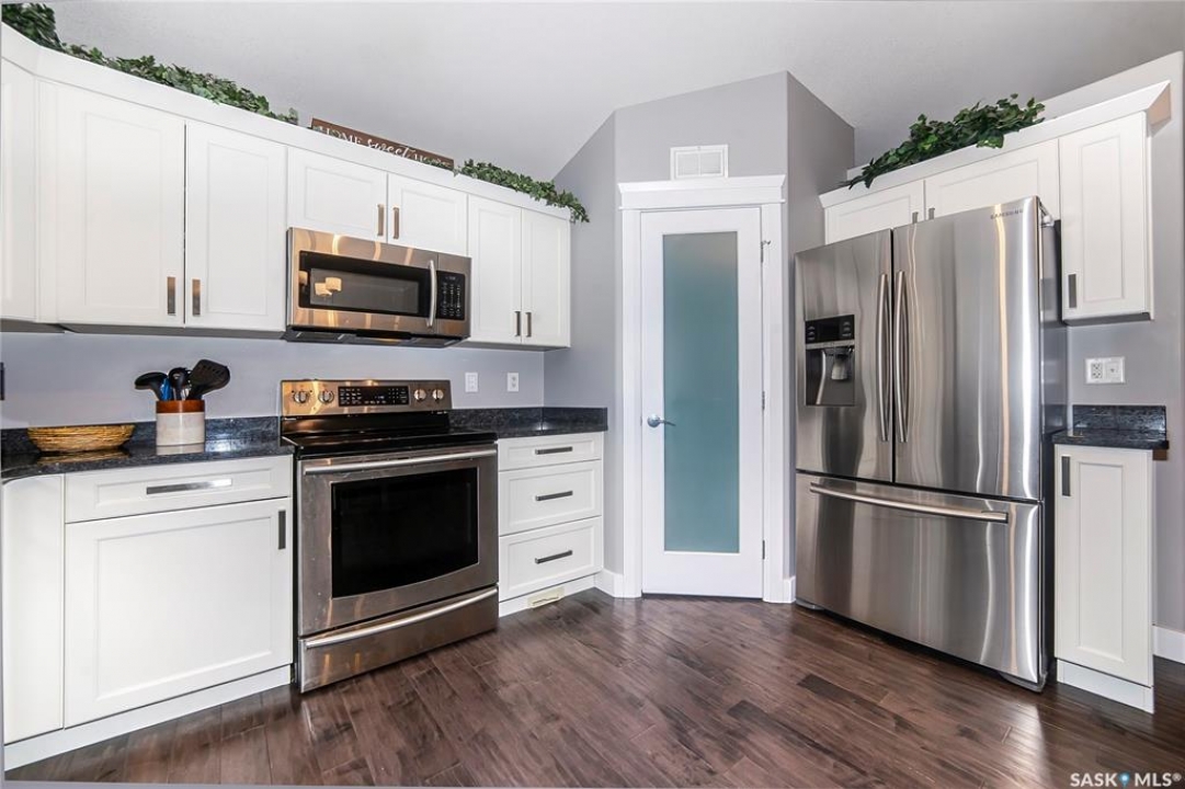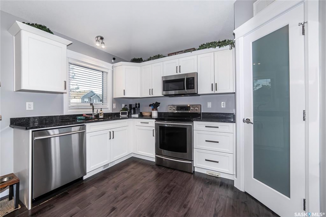 Welcome to 343 Langlois Way, a beautifully maintained 1,141 sq. ft. modified bi-level located in the highly desirable community of Stonebridge. This move-in ready home sits on a prime corner lot directly across from a tranquil pond and scenic walking trails, offering the perfect blend of comfort, functionality, and location. The main floor features a bright concept layout with a spacious living room, modern kitchen, and dining area that flows seamlessly to a stunning two-tier composite deck with glass railing—ideal for outdoor entertaining, morning coffee, or evening relaxation. The primary bedroom boasts a private 3-piece ensuite and walk-in closet, while two additional bedrooms and a 4-piece bath provide the perfect layout for families. The lower level is thoughtfully designed with a separate utility/laundry area for the main home, plus a fully self-contained legal 2-bedroom suite with its own entrance. Complete with living room, kitchen, four-piece bath, laundry, and dedicated electric hot water tank and extra storage under the stairs. The suite offers excellent income potential, a mortgage helper, or private space for multigenerational living, in-laws, or university/college students seeking independence with convenience. Outdoor living is maximized with full front and back landscaping, a fully fenced vinyl yard for privacy and low maintenance, patio space, and extra corner-lot parking. The attached 2-car garage is fully insulated and heated, equipped with cabinetry and workbench—perfect for hobbies, storage, or winter comfort. The extended driveway fits three additional vehicles, with added street parking for guests. Storage built under the deck, roughin work done for future hot water tub in the backyard. Close to schools, shopping, parks, and Stonebridge amenities, this property checks every box. Perfect for families or investors, this home is a rare find in one of Saskatoon's most sought-after neighbourhood.