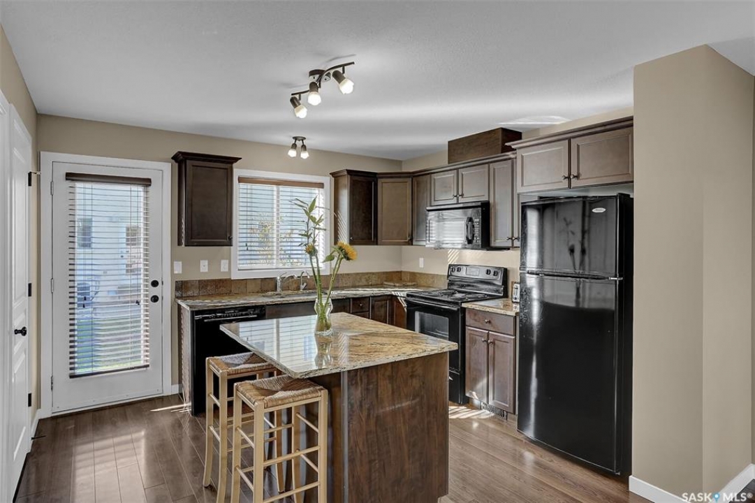 Welcome to this well kept two storey condo in a desirable neighbourhood Harbour landing! Close to shoppings, restaurant, walking path and all amenities. This condo offers 2bedrooms, a den/office, 3bathrooms and a finished basement, plus 2 parking spots directly outside the front door. Open concept mvinfloor features a spacious living room, a dining area, kitchen offers beautiful granite countertops, dark modern cabinets with an island. There is main floor laundry room and 2pc bathroom to finish the main floor. The up floor has two good sized of bedrooms and 4pc bathroom, plus a den/office. The basement is fully developed with a family room, and another 3pc bathroom, a storge area.. The back yard is partially fence with a patio and lawn area that you can enjoy in the summer with family and friends.