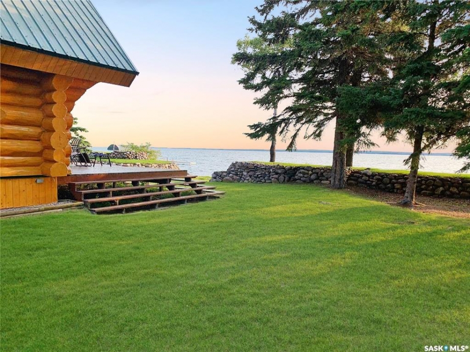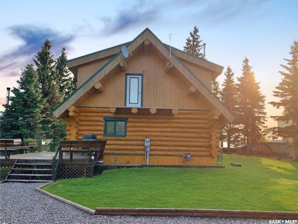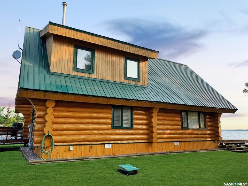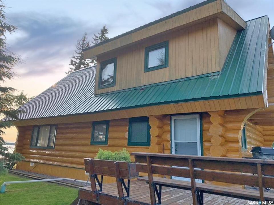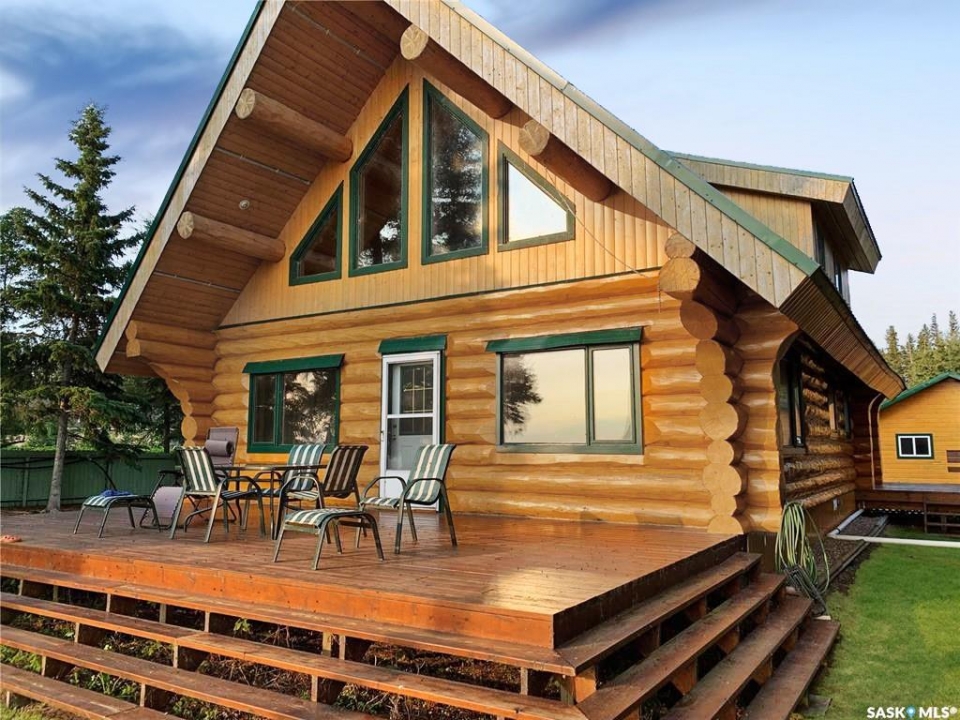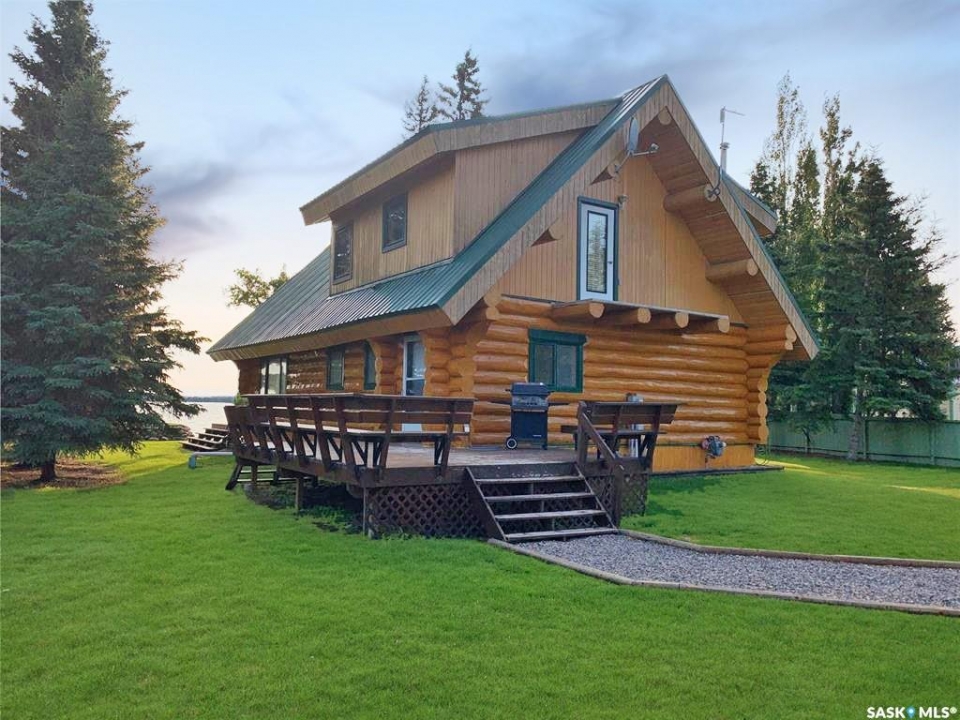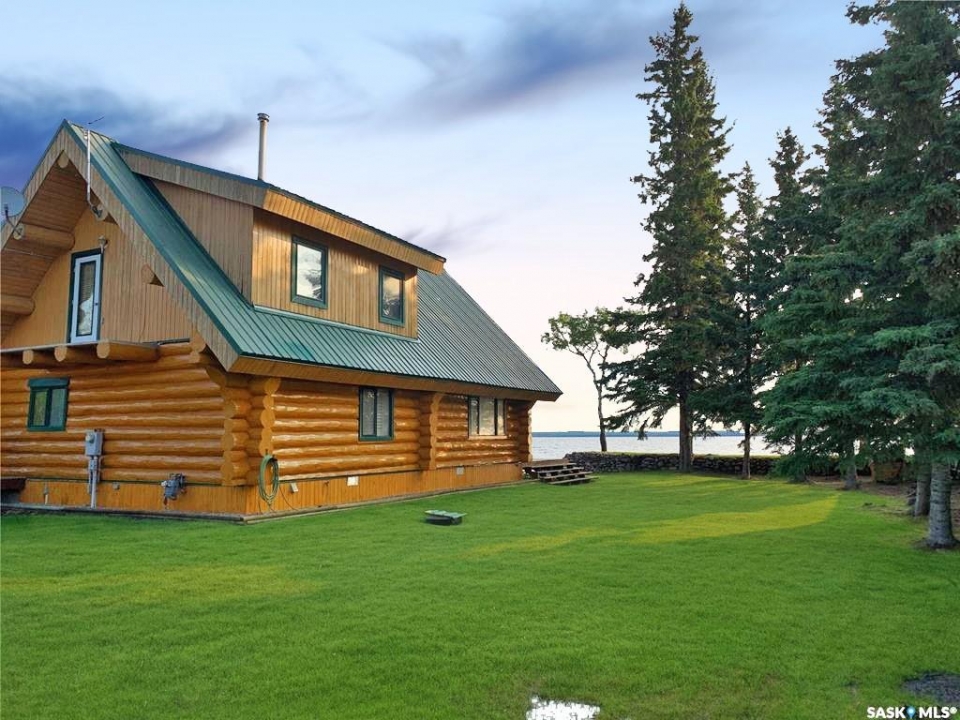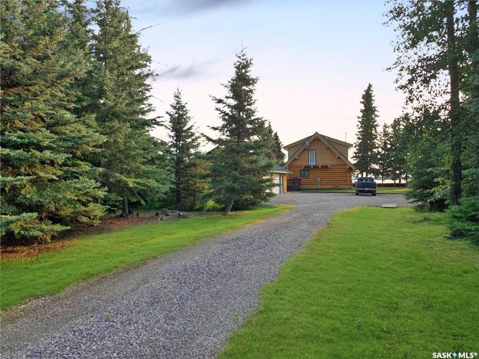 Dream Lakefront. Handcraft Log home situated on west shore of Candle Lake. This dream spot owns to the water edge and offers 90' of water frontage. The lot itself is 300'X90' (0.62acres) private, partially fenced and wonderfully landscaped. The maintained yard and house provides everything your looking for in a lakefront property. 1680sqft storey 1/2 features completely ope loft (20'X26) currently used as a huge master bedroom with 3pc ensuite and office nook...all with a great view of the water. The cust built log stair case opens to open concept living room, dinning room, with post & beam vaulted ceilings, providing lot of great natura light and maximizing your view. Bright open kitchen offers lots of cupboard space, island/breakfast nook, gas range all showcasing th waterfront. Main floor features another nice size bedroom, utility room, mudroom/porch and 3pc bathroom. Large back deck with ber and NG BBQ hook up. The front door open onto a lakefront oversized deck, taking full advantage of the morning sunrise. For all your there is a oversized detached double garage (24'X34'). The yard has plenty of room for additional waterview garage/loft. Well & Sept triple pane window throughout, come check out the value of this gorgeous lakefront property. Dock & Lift Permit transferable.