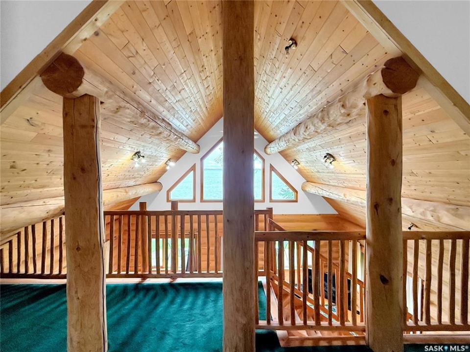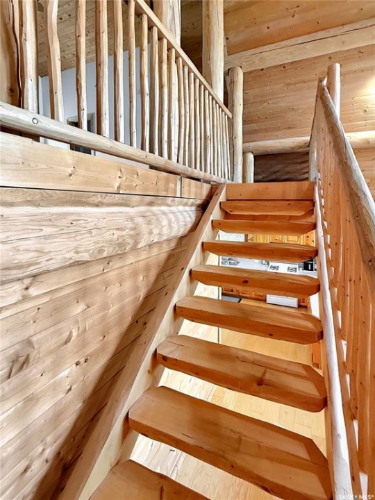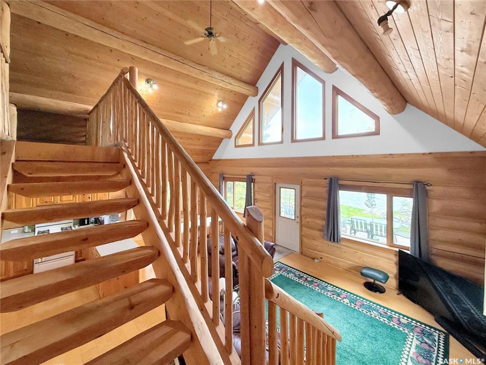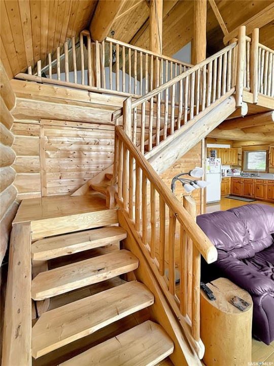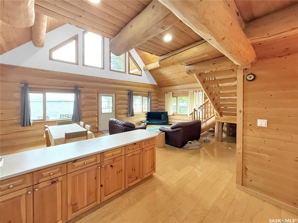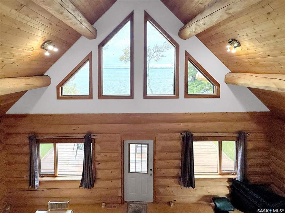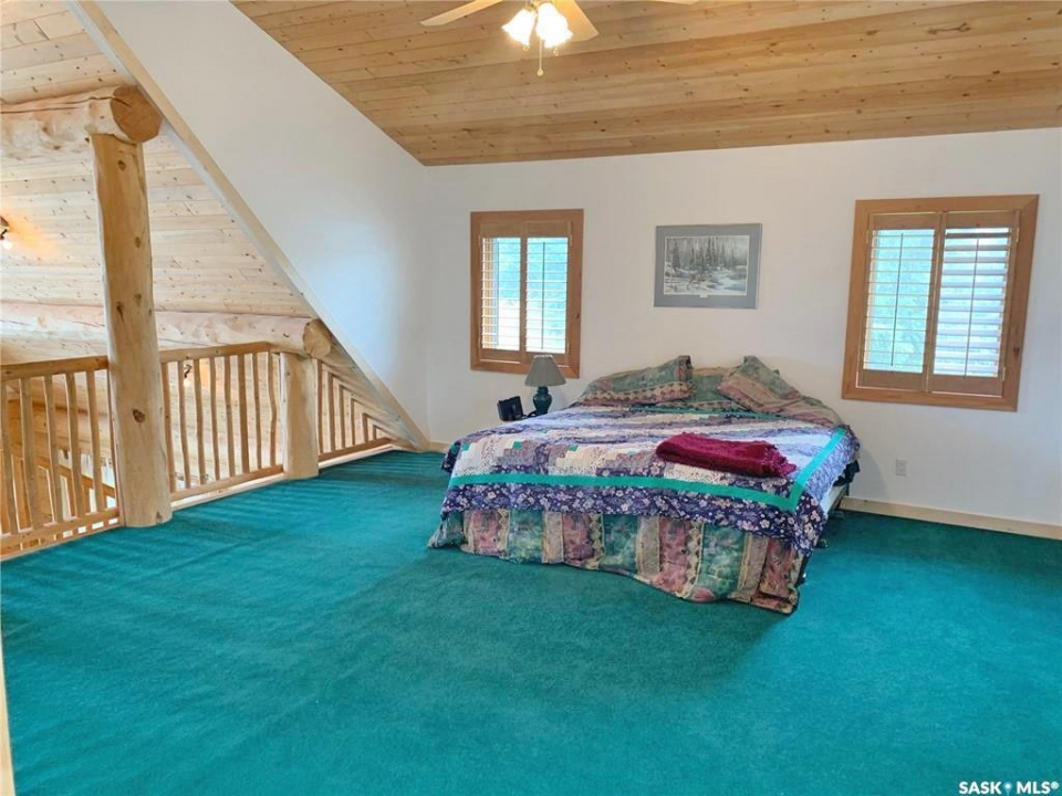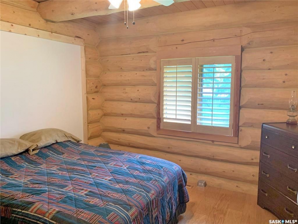 Dream Lakefront. Handcraft Log home situated on west shore of Candle Lake. This dream spot owns to the water edge and offers 90' of water frontage. The lot itself is 300'X90' (0.62acres) private, partially fenced and wonderfully landscaped. The maintained yard and house provides everything your looking for in a lakefront property. 1680sqft storey 1/2 features completely ope loft (20'X26) currently used as a huge master bedroom with 3pc ensuite and office nook...all with a great view of the water. The cust built log stair case opens to open concept living room, dinning room, with post & beam vaulted ceilings, providing lot of great natura light and maximizing your view. Bright open kitchen offers lots of cupboard space, island/breakfast nook, gas range all showcasing th waterfront. Main floor features another nice size bedroom, utility room, mudroom/porch and 3pc bathroom. Large back deck with ber and NG BBQ hook up. The front door open onto a lakefront oversized deck, taking full advantage of the morning sunrise. For all your there is a oversized detached double garage (24'X34'). The yard has plenty of room for additional waterview garage/loft. Well & Sept triple pane window throughout, come check out the value of this gorgeous lakefront property. Dock & Lift Permit transferable.