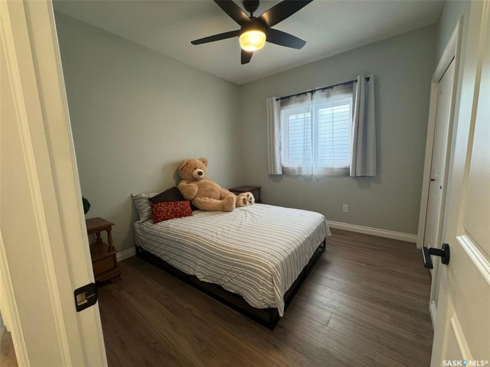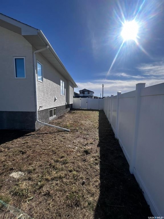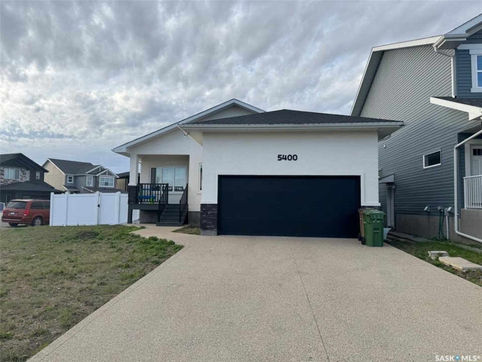 Welcome to 5400 E Boyer Bay! a beautifully maintained bungalow in the desirable Greens on Gardiner community. A front veranda adds warm curb appeal & welcomes you into a beautiful home where natural light fills each room. Built in 2022 with signature specs by Crawford Homes, this 1,337 sq ft home features a bright and functional open-concept layout with vaulted ceiling, perfect for modern living. The main floor showcases luxury vinyl plank flooring throughout and a seamless flow between the kitchen, dining, and living area with electric fireplace. The contemporary kitchen boasts sleek finishes, ample maple cabinetry, granite countertops, tile backsplash, and is natural gas–ready, offering flexibility for future stove upgrades. Stove, fridge and dishwasher can be operated with the help of wifi through app. Backyard can be accessed through kitchen and master bedroom. Three spacious bedrooms include a primary suite with a 4-piece ensuite and walk-in closet. Both the bathrooms have maple cabinets with granite countertops . The additional main bath is tastefully finished with vinyl flooring and modern fixtures. A double attached garage with direct entry provides ample parking and storage, with a natural gas line roughed-in for future heating upgrades, an exposed aggregate driveway, and a convenient side door for extra accessibility. Additionally CAT 5e network wiring throughout for modern connectivity. The basement is framed, insulated, and poly-ed, with rough-in plumbing and electrical in place—would not take much to complete with your own ideas. Fenced with a 12ft gate in the back that gives access to the back alley and opens to RV parking options. Situated on a 7,074 sq ft lot in a family-friendly neighborhood close to parks, walking paths, and schools, this home combines comfort, space, and an excellent location. A must-see!