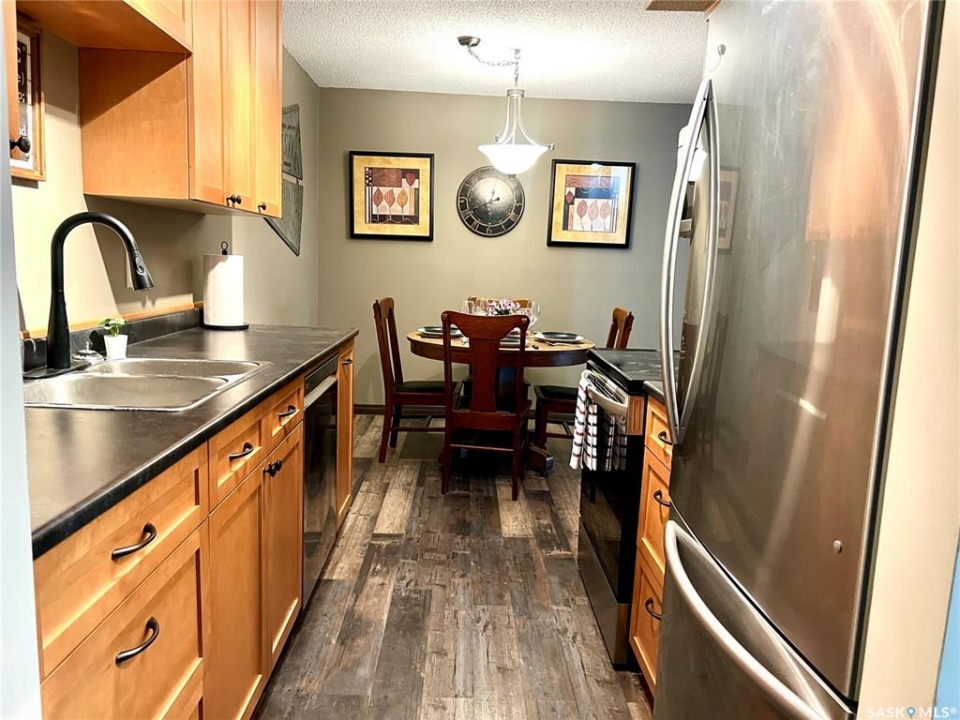 Beautifully updated condo is available for sale. This home has been well loved and offers a nice spacious feel. Featuring three bedrooms, in-suite laundry, updated bright white bathroom and large storage room. You will love the fresh vinyl plank flooring throughout the dining/kitchen, living room and hallway. An added bonus is a large balcony with additional storage right off the living room and through your patio doors. The kitchen has refreshed cabinets and a clean and modern look. If you are looking for a new space but do not want to be worried about yard work or snow shoveling this may be the place for you. Situated in a great location close to restaurants, aquatic center, and schools. Whether you are searching for your next home or a solid revenue property in a quiet area this one is worth taking a look.