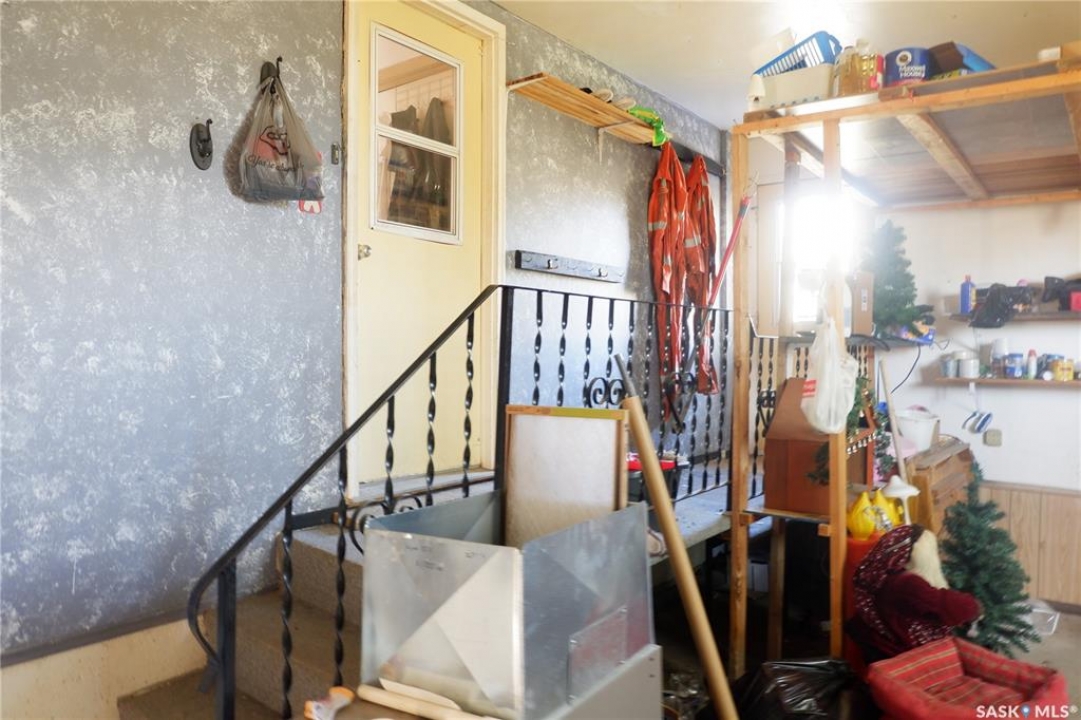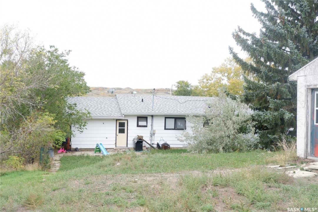 Located in the Town of Rockglen, this home is situated on the side of a hill. It features two bedrooms, a spacious living room, dining area, kitchen, and main floor laundry. The basement is developed and includes a family room, a three-piece bathroom, a den that was previously used as a bedroom, and additional storage space. There is a beautiful view of the hills from the front of the house. The property has a single attached garage for storage needs, along with an older garage located at the top of the hill.