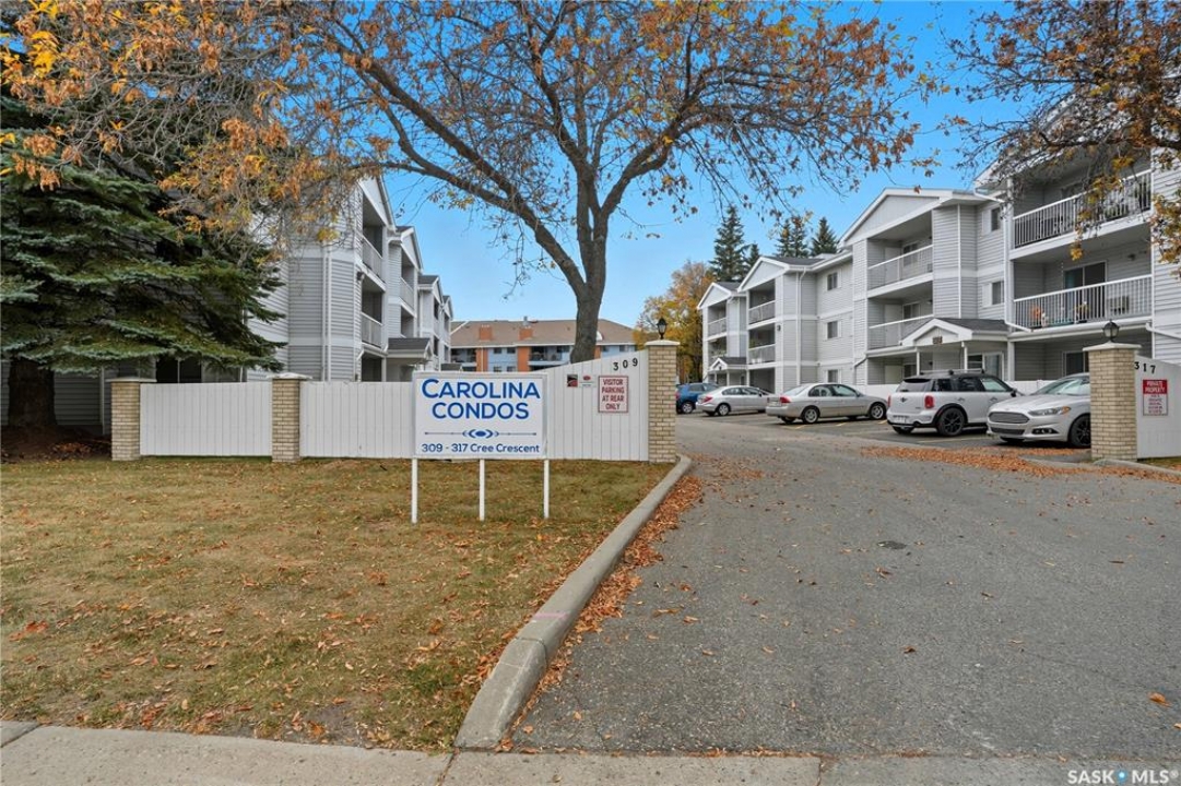 Great Condition 2-Bedroom Corner Unit on the Main Floor at 309B Cree Crescent! Enjoy the convenience of main-floor living in this excellent two-bedroom condo in Saskatoon's North End. With no stairs to climb, you get easy access—perfect for groceries, moving, and everyday life. The unit is in great condition and features updated flooring throughout. Its practical design seamlessly connects the kitchen and dining area to a comfortable living room. Step outside from the living room onto your patio space, which includes dedicated outside storage. The suite also boasts 2 good-sized bedrooms, a full bathroom, in-suite laundry (washer and dryer included) and comes with a convenient electrified parking stall. The location is ideal! You're within walking distance to Lawson Heights Mall, medical clinics, and restaurants, with all major transportation and shopping options nearby. This property offers fantastic value and is a must-see! Call today for your private showing.