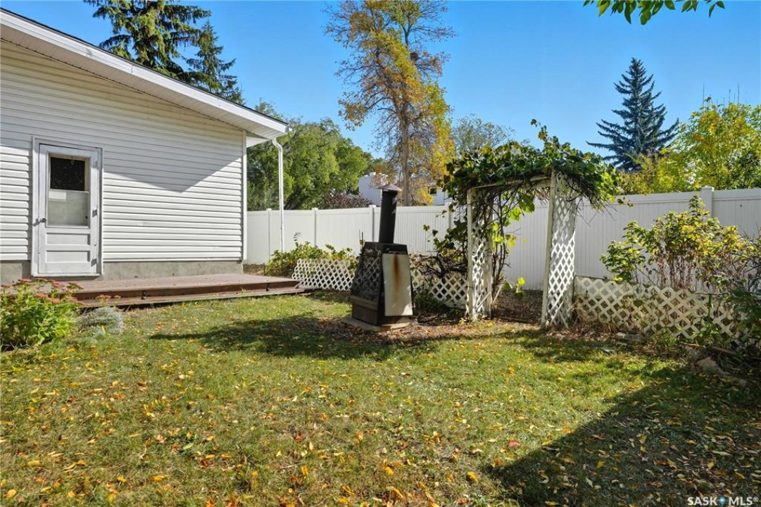 Excellent location in south Regina's Albert park neighbourhood. Over 1300 sq/ft bungalow features sharp street appeal with a combination front lawn and courtyard. Upgraded composite front step with aluminum railing. Loads of potential! Functional layout with a large entry with direct access to single attached garage. Living room features a wood burning fireplace with brick accents and patio doors to private and mature backyard. Kitchen and dining room combination with loads of natural light. 3 spacious bedrooms on the main floor with a 2 piece ensuite off the primary bedroom. Upgraded windows throughout. Basement is developed with a rec-room with bar area and second fireplace. Tons of storage plus a den space that was used as a guest bedroom (no window). Private backyard with raised garden beds, mature trees and shrubs and large deck. Close to all amenities of the south end.
