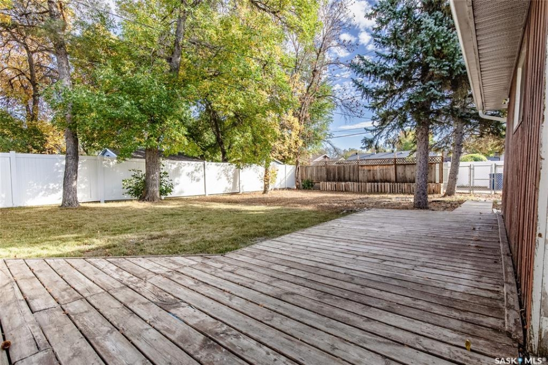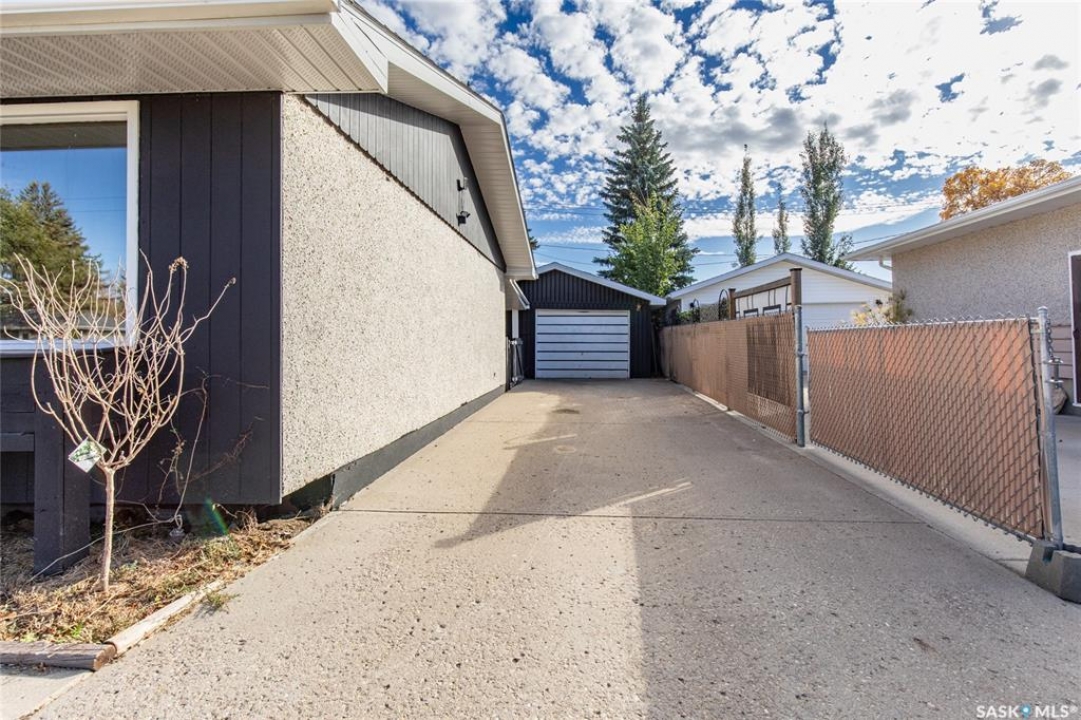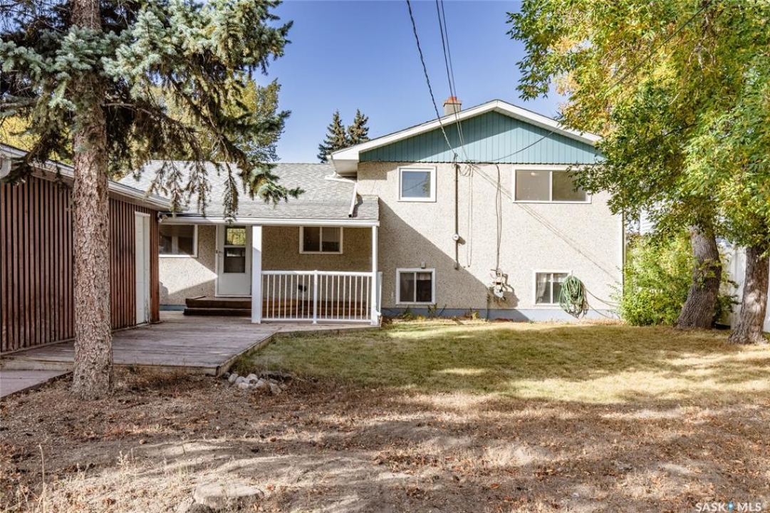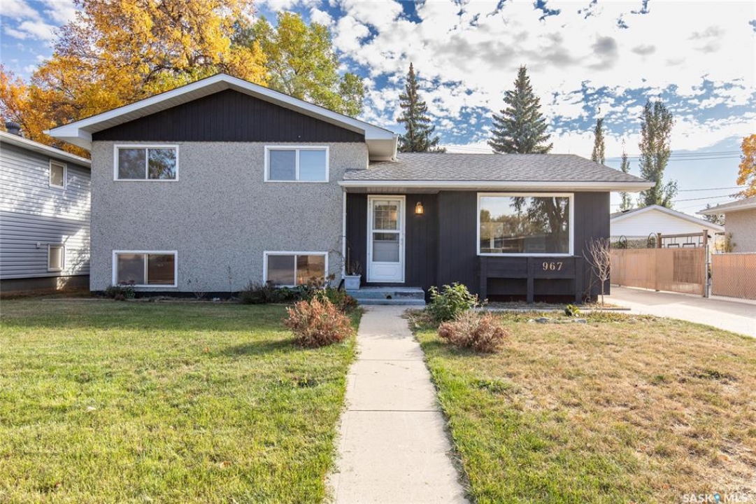 Welcome to this inviting 3-level split home in the highly desirable Palliser area, offering a thoughtful layout, modern updates, and excellent proximity to schools, recreation, and amenities. Step inside to find an eat-in kitchen that has been refreshed with brand new white cabinetry, new countertops, and new dishwasher and microwave hood fan. Also included are the side-by-side SS fridge/freezer, SS double oven, washer and dryer (all appliances included “as is”). Fresh paint on the main floor, paired with new vinyl plank flooring throughout the entire home, gives the interior a clean and modern feel. The spacious living room has a large picture window. Upstairs, you'll find three comfortable bedrooms (freshly painted) and a 4-pc bathroom with tiled tub surround, while the finished basement provides extra living area perfect for a family room, playroom, or office, plus plenty of additional storage. Central air conditioning ensures seasonal comfort. The property sits on a large, fully fenced lot with alley access and a swing gate wide enough for vehicle entry. A garden area is ready for your green thumb, and the south-facing covered deck is ideal for relaxing or entertaining in every season. Parking is never an issue with an oversized single-car garage, off-street parking, and RV parking. Location is a standout feature — this home is just minutes away from the Kinsmen Sportsplex, SASKPOLY Tech, skateboard park, ball diamonds, walking paths, churches, and elementary schools and a high school. This property truly blends practicality with lifestyle, offering move-in ready updates, flexible living spaces, and an unbeatable Palliser location. Some photos have been stagged.