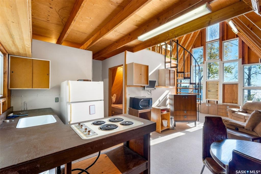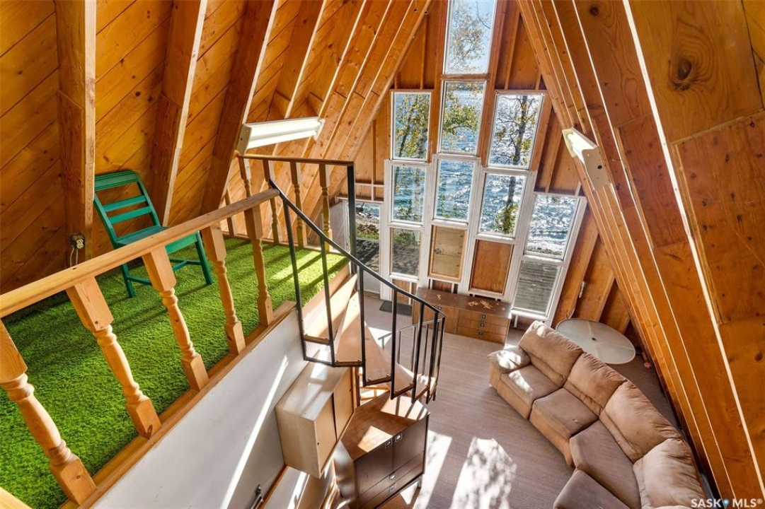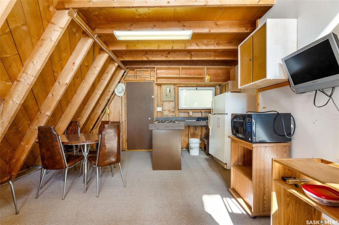 Have you been dreaming of a lakefront cabin and summer nights around the campfire but need something that won't break the bank? Lakefront Lot 5 at Lake Charron Regional Park might be exactly what you're looking for! This charming 600 sq. ft. lakefront cabin, built in 1984, features a unique A-frame design and a waterfront deck complete with a firepit area perfect for enjoying peaceful evenings with family and friends. Located just 13 km east of Naicam, SK, you'll be close to shopping amenities including a grocery store, meat shop, and the beautiful Naicam Golf Course, a welcoming 9-hole course ideal for the whole family. Lake Charron Regional Park offers a tranquil setting with plenty of amenities, including numerous campground sites, a large group pavilion, an upgraded shower and bathroom facility, and a playground for the kids. Inside the cabin, you'll find an open-concept layout with a spacious living room that flows into an eat-in dining area and functional kitchen. The main floor also features a large bedroom space and a designated area for a bathroom. Upstairs is a loft area with a couple extra beds, the perfect place for the kids to stay! While the cabin currently has no sewer or water services, a bathroom area is framed in and ready for future installation if desired. This is your opportunity to own an affordable lakefront getaway in a family-friendly park setting. Come take a look today!