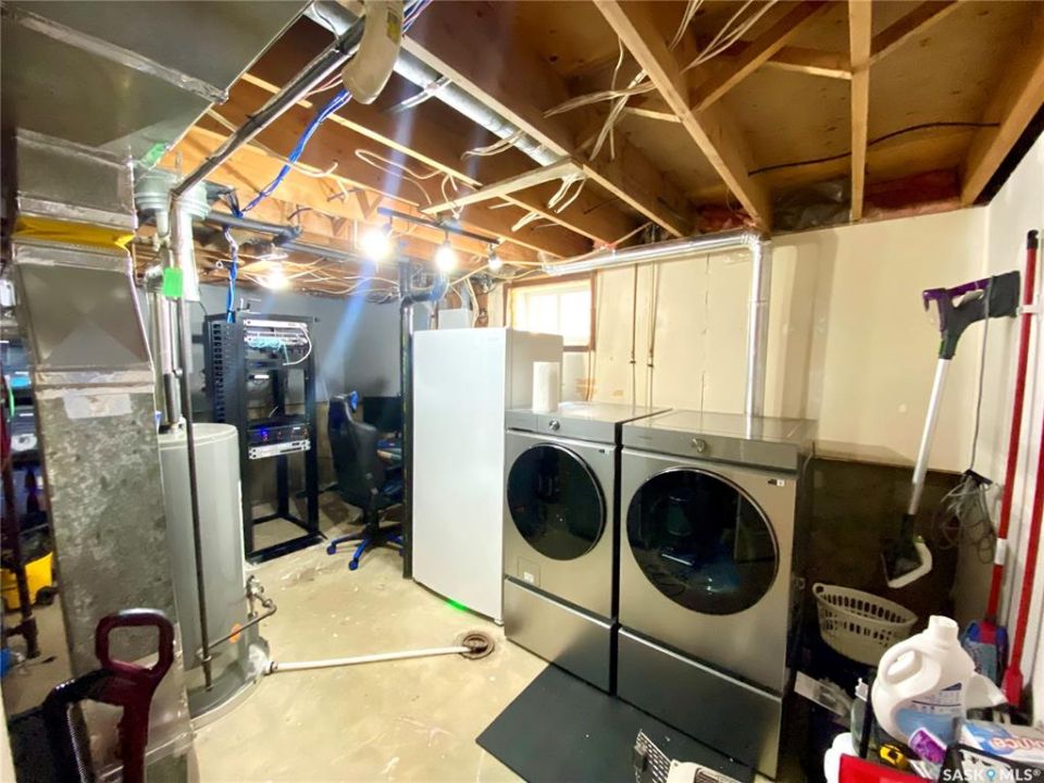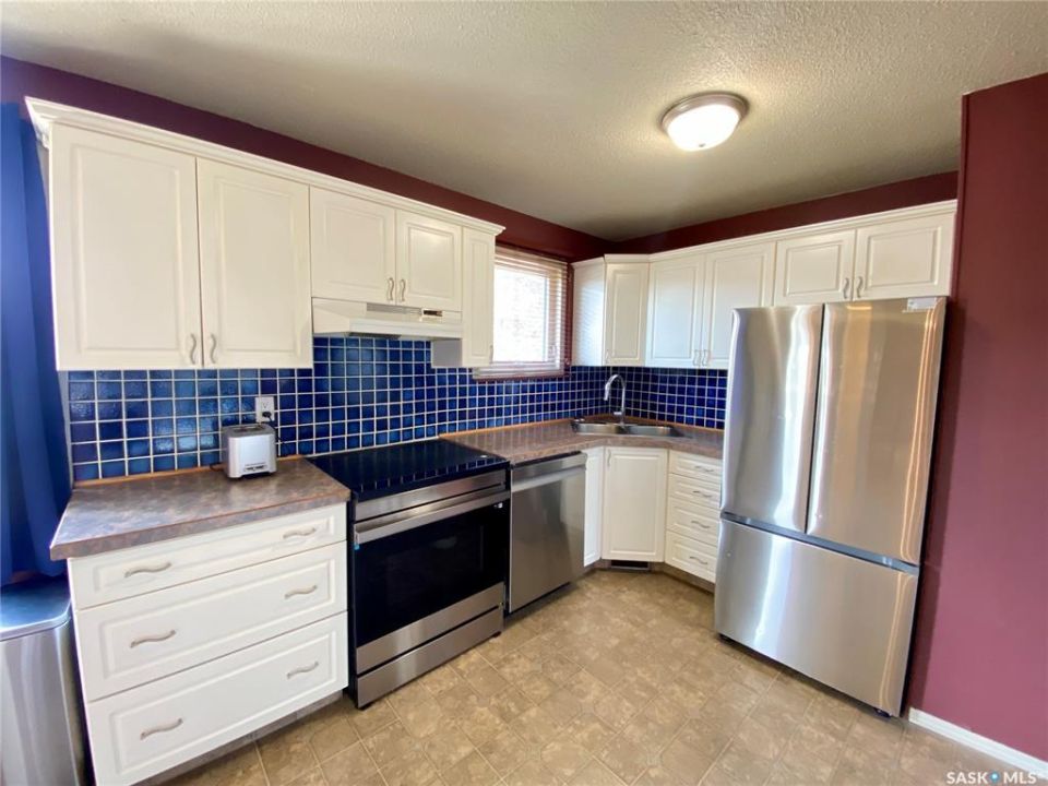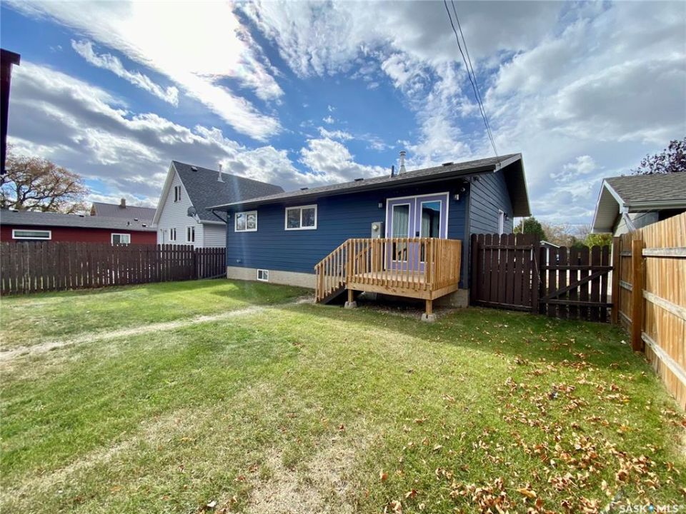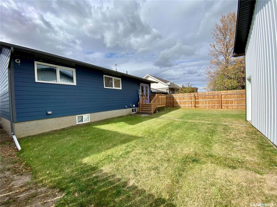 Step inside this 946 sq. ft. home that radiates personality, colour, and comfort in every corner. The open-concept kitchen and living room create a welcoming space filled with natural light, highlighted by a lovely bay window — perfect for your favorite plant babies. A former third bedroom on the main floor has been opened up to create a spacious dining area with patio doors leading to the backyard, but could easily be framed back into a bedroom if desired. Recent updates make this home move-in ready: new appliances, updated HVAC with new furnace, A/C, and air filtration system, hardy board siding, soffits, fascia, eaves, and some refreshed flooring. The vibrant paint tones throughout add warmth and personality. Downstairs, you'll find a cozy finished basement with a large rec room, third bedroom, and room to add another if you wish. The backyard is partially fenced and features a new deck built just last year — perfect for morning coffee or evening BBQs. And for the hobbyist or entrepreneur, the 24x24 heated shop is a dream come true — fully insulated, with 10' doors, 12' ceilings, its own power and gas heat, a floor drain, and plenty of light. Plus, an upgraded electrical panel, new wiring, and a modern security system (with cameras, recorders, gateway, and server rack) provide peace of mind and connectivity. Nestled in the friendly community of Bienfait, just minutes from Estevan, you'll love the small-town atmosphere, excellent K–12 school, local amenities, and the sense of pride and connection that comes from living in a place where neighbours still wave hello.