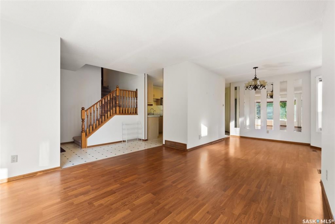 Welcome to 2938 Huget Place located in a quiet bay location in Gardiner Heights in the desirable east end. This 1673 sq ft 2 storey split has a Tudor style street appeal with a double attached garage and is nestled among mature trees. Upon entry the foyer leads to the large living room with a huge bay window flooding this area with light and it is open to the formal dining room. Next is the kitchen with stainless steel appliances and room for a casual eat in dining area with a garden door to the sunroom. Next, step down to the sunken family room with a fireplace. On this floor we have a 4th bedroom that could be an office, a bathroom with laundry and direct entry to the garage. Upstairs we have 3 bedrooms, the primary has a 3 piece ensuite and walk in closet and the other 2 bedrooms are a good size. The family bathroom completes this floor. Down to the basement we have a huge rec room with a "stage", a possible second kitchen with a sink, a den and lots of storage areas. Outside the yard is fully fenced and mature with a shed and garden area. Furnace and windows replaced. This is a perfect family home close to schools, parks and all essential amenities.