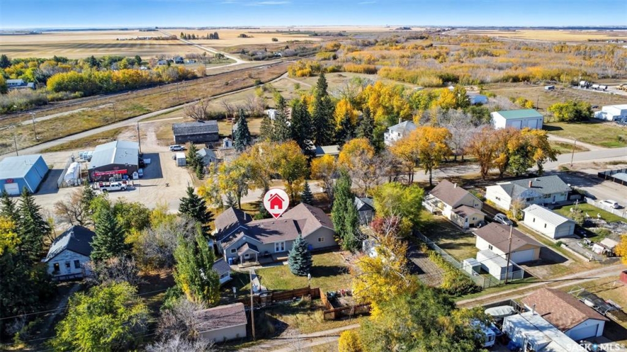 Enjoy quiet, small town living in this bungalow situated on a massive lot in Radisson! This spacious home offer over 1,500sqft with a bright and inviting living room, large oak kitchen and adjoining dining room. The primary bedroom has plenty of space for your furniture and includes a walk-in closet and 3 pc ensuite, as well as garden doors to the patio. Two additional bedrooms, a full bath and laundry complete the main floor. The basement has room for all your family's needs - whether that's play space, rec room or family room for movie nights - as well as lots of storage and a 2pc bath. The double attached garage is 24x36 with a built-in workshop at the end, and an additional detached 14x20 garage. Outside you'll love all the space this peaceful property provides, with an expansive deck, gazebo and garden area, and mature landscaping. Give your favourite realtor a call to set up your showing!