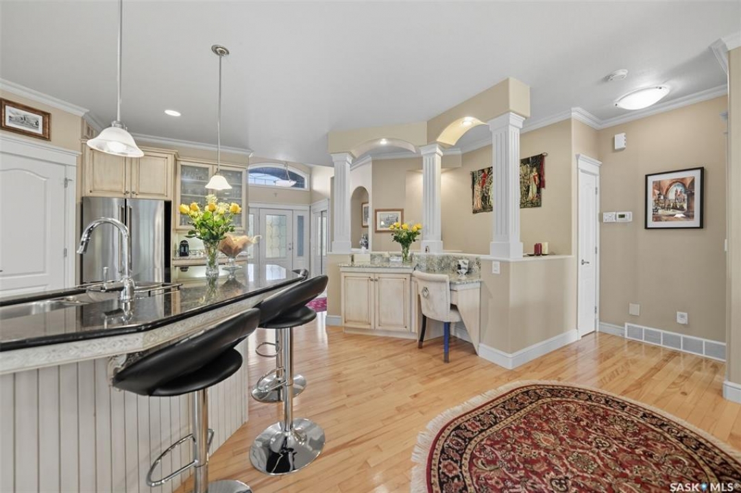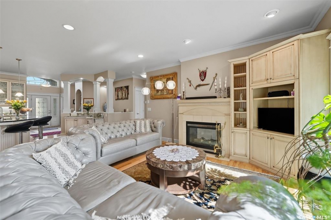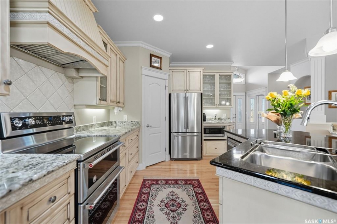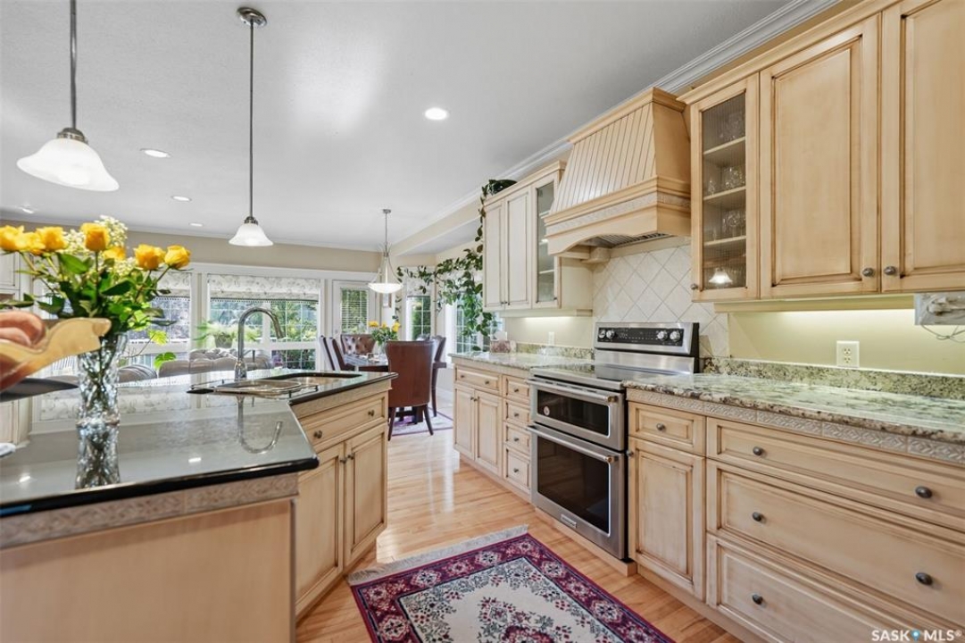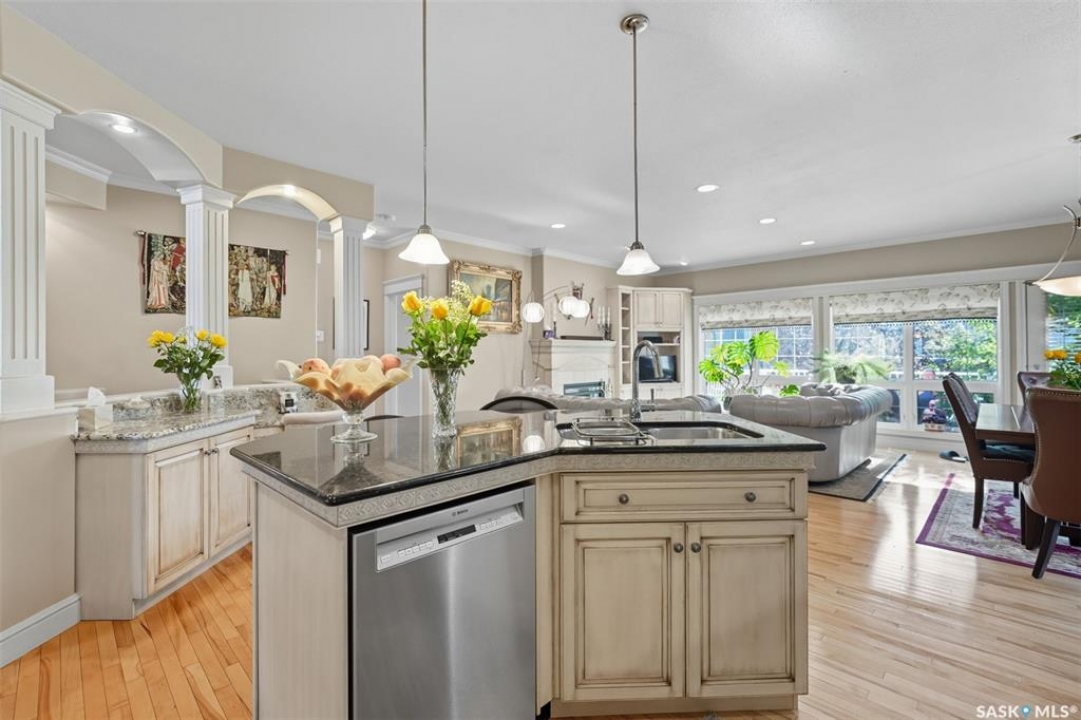 Open house Sat 1 - 3 PM. Welcome to 219 Brookhurst Crescent, a beautifully designed 1,551 sq. ft. bungalow perfectly situated in a premium Briarwood location with the front entrance facing onto Briarwood Park. Originally a Rocy show home, this property blends timeless craftsmanship with modern elegance, offering 4 bedrooms, 3 bathrooms a main floor den/office and a fully developed basement. Step inside to a bright and inviting main floor, featuring a spacious foyer, transom windows, and elegant crown moldings. The open-concept living and dining areas are filled with natural light from banks of large windows and showcase gleaming hardwood floors, inlaid ceramic tile, and a cozy double-sided gas fireplace that connects the living room with the luxurious primary suite.The gourmet kitchen is a chef's dream with an oversized granite island, stainless steel appliances, custom antiqued cabinetry, and a built-in tile border detail that highlights the craftsmanship throughout. A convenient home office nook and a versatile flex room with built-in cabinetry add to the thoughtful layout.The primary bedroom boasts a glorious 5-piece ensuite with a full bath with jacuzzi, double sinks, and separate shower, while a second bedroom and full bath complete the main floor. The lower level offers a spacious family room, two additional bedrooms (note: one without a closet), a full bath, and plenty of storage space.Outside, enjoy the landscaped yard with a deck, fenced backyard, mature trees, and underground sprinklers. The 21'6 x 22 insulated double garage and concrete driveway provide ample parking.-Upgrades over the years include ; Shingles approx 2015 - furnace, water heater , a/c , deck covering , granite countertops in kitchen and bathrooms, vented range hood and stainless steel appliances since 2017. Immaculate and stylish, this Briarwood bungalow truly shows 10/10.