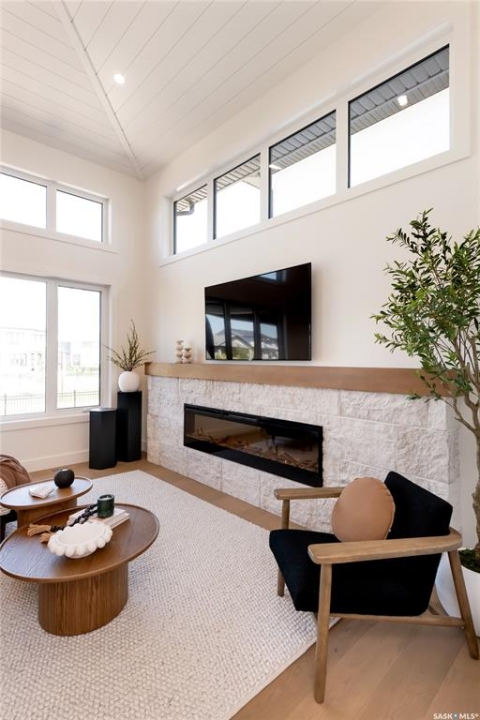 The "Fusion 25" is one of Pure Developments newest creations currently under construction is backing a park and will be ready for occupancy April 2026. This home is the same floorplan as their current showhome, with a few minor tweaks that Pure is known for to ensure each home is uniquely designed and finished. Pictures are of their current showhome and the design board renderings provide you with the finishings in this home. Features include a soaring vaulted ceiling in the living room with a large number of windoows, fireplace with accent wall and floating shelves, beautifully designed kitchen complete with a butler's pantry and custom cabinetry in the mudroom. The primary bedroom features a large walkin closet with ciustom shelving with cabinetry and a spectacular 5 piece ensuite.