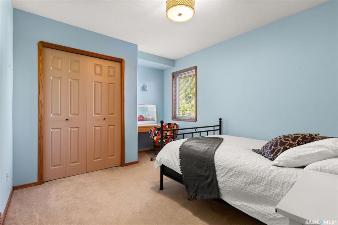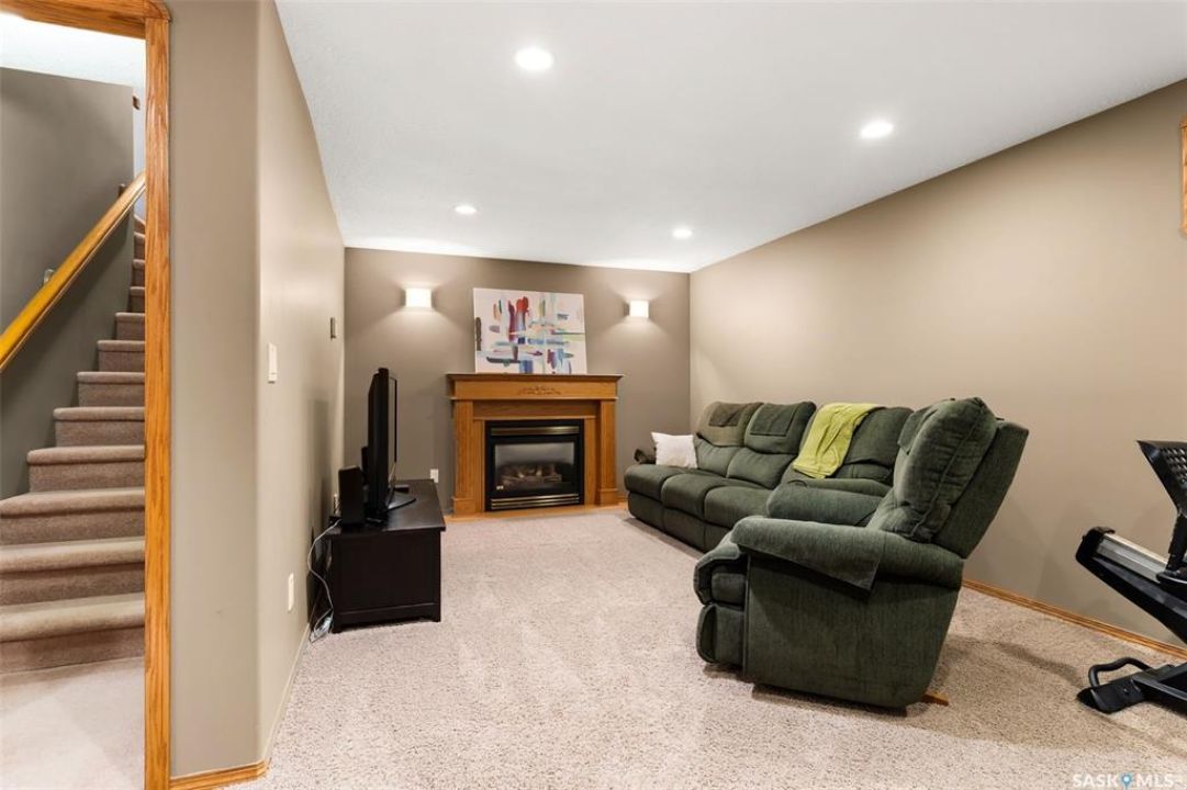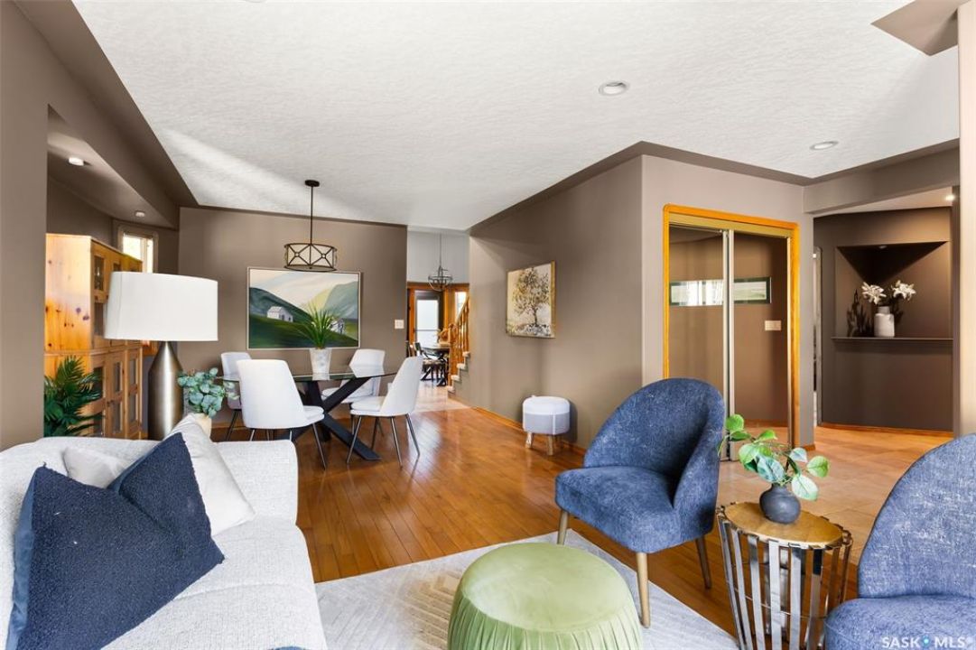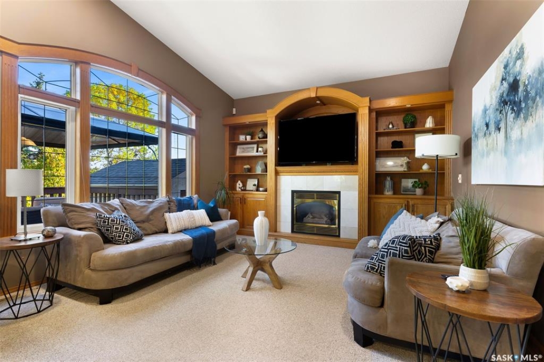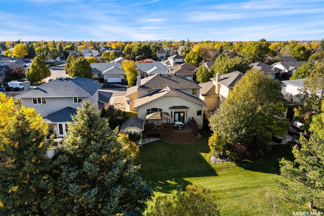 Welcome to 3023 Wimbledon Drive – A Rare Find in Windsor Park! Situated in one of Regina's most sought-after neighborhoods, this beautifully maintained family home backs onto green space and a walking path, offering privacy, tranquility, and convenience. Just steps from Jack Mackenzie and St. Gabriel Schools, as well as the Sandra Schmirler Leisure Centre, pool, library, and water park, the location is truly unbeatable! Step inside to discover over 2,100 sq. ft. of thoughtfully designed living space, featuring: a 24' x 24' fully finished double attached garage with radiant heat and floor drain – ideal for our Saskatchewan winters. A spacious front entry leading into a warm and inviting front living and formal dining room, complete with hardwood floors. A custom oak kitchen with centre island, walk-in pantry, under/over-cabinet lighting, ceramic tile flooring, corner sink, and direct access to the deck overlooking the park – perfect for entertaining or relaxing with family. Vaulted ceilings in the kitchen and adjoining family room, peaking at 14 feet for an airy, open feel. A convenient main floor office/den, 2 piece bathroom and laundry room with sink. Upstairs, you'll find: Three spacious bedrooms, including a primary suite with a large walk-in closet and luxurious ensuite featuring a corner shower and separate tub. A built-in desk in the second bedroom – perfect for students or a home office setup. The fully finished basement offers exceptional bonus space with a rec room featuring a gas fireplace, wet bar, games area, additional bedroom, full bathroom, and your very own sauna! Recent upgrades include: New front and back doors (2019), Shingles (2020), Two furnaces (2021), Central air conditioning (2021). This home is an absolute gem – perfect for families, entertainers, and anyone looking for a great home in a prime location.