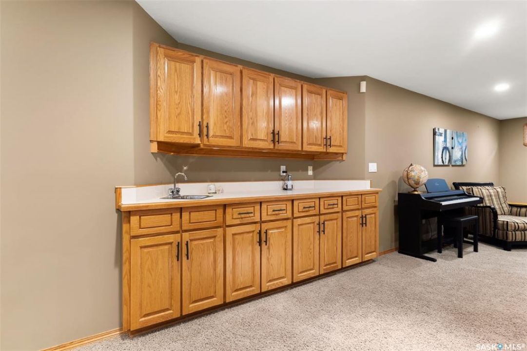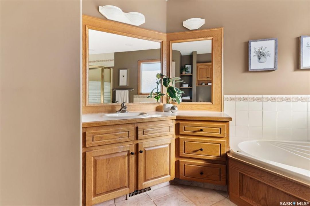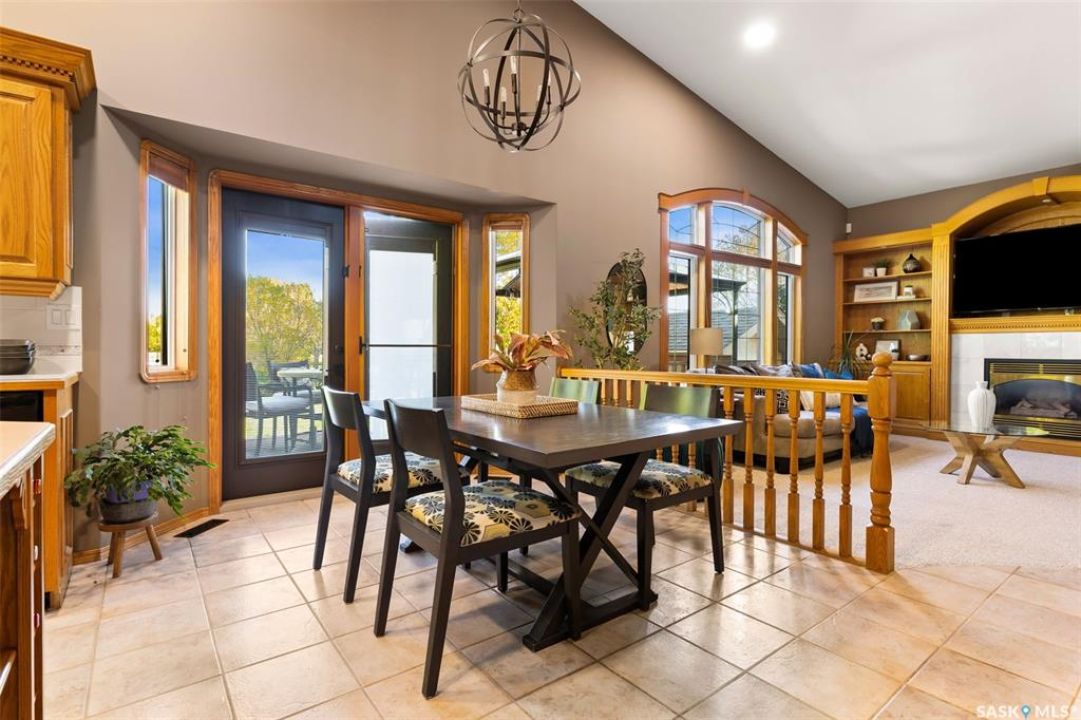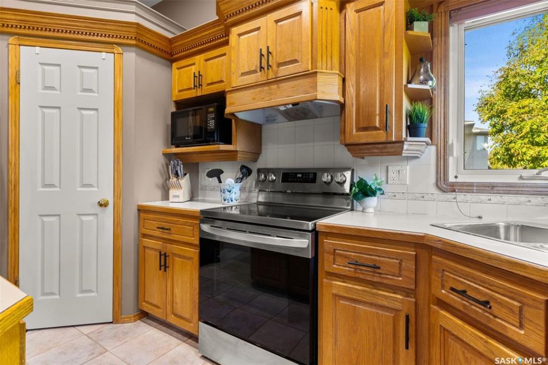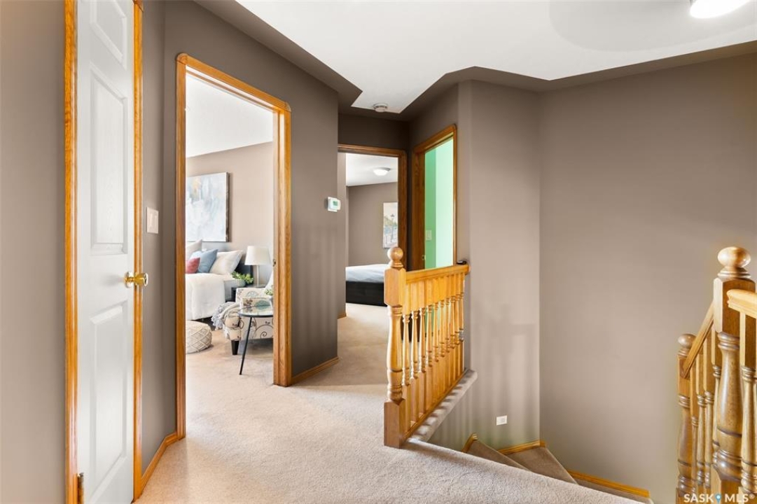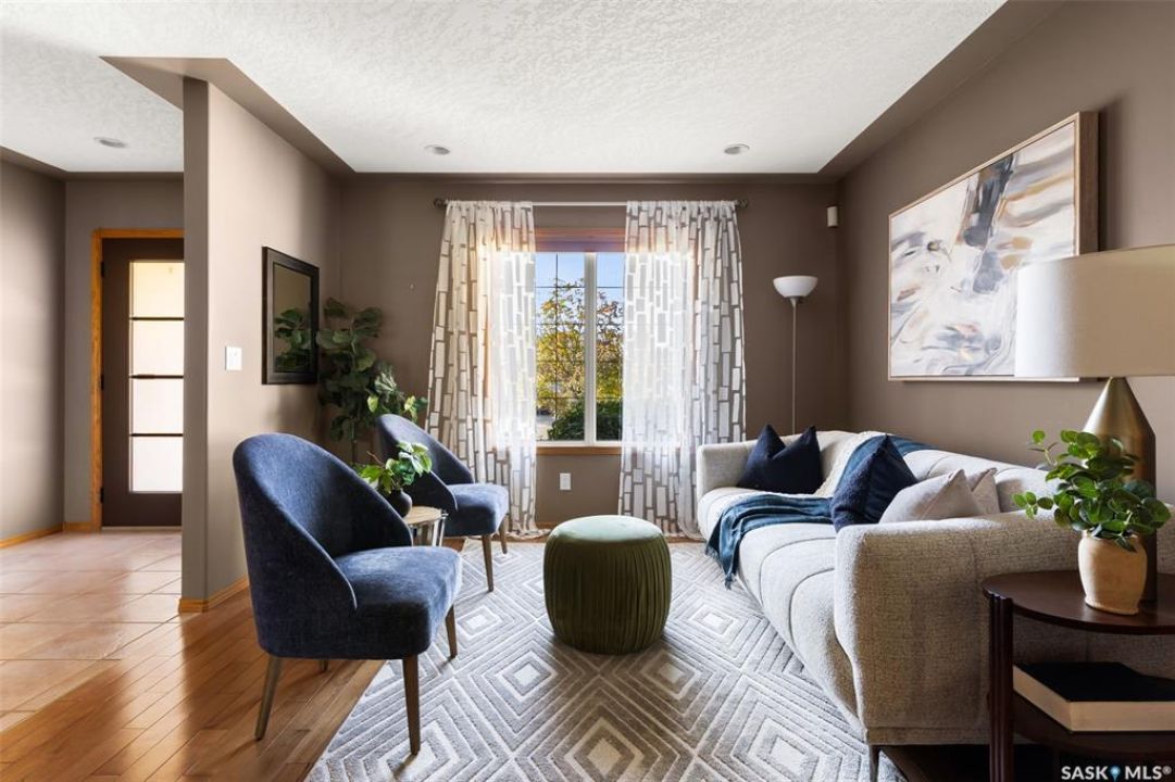 Welcome to 3023 Wimbledon Drive – A Rare Find in Windsor Park! Situated in one of Regina's most sought-after neighborhoods, this beautifully maintained family home backs onto green space and a walking path, offering privacy, tranquility, and convenience. Just steps from Jack Mackenzie and St. Gabriel Schools, as well as the Sandra Schmirler Leisure Centre, pool, library, and water park, the location is truly unbeatable! Step inside to discover over 2,100 sq. ft. of thoughtfully designed living space, featuring: a 24' x 24' fully finished double attached garage with radiant heat and floor drain – ideal for our Saskatchewan winters. A spacious front entry leading into a warm and inviting front living and formal dining room, complete with hardwood floors. A custom oak kitchen with centre island, walk-in pantry, under/over-cabinet lighting, ceramic tile flooring, corner sink, and direct access to the deck overlooking the park – perfect for entertaining or relaxing with family. Vaulted ceilings in the kitchen and adjoining family room, peaking at 14 feet for an airy, open feel. A convenient main floor office/den, 2 piece bathroom and laundry room with sink. Upstairs, you'll find: Three spacious bedrooms, including a primary suite with a large walk-in closet and luxurious ensuite featuring a corner shower and separate tub. A built-in desk in the second bedroom – perfect for students or a home office setup. The fully finished basement offers exceptional bonus space with a rec room featuring a gas fireplace, wet bar, games area, additional bedroom, full bathroom, and your very own sauna! Recent upgrades include: New front and back doors (2019), Shingles (2020), Two furnaces (2021), Central air conditioning (2021). This home is an absolute gem – perfect for families, entertainers, and anyone looking for a great home in a prime location.