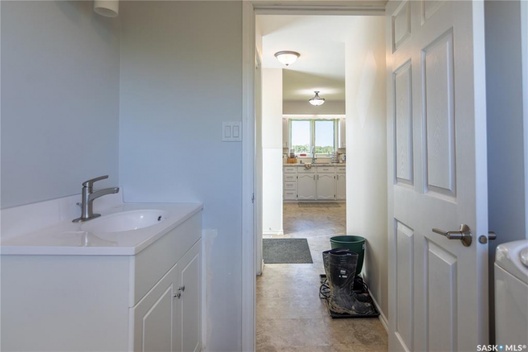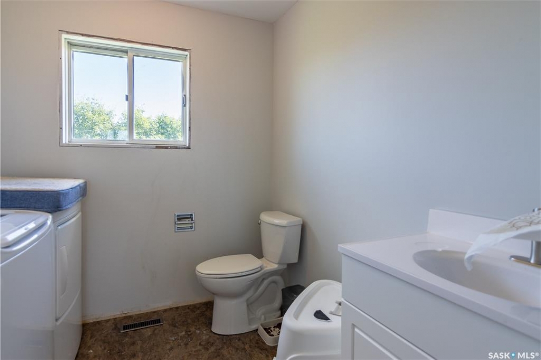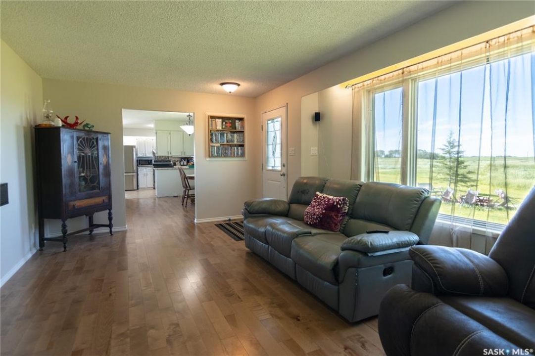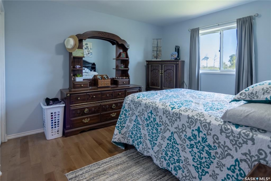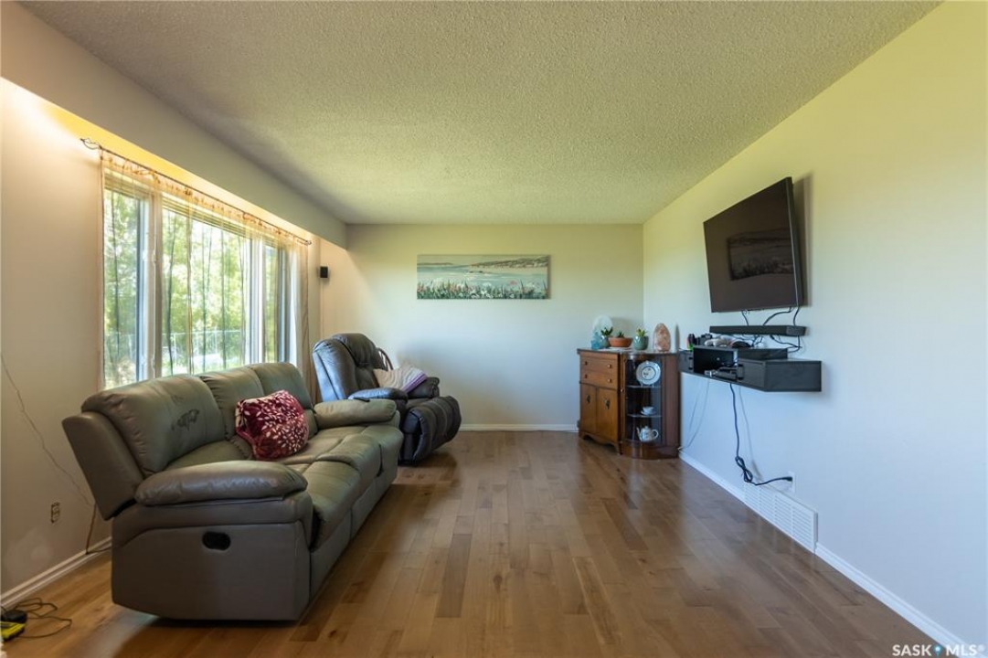DON'T OVERLOOK THIS ACREAGE JUST MINUTES FROM ESTERHAZY - LOW TAXES -WITH THE PRIVACY YOU NEED! A 19.95 acre parcel completely renovated & updates galore!A short distance from town makes this Acreage a prime candidate when searching for a private & secure acreage. Surrounded with trees and shrubs & natural water ponds,this parcel is a rarity.With 1283 sq ft, this open concept floor plan features an attached side deck with built in barbecue with side countertops for ease of outdoor cooking.The entire house has been updated & renovated providing you with a modern,move-in ready place to call home at one great price!The main foyer offers a roomy space with convenient 2 pc bath with laundry. 3 spacious bdrms on main with the master measuring 11x14.Total number of bathrooms on main is 1-4 pc bath with 1-2 pc bath with laundry. Kitchen has plenty of upper & lower cabinetry with above cabinet lighting & lots of counter space. Adjacent dining area features a large picture window for that quiet & relaxing country view.Vinyl tile flooring in entrance, kitchen,dining,livingroom,hallway & all bedrooms feature hardwood flooring.Basement has been completely renovated with a rec room including pool table & mini kitchen-perfect if you are thinking of renting out the basement. It is complete with a 4pc bath & 2 bdrms with loads of storage space. Utility room complete with EF furnace(8yrs); water heater 2014; new pressure system with water regulator. The utility room has a recent upgrade of a storage/pantry room. Exterior features hardy plank siding, PVC windows throughout, shingles (12 yrs), new eaves, soffits, fascia.The yard is so peaceful. You will enjoy relaxing around the firepit. 3 storage sheds are included. A Wildlife sanctuary best describes this acreage and with the abundance of trees it is sure to tug at your heart. Let this acreage give you that peaceful escape you are looking for only minutes from Esterhazy, close to the local potash mines & cross country ski trails.