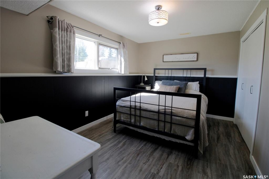 Welcome to this beautifully renovated 1,232 sq. ft. raised bungalow, nestled on a quiet cul-de-sac with convenient back alley access and parking for up to six vehicles. Built in 1978 and modernly updated throughout, this home offers three spacious bedrooms and three full bathrooms, with all interior renovations completed within the last five years—excluding the laundry room floor. The bright and open layout features large windows that flood the living areas with natural light, creating a warm and welcoming atmosphere. The kitchen boasts floating shelves that will remain with the home, along with two custom blinds, while the living room includes one additional blind. A custom corner office desk in the basement also stays, making it ideal for working from home. Comfort and efficiency are top priority in this home, with a new water heater installed in 2022, central A/C, and a well-maintained furnace from 2008. The ducts were professionally cleaned in 2024, ensuring fresh and clean airflow throughout. Major exterior upgrades were completed in 2023, including brand-new siding and shingles. The fully fenced backyard offers privacy and space to relax or entertain, with the added convenience of in-ground sprinklers to keep the lawn lush with ease. One garage remote is included. Whether you're looking for a move-in-ready family home or a stylish space in a peaceful neighborhood, this stunning bungalow has it all—modern updates, thoughtful features, and unbeatable curb appeal. Don't miss your opportunity to make it yours!