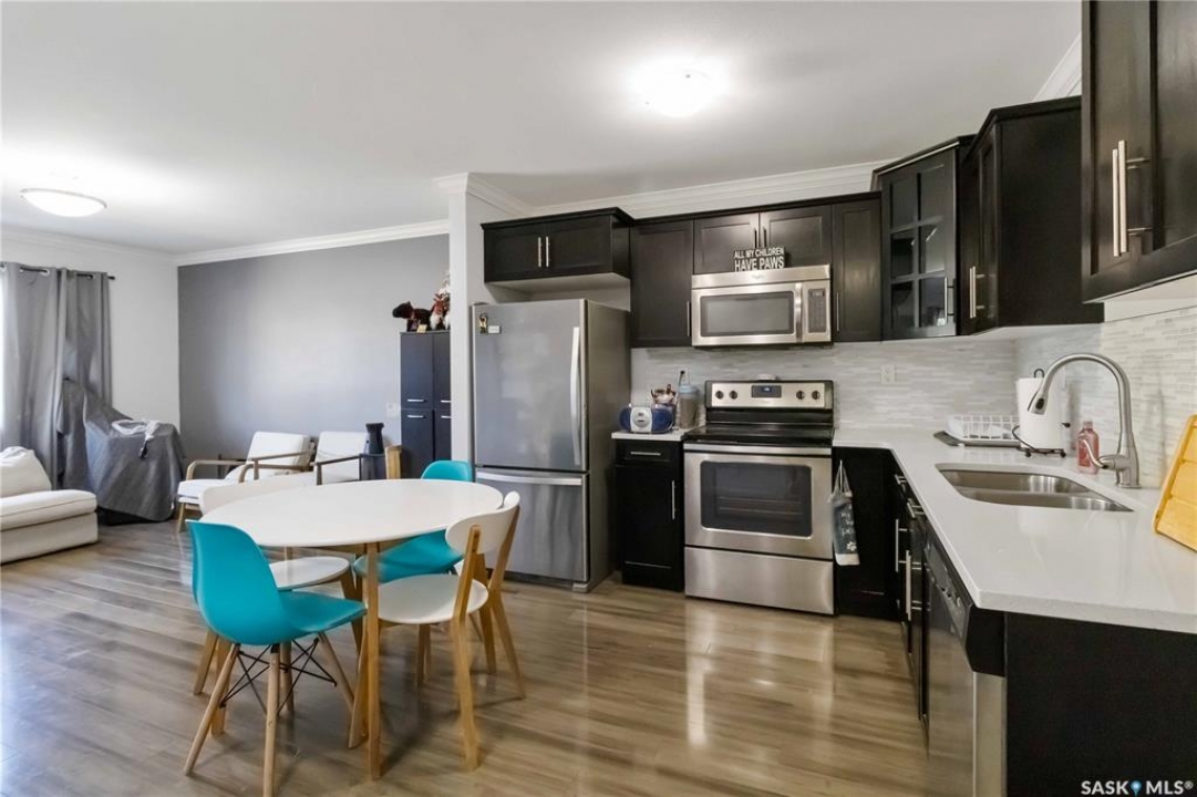 Welcome to this 2-bedroom, 1-bath condo townhouse located in the Evergreen neighbourhood of Saskatoon! Whether you're a first-time buyer, downsizing, or investing, this stylish and low-maintenance home offers unbeatable value in one of the city's most desirable areas. Step inside to discover an open-concept living space , a functional kitchen with sleek cabinetry , and two spacious bedrooms . The full 4-piece bathroom , and in-suite laundry makes life that much easier. E Tucked into a well-managed complex with lower condo fees, this home includes dedicated parking spaces and off street parking spaces. Situated in Evergreen — a vibrant and growing community — you'll love being just minutes from top-rated schools, beautiful parks, kilometers of scenic walking trails, and the popular Evergreen Village Square. With close access to grocery stores, amenities, and transit routes, it's easy to see why Evergreen is one of Saskatoon's favourite places to call home. Looking move-in-ready home in an amazing neighbourhood? This could be the one. Book your showing today!