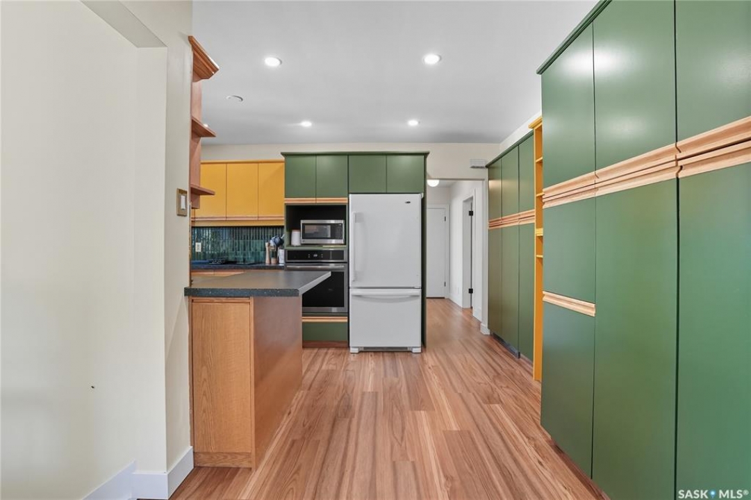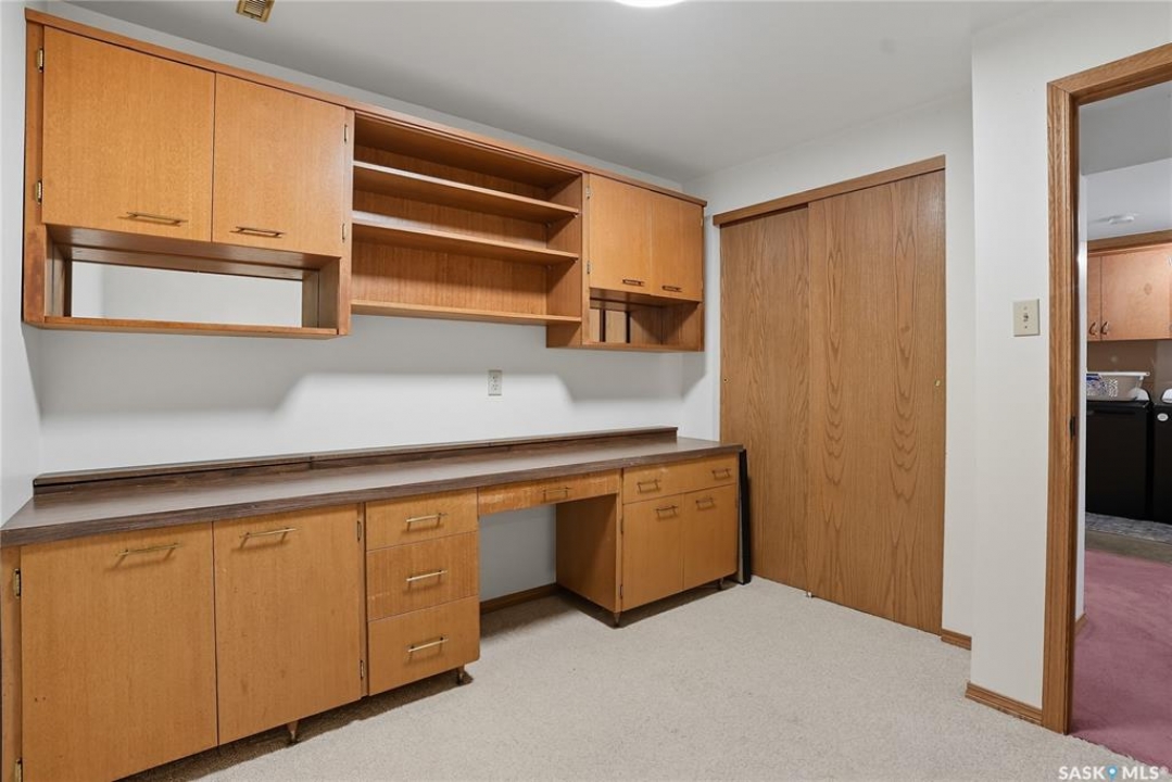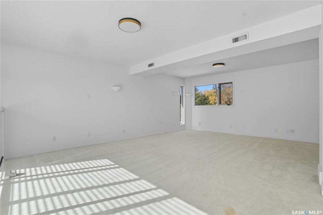 Welcome to 433 Elm Street, a 1,772 sq ft two storey home in the heart of Queen Elizabeth. Built in 1955 and thoughtfully updated, this 4 bedroom, 2 bathroom property combines classic charm with modern comfort. The main floor features bright vinyl plank flooring across the living room, dining area, and kitchen. The kitchen offers generous workspace and storage, and the 5 piece main bath adds a clean, contemporary touch. Two bedrooms on the main level provide flexibility for guests, family, or office use. The upper level is an open living area with incredible natural light and ample space for a studio, home office, or relaxing family room. The full basement includes a large family room, an additional bedroom, a 3 piece bath, a den, and a laundry area. Notable upgrades include new eaves on the house and garage, new basement windows, an upgraded electrical panel and service entry, new washer, dryer, furnace, and water heater in 2024, as well as new shingles on the lower portion of the home in 2025. Additional highlights include two gas fireplaces, central air conditioning, underground sprinklers, and a private fenced yard with mature trees. The triple detached garage features one partitioned stall that is partially heated and insulated, along with a single front drive and total parking for four vehicles. Set on a 55 by 110 foot lot, this property offers a perfect mix of space, updates, and location within one of Saskatoon's most established neighbourhoods.