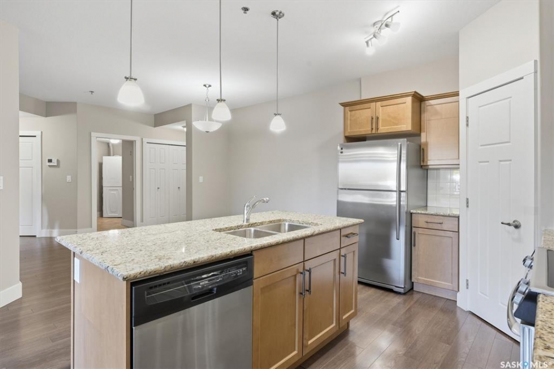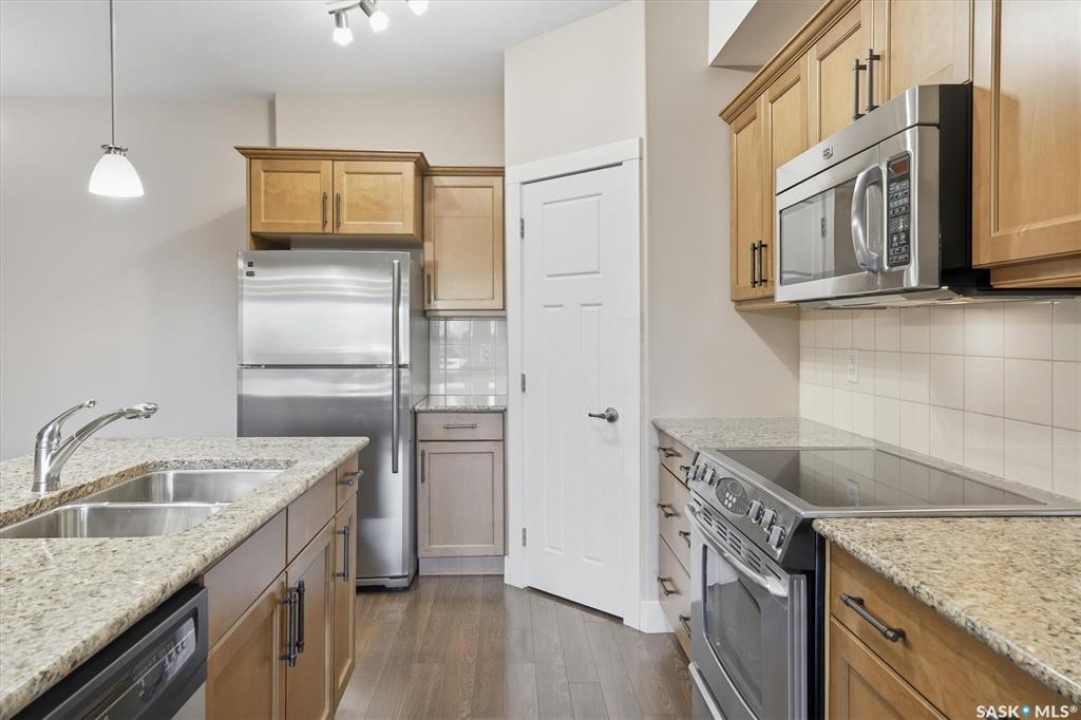 Welcome to Churchill Gardens — a highly sought-after condo community where every day feels like a retreat. Residents enjoy an impressive list of amenities, including an exercise room, hot tub, craft room, pool tables, recreation room, fully equipped kitchen, and plenty of inviting spaces for social gatherings. This spacious 2-bedroom, 2-bathroom home features a generous dining area ideal for entertaining family and friends. The maple kitchen is beautifully appointed with granite countertops and abundant cabinetry, while the cozy living room is centered around a warm natural gas fireplace. The primary suite offers a walk-through closet and an ensuite with double sinks and a large shower. The second bedroom is perfect for guests or a home office and is conveniently located next to the main 4-piece bathroom. Additional highlights include an underground parking stall, a private storage unit, and access to guest suites, a car wash bay, workshop and a beautifully landscaped courtyard complete with a gas fire pit, BBQ, and pergola—perfect for outdoor entertaining and relaxing evenings. Don't wait—contact me today to book your private viewing!