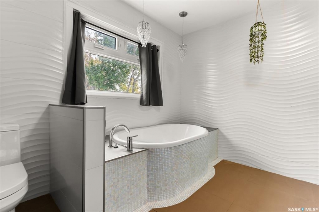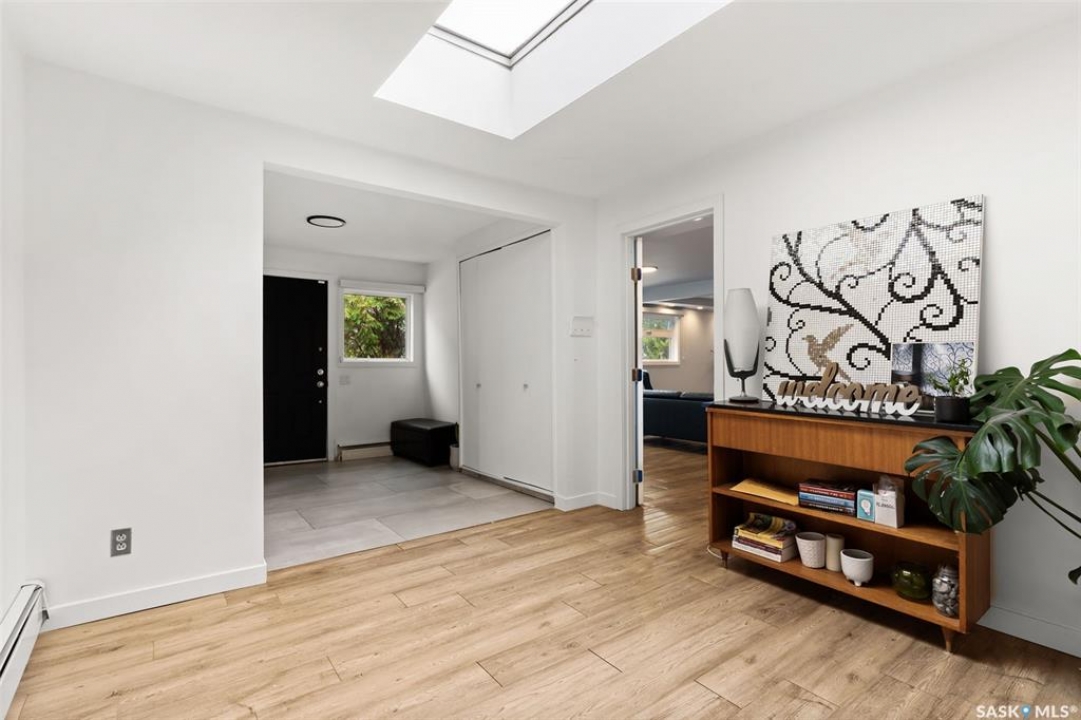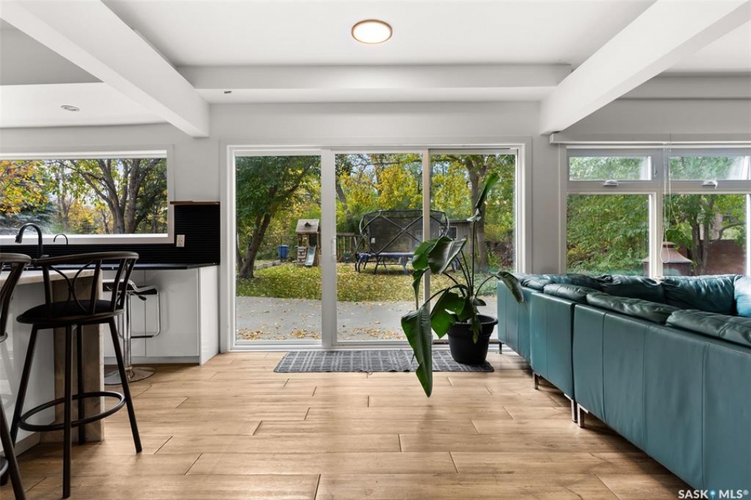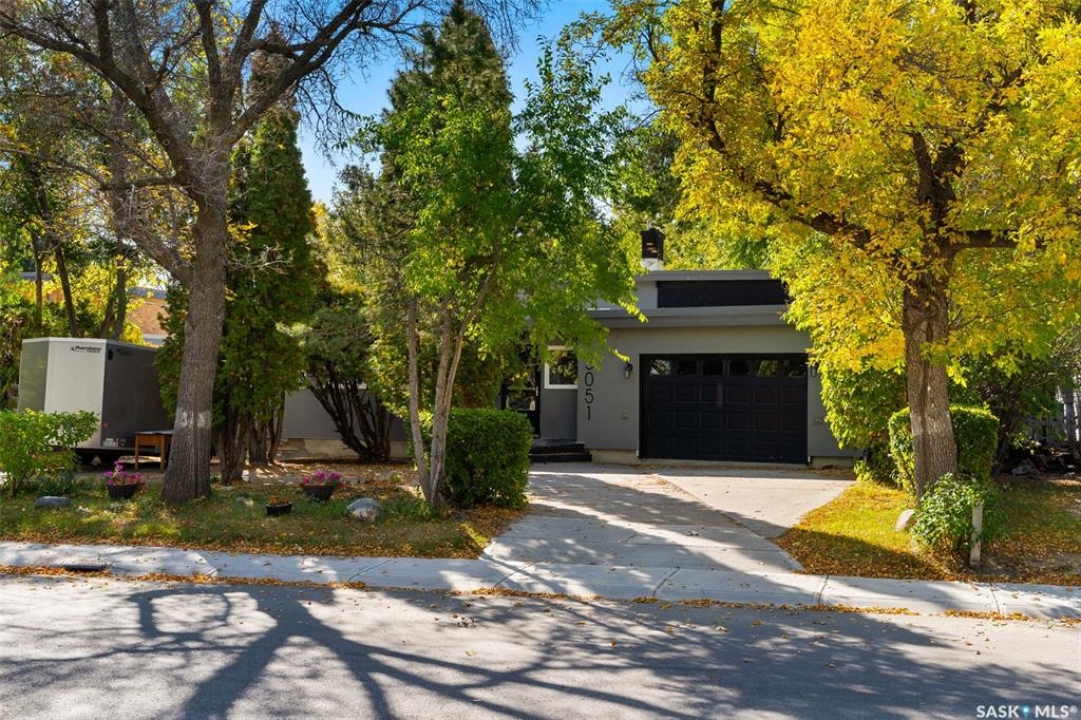 Welcome to 3051 Quinn Drive, a beautifully updated mid-century modern home in Regina's desirable Arnhem Place neighbourhood. This rare property is steps away from the lush green spaces of Wascana Park, offering unmatched access to walking trails, playgrounds, and the lake just steps from your door. This split-level home boasts over 2,500 sq. ft. of living space with an open-concept design, exposed beams, and oversized windows that fill the home with natural light. The stylish kitchen features quartz countertops, modern cabinetry, stainless steel appliances, a gas range, and a large island with seating. Multiple living areas, including a sun-filled living room and lower-level family/media room, provide flexibility for both relaxation and entertaining. The home offers 3 bedrooms and 3 bathrooms, including a spacious primary suite and updated spa-like bathrooms. A sauna, versatile recreation spaces, and contemporary finishes enhance everyday comfort. Outdoors, the private backyard is a true retreat with mature trees, a large patio, raised garden beds, and room for kids to play. The property also includes a double attached garage and additional driveway parking. Located in one of Regina's most sought-after areas, you'll enjoy the perfect balance of nature and convenience, with schools, downtown, and amenities all nearby. Don't miss this opportunity to own a one-of-a-kind home in an incredible park-side location!