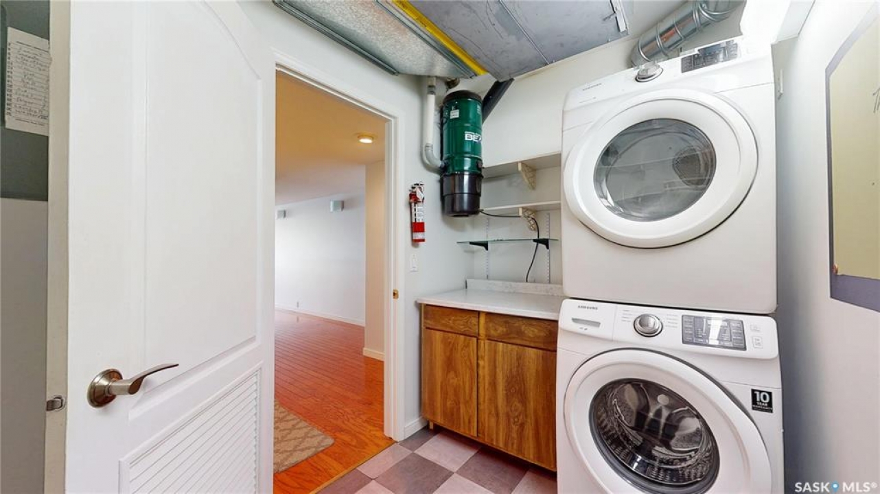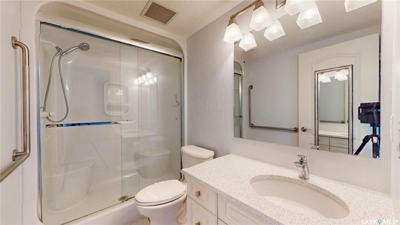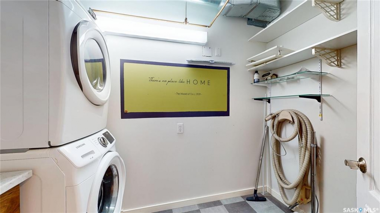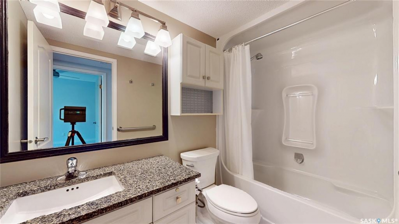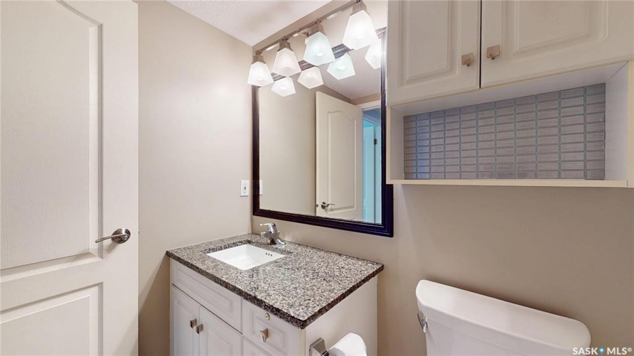 Experience the perfect blend of location and lifestyle in this sun-filled corner condo at prestigious College Gardens. Set directly across from Wascana Park, this concrete-core residence provides exceptional privacy, soundproofing, and peace of mind, with convenient access to downtown, the University of Regina, the airport and the natural beauty of Regina's most cherished park. This desirable corner unit features a wrap-around deck with north and east exposures—ideal for enjoying morning light. Inside, a spacious foyer welcomes you into a beautifully updated kitchen showcasing crisp white cabinetry, quartz countertops, a built-in oven, smooth cooktop, double sink, and coordinating white appliances. The open-concept living and dining areas are bright and inviting, framed by expansive windows that fill the home with natural light. The primary suite offers a private three-piece ensuite and a generous walk-in closet, while the second bedroom is conveniently located across from the four-piece main bathroom. Just off the dining area, a versatile room serves perfectly as a home office, craft space, or additional guest room—offering flexibility to suit your lifestyle. The in-suite laundry room, with storage, adds everyday practicality. Completing this exceptional home is plenty of visitor parking on the north side of the building and a heated underground parking space with a large private storage room—ideal for a small workspace or extra storage needs. With its solid construction, prime location, and timeless design, this impressive condo offers the rare opportunity to live in comfort and style just steps from Wascana Park. Enjoy the convenience of nearby downtown amenities, scenic walking paths, and all from the peaceful setting of College Gardens. A rare opportunity not to be missed—book your private showing today.