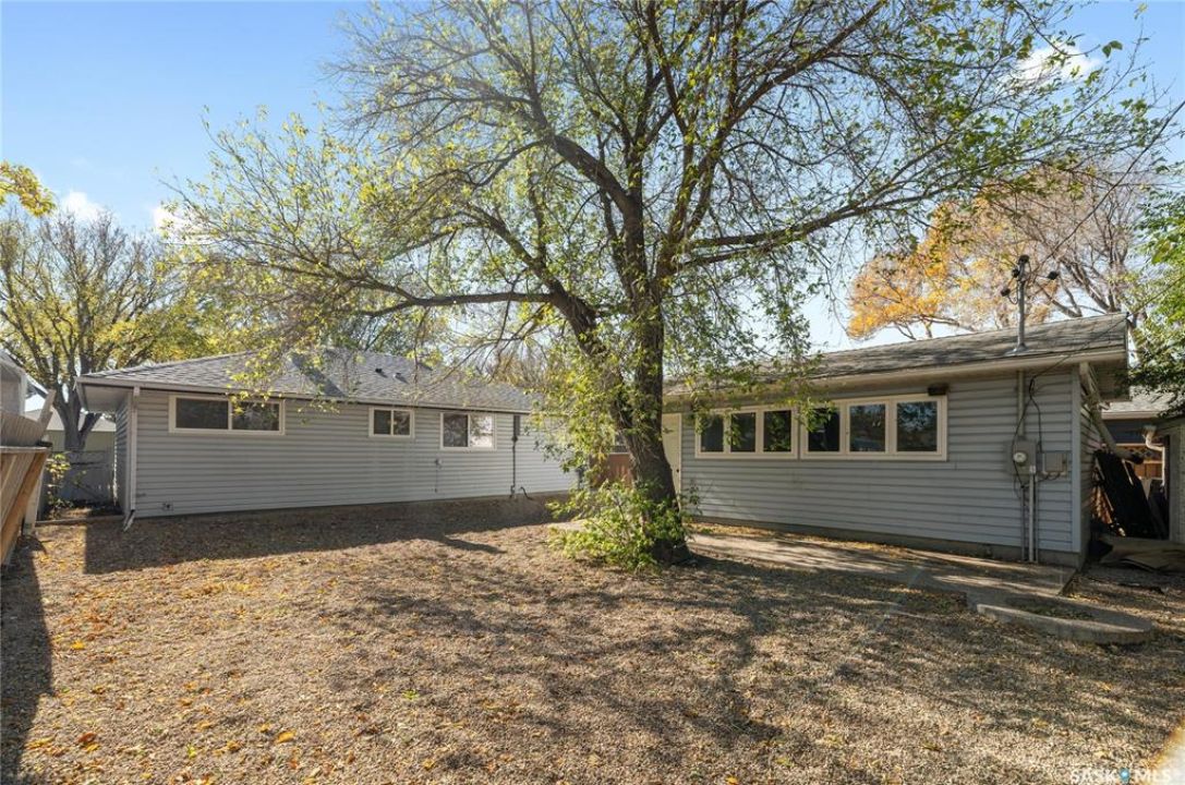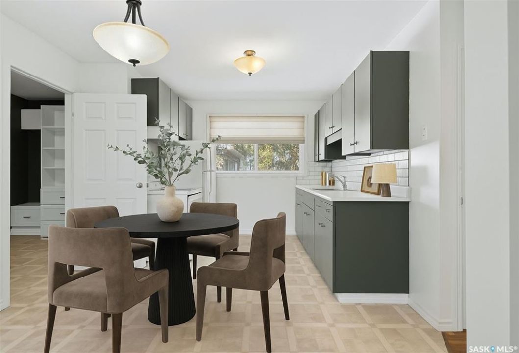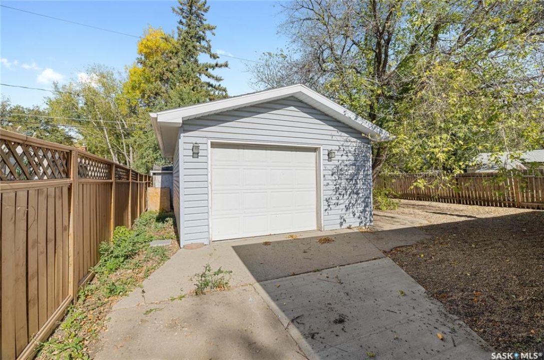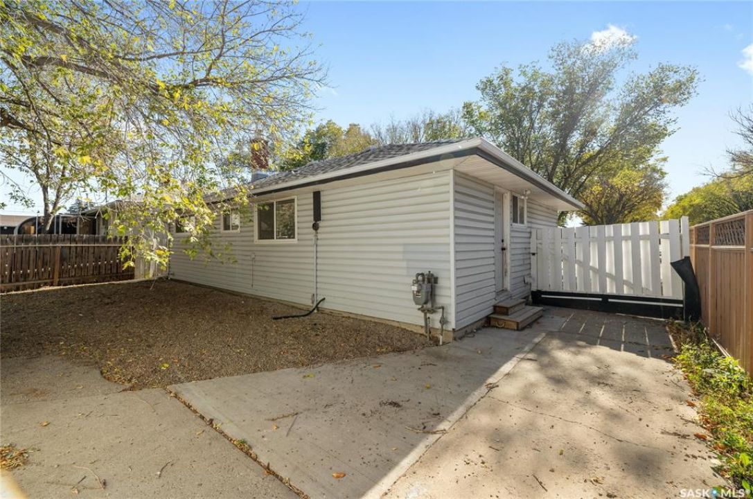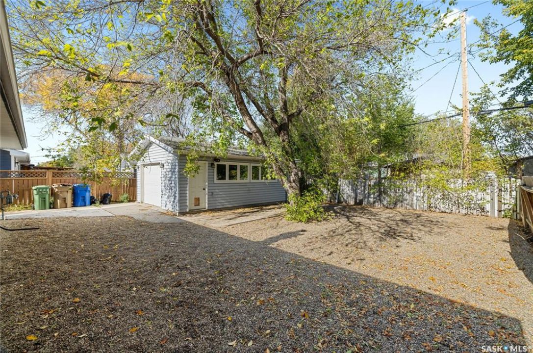 Perfectly positioned between north-end convenience and east-end energy (just a 10-minute drive!), this charming and affordable bungalow offers the best of both worlds. Built in 1962, this recently updated 3-bedroom, 1-bathroom home features just under 1,000 sq. ft. of comfortable living space. Ideal for first-time home buyers, investors, or empty nesters looking to downsize. Inside, you'll find a thoughtfully designed layout with everything you need on one level. The modern, yet traditional galley kitchen features rich but muted dark olive cabinetry, crisp white subway tile, and a classic palette of soft grey walls that continues throughout the home. Neutral laminate and linoleum flooring provide a timeless home - the perfect canvas to make this space your own. The open-concept living room, dining nook, and kitchen flow seamlessly together, creating a sense of connection while still offering distinct, functional spaces. Down the hall, three well-sized bedrooms each include custom closet systems, and a beautifully updated four-piece bathroom catches your eye with its colour drenched dark olive walls. Adjacent to the kitchen, a moody dark-gray mudroom adds character and convenience, complete with main floor laundry, ample storage, and a side door providing quick access to the backyard. Outside, enjoy a fenced, xeriscaped yard designed for low maintenance, with an exposed aggregate patio and mature trees providing natural shade and privacy. A rolling gate leads to the oversized 16' x 24' detached garage - insulated, heated, and equipped with two 220V outlets - perfect for hobbies, storage, or winter parking. Additional updates include PVC windows and new shingles on the house (August 2022). This move-in-ready home combines comfort, function, and style in one affordable package. Contact your agent today for more information or to book your private showing!