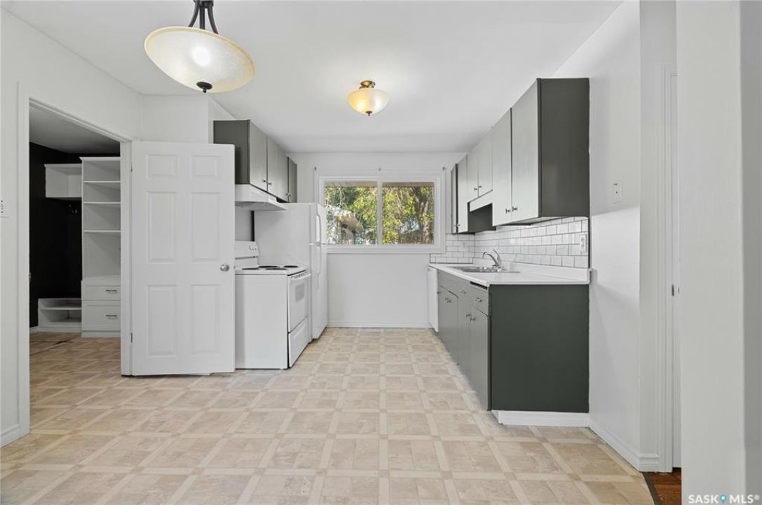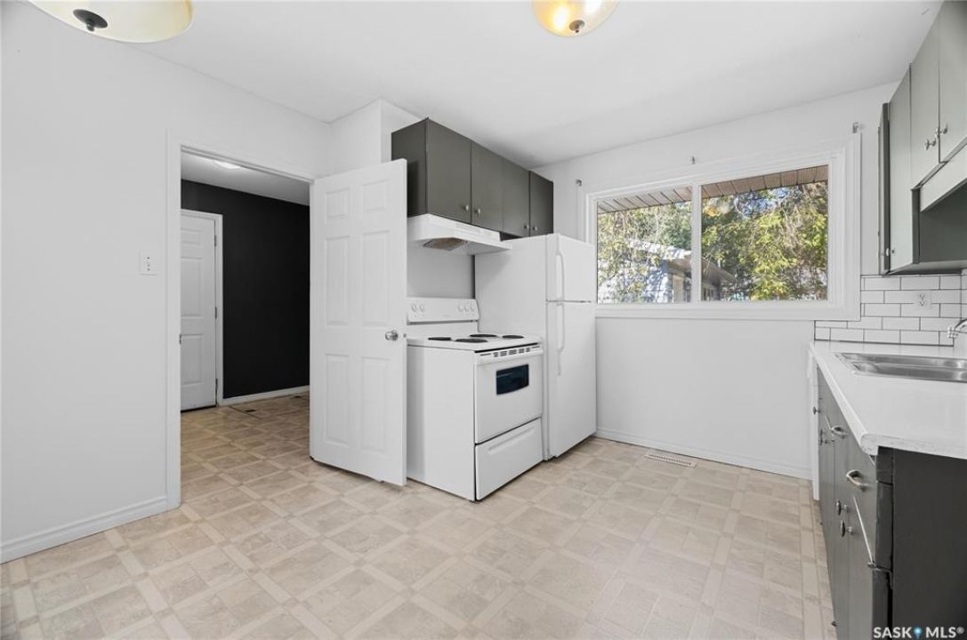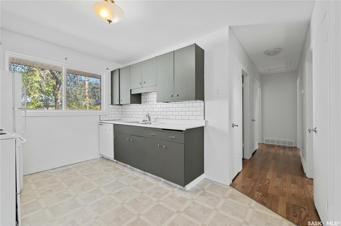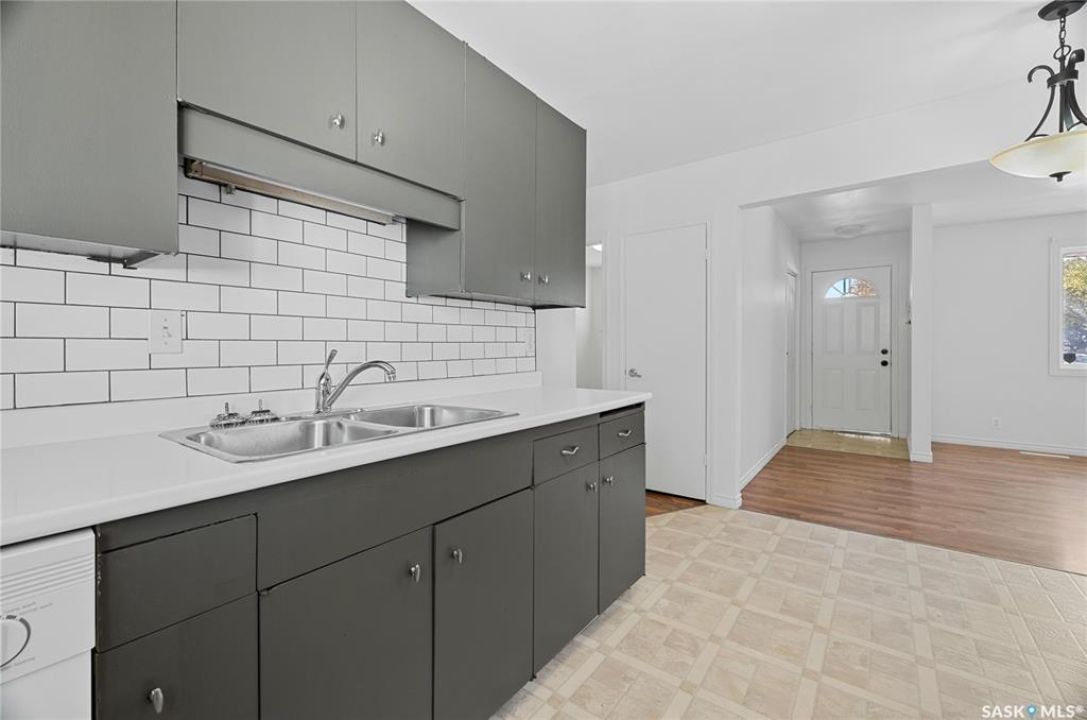 Perfectly positioned between north-end convenience and east-end energy (just a 10-minute drive!), this charming and affordable bungalow offers the best of both worlds. Built in 1962, this recently updated 3-bedroom, 1-bathroom home features just under 1,000 sq. ft. of comfortable living space. Ideal for first-time home buyers, investors, or empty nesters looking to downsize. Inside, you'll find a thoughtfully designed layout with everything you need on one level. The modern, yet traditional galley kitchen features rich but muted dark olive cabinetry, crisp white subway tile, and a classic palette of soft grey walls that continues throughout the home. Neutral laminate and linoleum flooring provide a timeless home - the perfect canvas to make this space your own. The open-concept living room, dining nook, and kitchen flow seamlessly together, creating a sense of connection while still offering distinct, functional spaces. Down the hall, three well-sized bedrooms each include custom closet systems, and a beautifully updated four-piece bathroom catches your eye with its colour drenched dark olive walls. Adjacent to the kitchen, a moody dark-gray mudroom adds character and convenience, complete with main floor laundry, ample storage, and a side door providing quick access to the backyard. Outside, enjoy a fenced, xeriscaped yard designed for low maintenance, with an exposed aggregate patio and mature trees providing natural shade and privacy. A rolling gate leads to the oversized 16' x 24' detached garage - insulated, heated, and equipped with two 220V outlets - perfect for hobbies, storage, or winter parking. Additional updates include PVC windows and new shingles on the house (August 2022). This move-in-ready home combines comfort, function, and style in one affordable package. Contact your agent today for more information or to book your private showing!