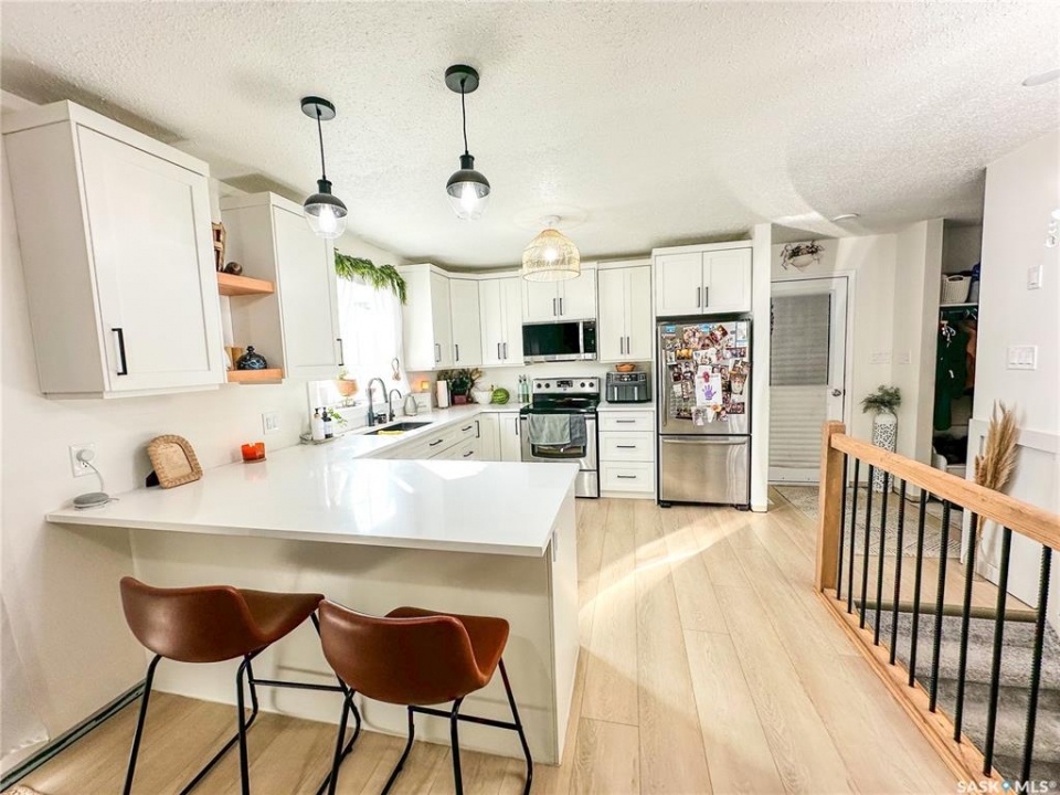 Start the car!! Here is a rare opportunity to own a fantastic 20.03 acre generational property within minutes of K1 mine just off Highway 80 pavement! When you pull up to this beautifully treed, private yard, you will notice a modern 1980 built stuttco and brick home with a double attached garage, nice fire pit area to the left and a beautifully landscaped yard to the right which is absolutely stunning in bloom! In 2024, this 3 bedroom, 2 bath home with over 1400 square ft per level was completely renovated on the main floor with gorgeous flooring throughout, custom white cabinetry with quartz countertops, new lights, hardware and more. Main floor laundry makes laundry a breeze! The open floor plan from the kitchen all the way to the beautiful stone wood fireplace makes hosting friends and family with plenty of space. Added to the dining area is a nice coffee bar or beverage area which happens to be right next to the very large family room. 2 bedrooms and one bathroom which has in floor heat make it complete. The basement underwent some updates as well with beautiful flooring thru out in 2025! The bedroom in the basement also has ensuite access to the 3 piece bathroom that also has in floor heating. There is plenty of storage space and plenty of room for your family to enjoy! Notable other updates include shingles (2019), new furnace & AC (2018 or 19), dishwasher & microwave hood fan (2024), New washer (Sept 2025) and more. Take a stroll outside and you will be amazed at all the landscaping, the privacy and the enjoyment you are your family can have; your very large producing garden set up to grow your own food, a large 30x60 hip barn with corrals and watering bowl, a single detached garage and last but not least is a great sized pole shed 40x60 ft for all your needs. If you have been looking for a beautiful modern home within minutes from the mine and only 10 minutes from town, here it is! Move right in! The hard work has been done!
