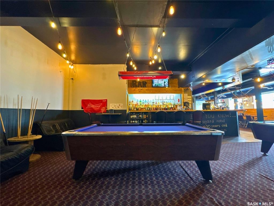 Excellent opportunity to own a landmark business and building in the thriving community of Wynyard, Saskatchewan - a full-service town with a high school, regional college, golf course, rink, hospital, banks, and automotive services. The property offers 11,252 sq.ft. of space on a concrete foundation with a durable brick exterior. The main floor features a fully licensed restaurant and bar, an ice cream/slush area (not in full operation, providing great potential for an additional revenue stream), 10 VLTs offering steady, low-maintenance income, ATM, and permits for restaurant liquor and tobacco sales. A smart home system controls security, lighting, heating, and cooling. The second floor includes a long-term tenant in a 2-bedroom suite with kitchen and 4-piece bath, while the remaining area could be developed into up to 12 guest rooms, 4 bathrooms, and 1 laundry room. The third floor offers an owner's suite with living, kitchen, dining, one bedroom, and 4-piece bath, plus a move-in-ready manager's bachelor suite with kitchen and 3-piece bath; seven additional rooms provide renovation potential. The main floor is heated with a floor unit and A/C, and the upper floors with hot-water heating. Upgrades completed around 2016 include washroom and kitchen renovations, walk-in cooler, reverse osmosis system, modern lighting, décor updates, and fresh finishes throughout. A rare chance to own a versatile, income-producing property with room to grow in the heart of Wynyard.